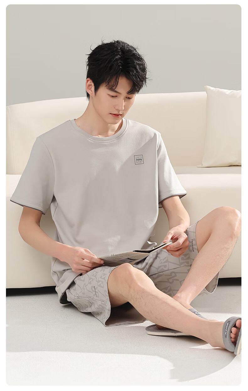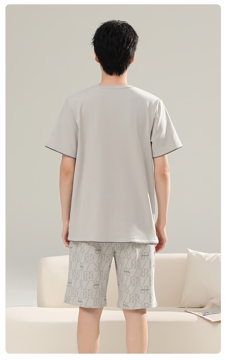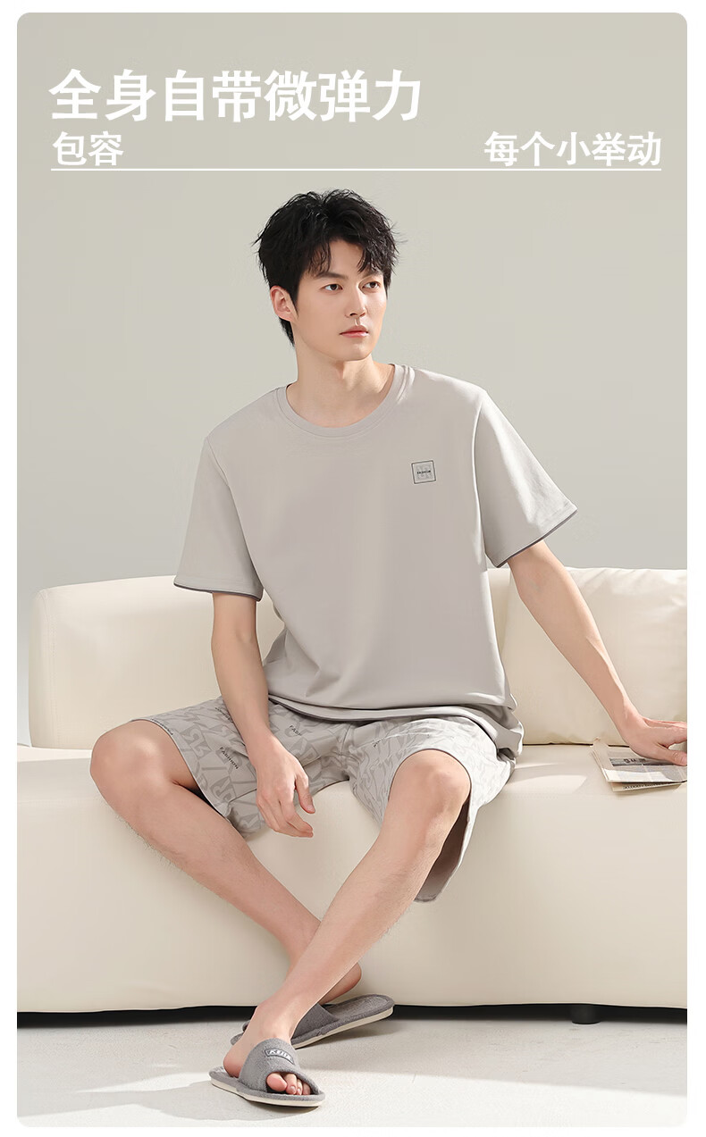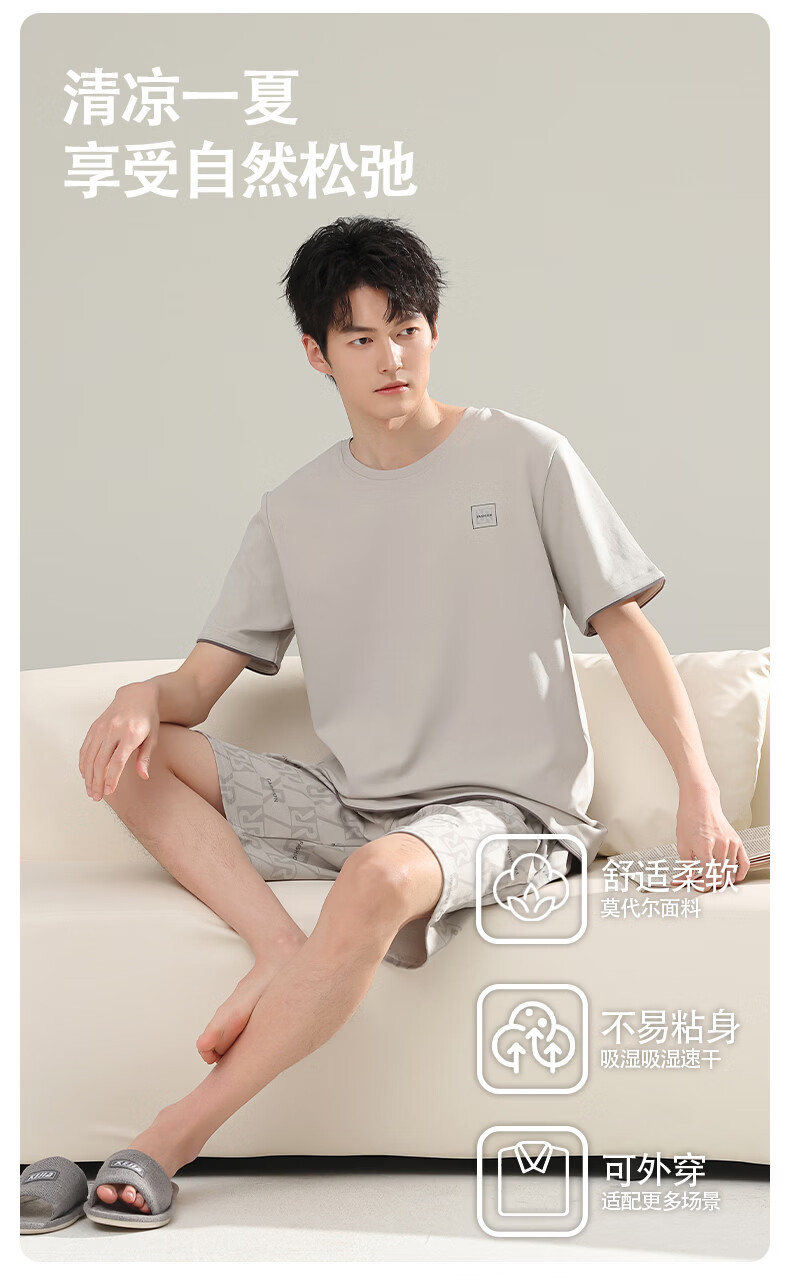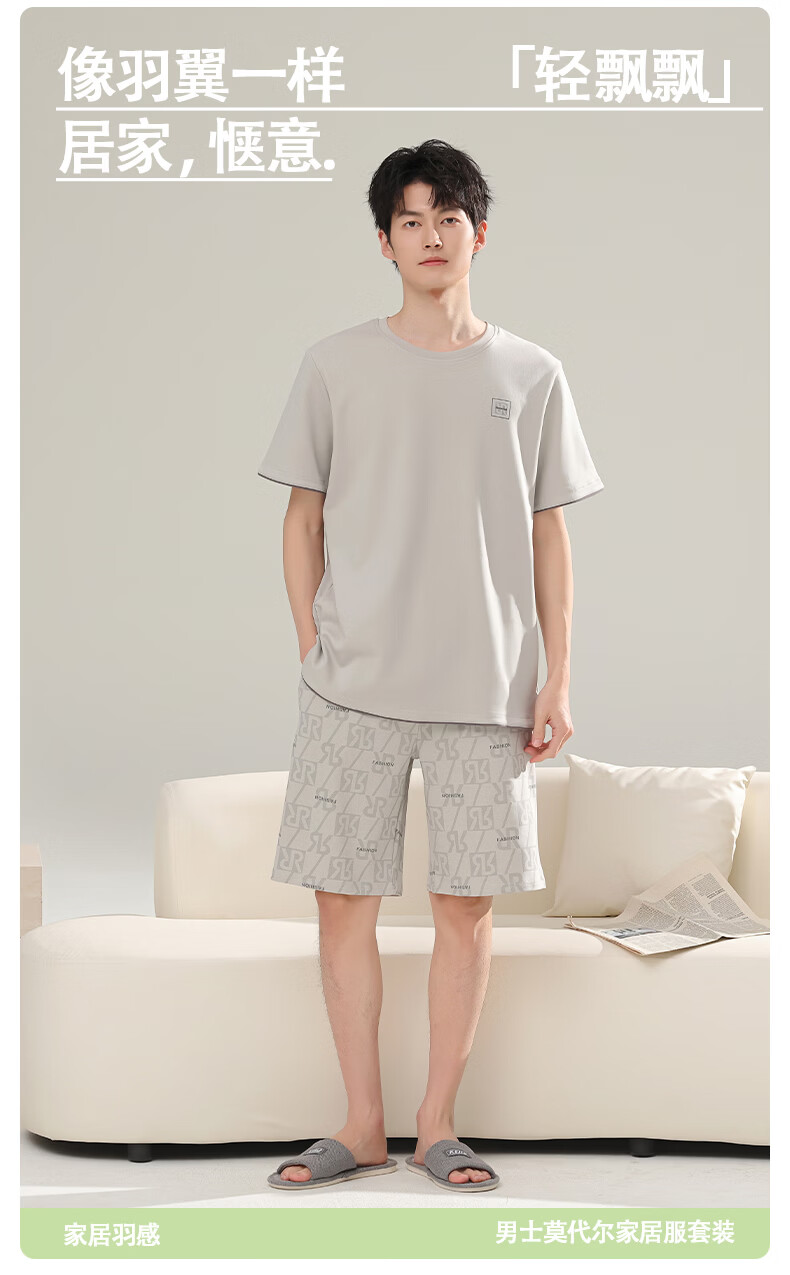 芬腾可安(FENTENGCARE)【L】2026新款夏季莫代尔男士睡衣薄款套头短袖短裤宽松家居服 57122 L