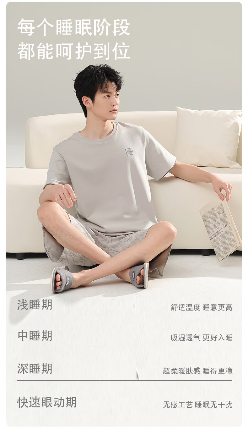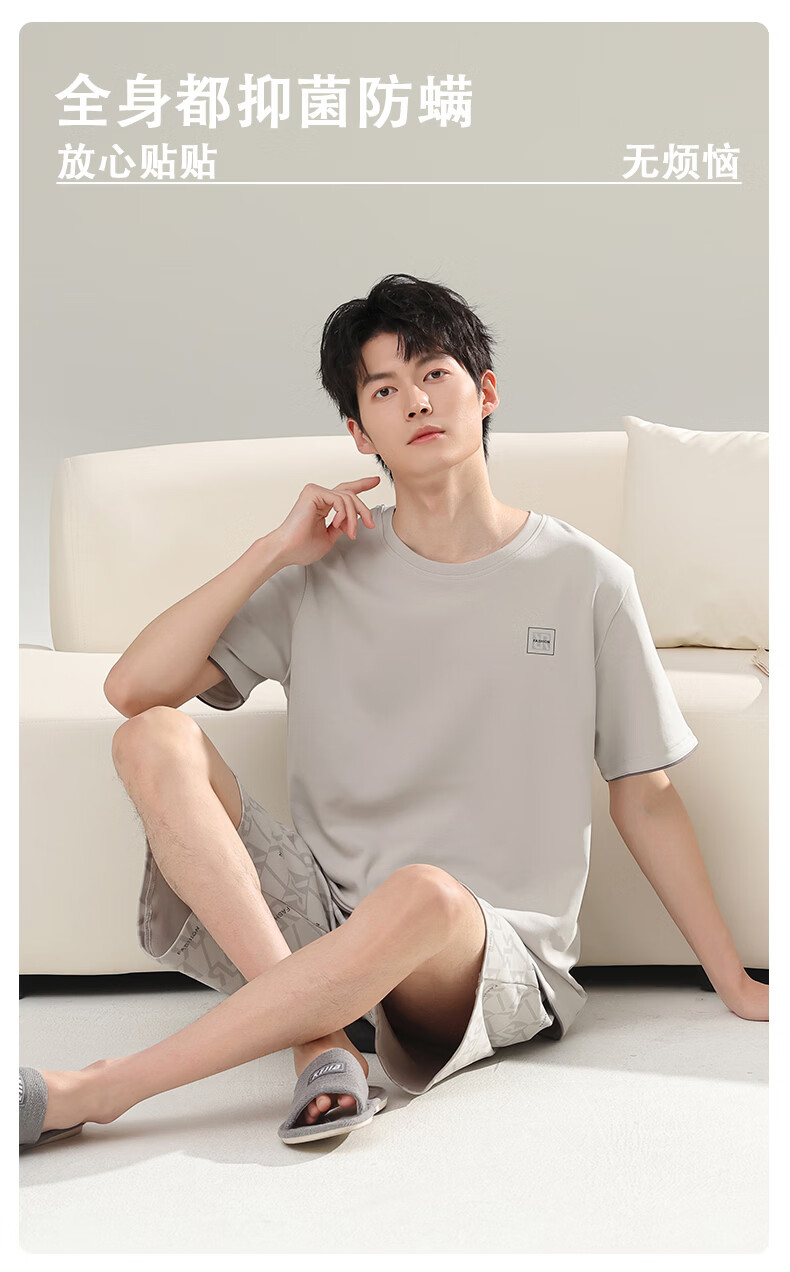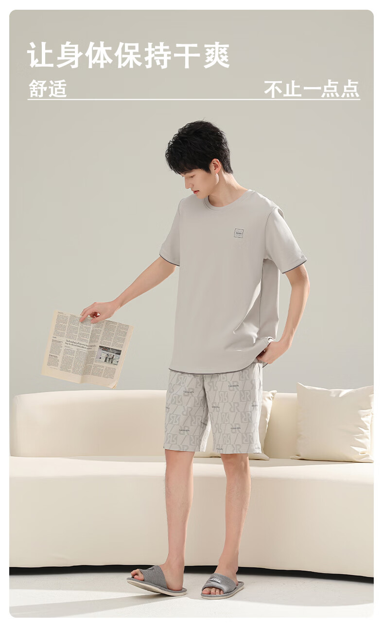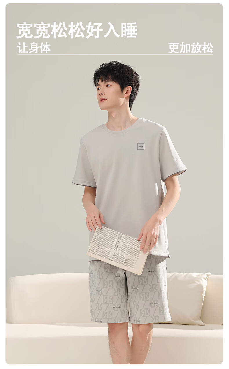 芬腾可安(FENTENGCARE)【L】2026新款夏季莫代尔男士睡衣薄款套头短袖短裤宽松家居服 57122 L