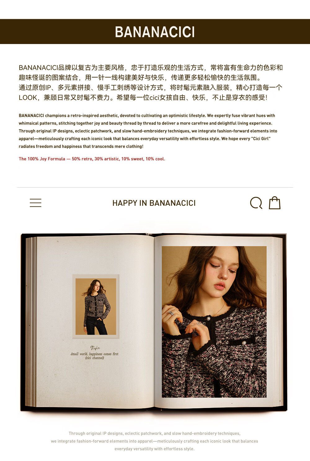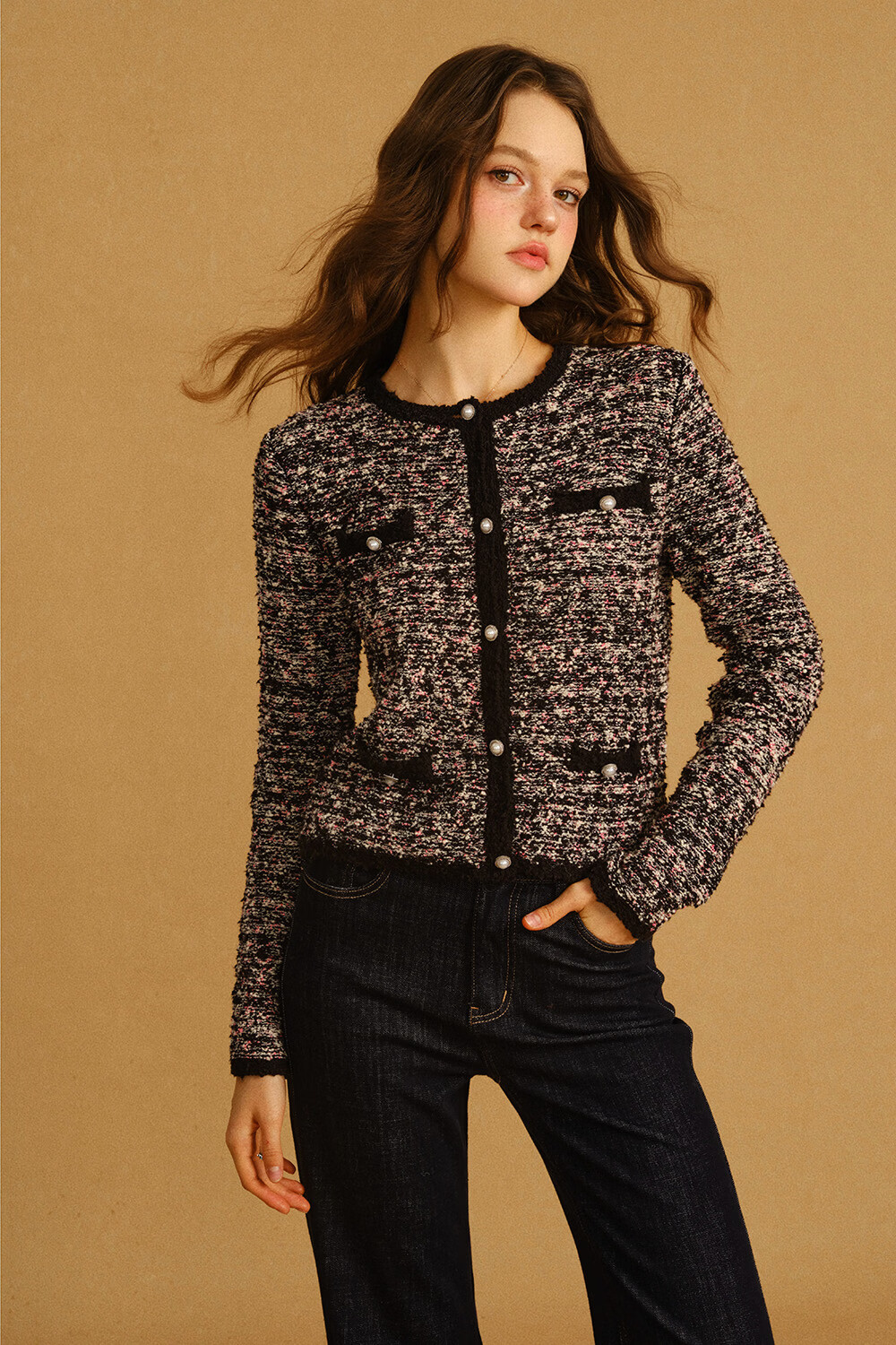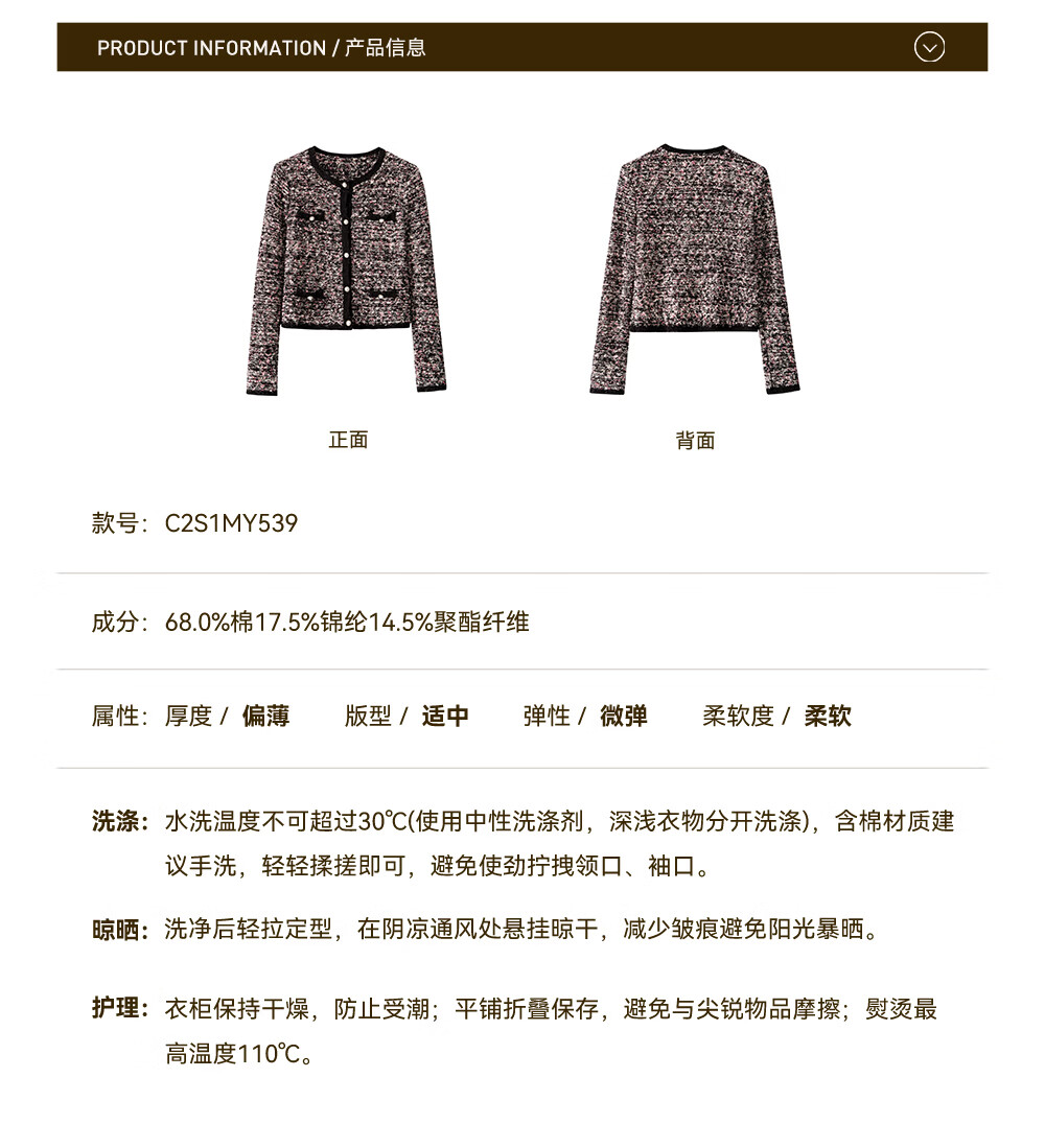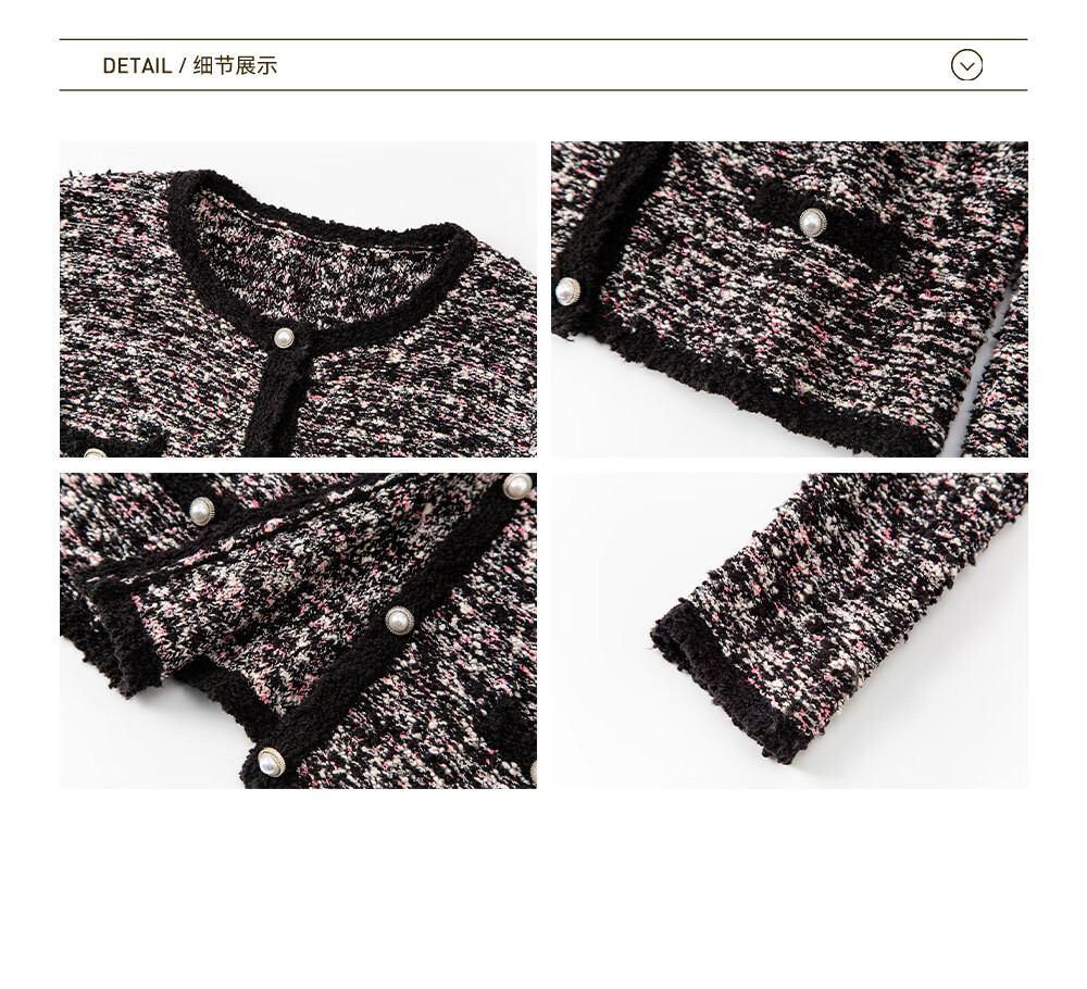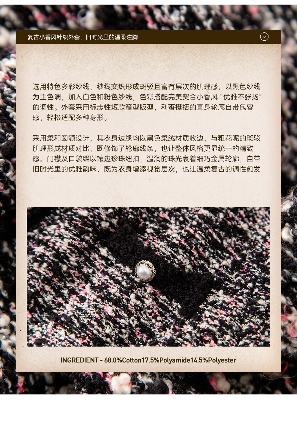 banana cici2026年春季新款小香风短款粗花呢圆领针织开衫外套C2S1MY539 黑色 L