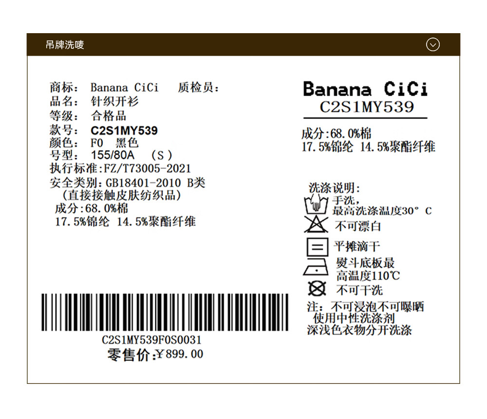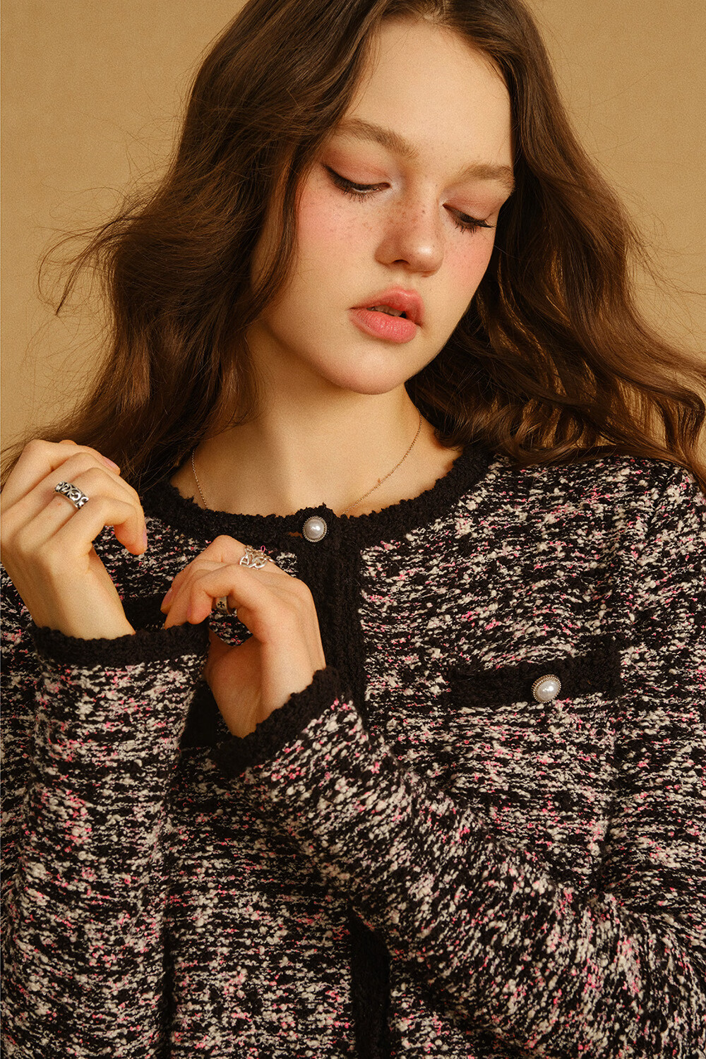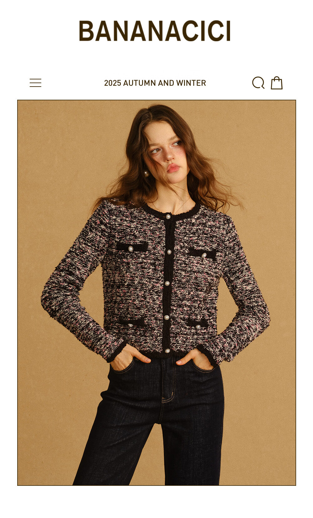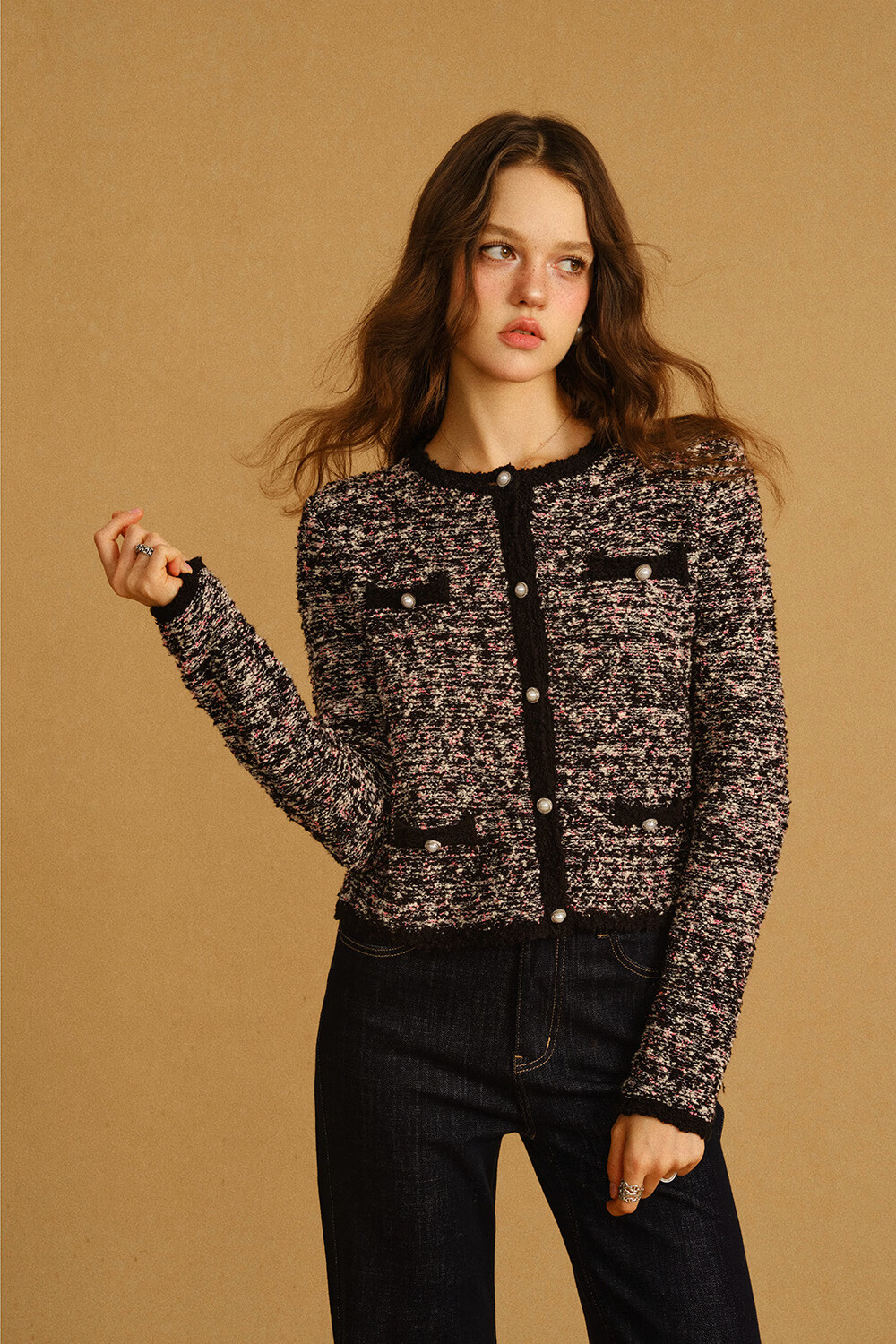 banana cici2026年春季新款小香风短款粗花呢圆领针织开衫外套C2S1MY539 黑色 L