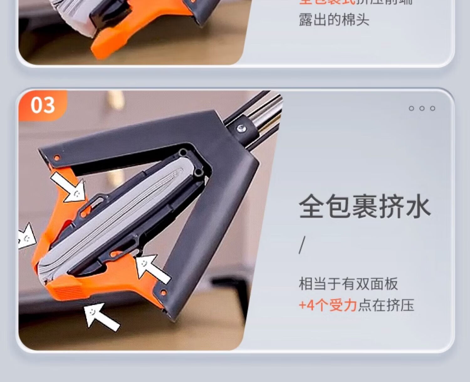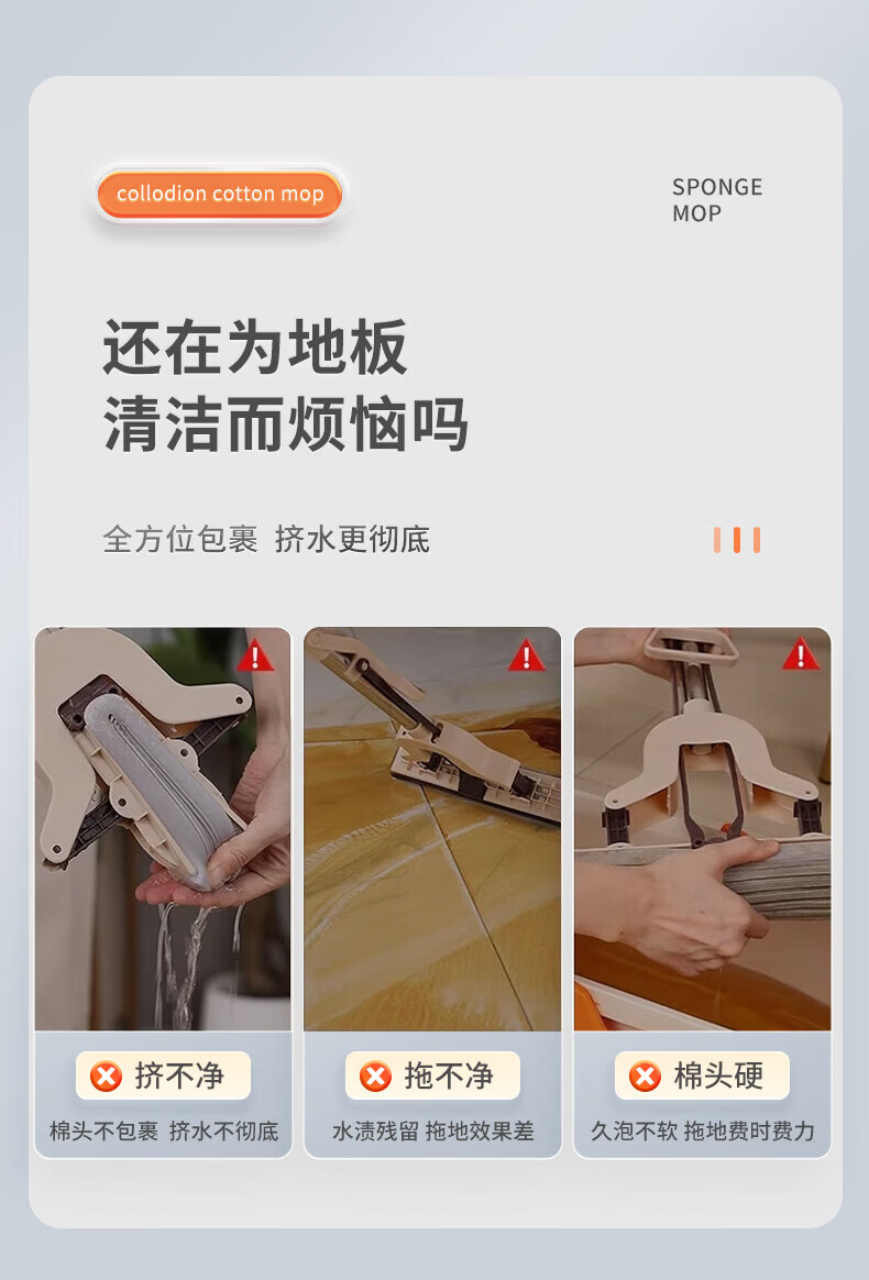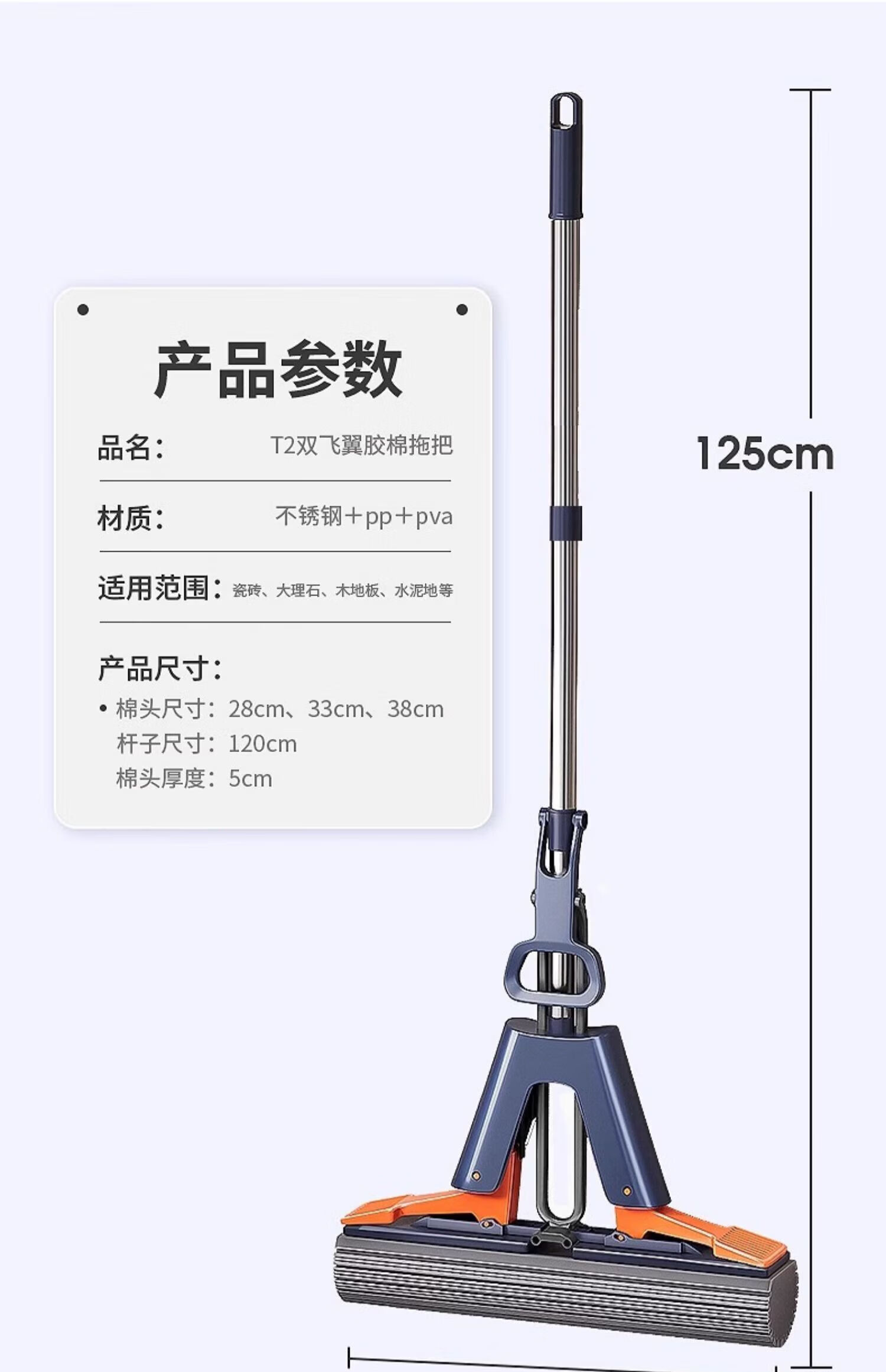 佳帮手海绵拖把2026新款双飞翼家用一拖净干湿两用吸水免手洗胶棉头拖布 38cm拖把+2块棉头+不锈钢加强杆