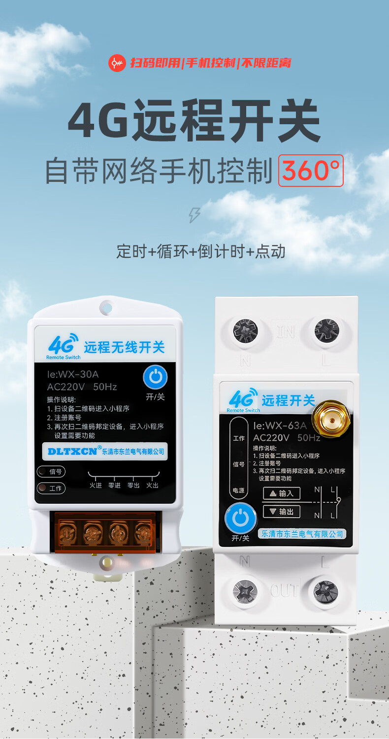 DLTXCN智能4G手机远程控制开关 手机无线遥控水泵 时控定时控制器 220V KG318T 30A继电器 普通时控开关