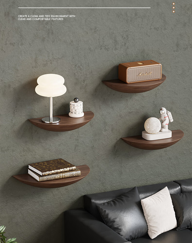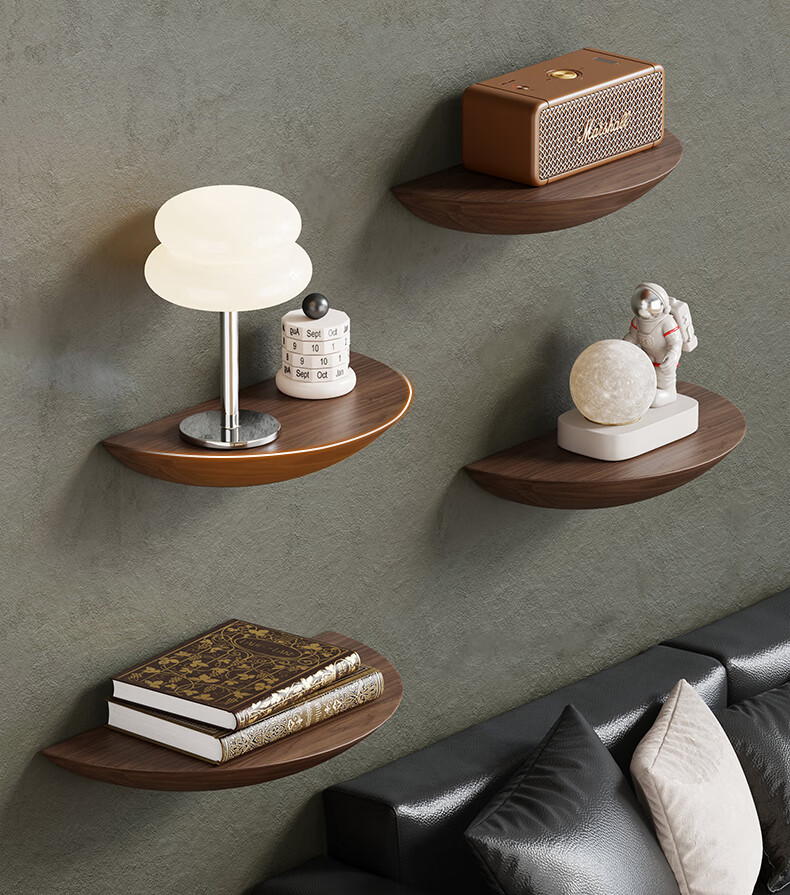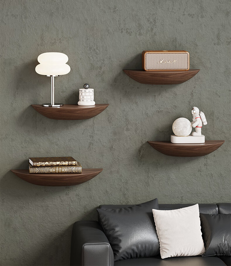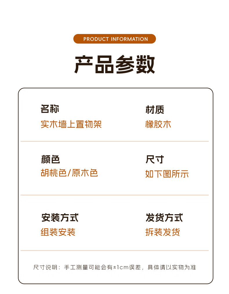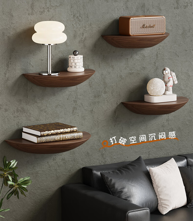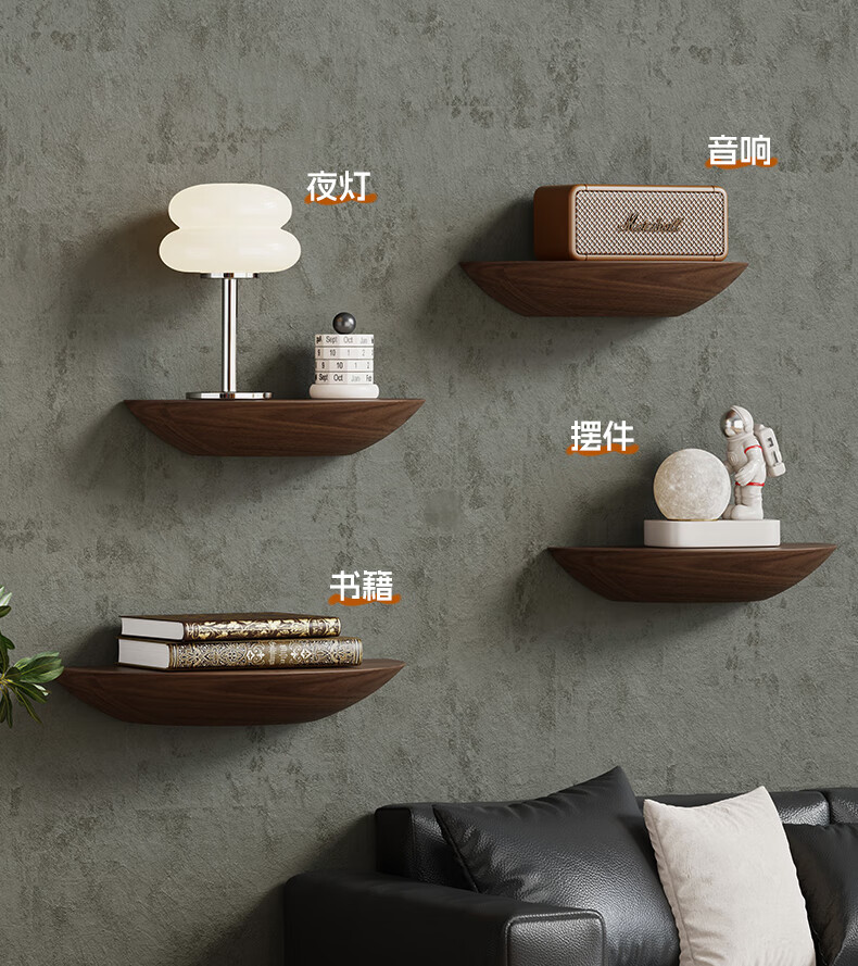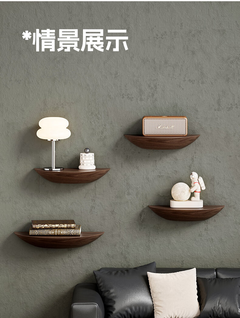尔思家墙上置物架客厅轻奢展示架免打孔一字隔板实木壁挂路由器放置架 胡桃色小号【进口实木】