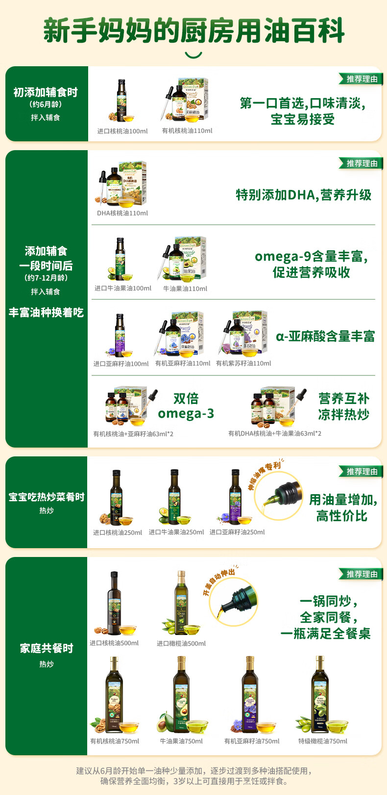 爷爷的农场有机核桃油110ml 凉拌热炒婴幼儿食用油 宝宝辅食油6个月以上