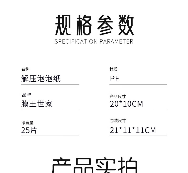 膜王世家解压气泡纸 泡泡纸 解压神器 挤捏泡泡减压神器无聊打发时间抗焦虑发泄打发时间玩具纸抽 20*10cm【一盒25抽】