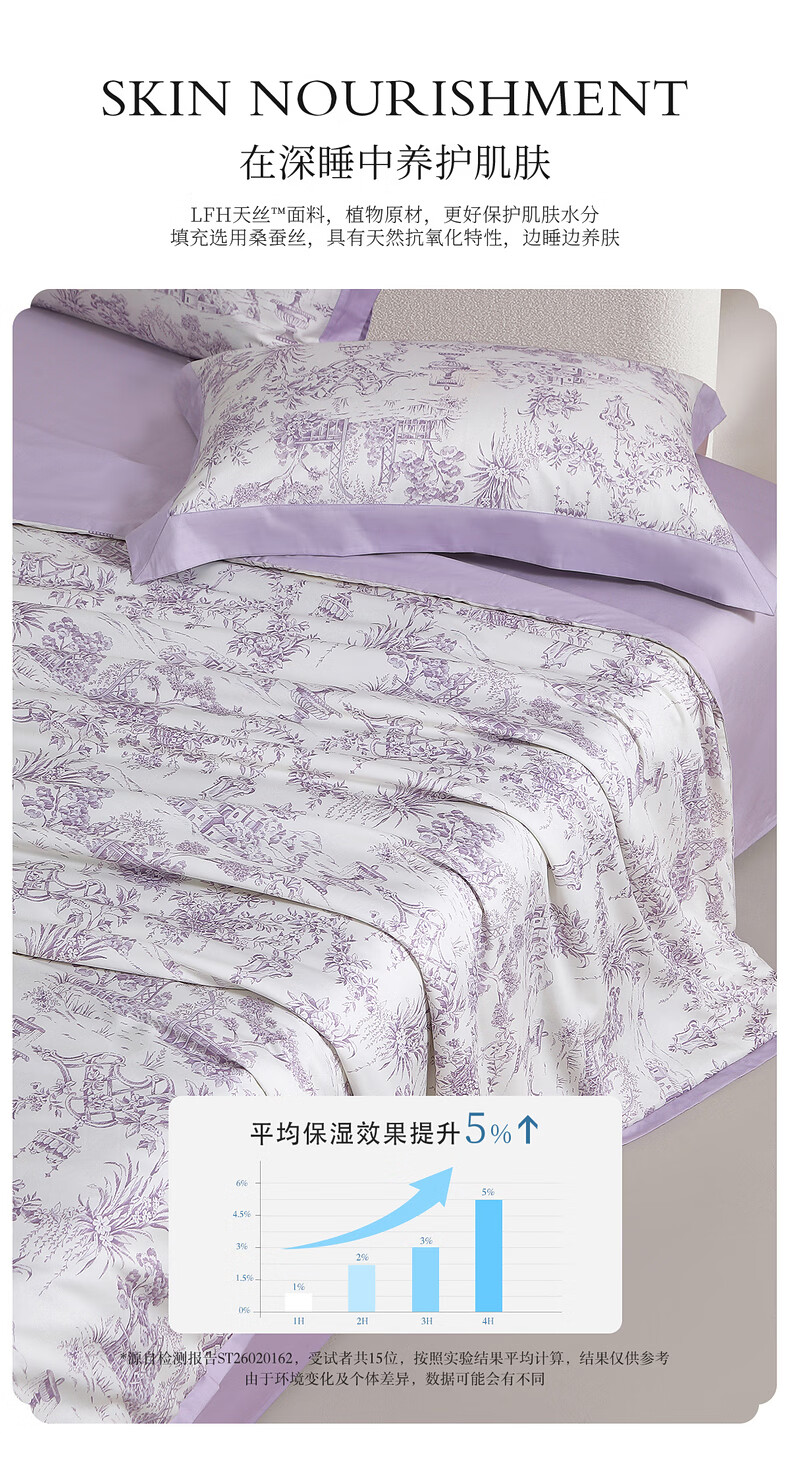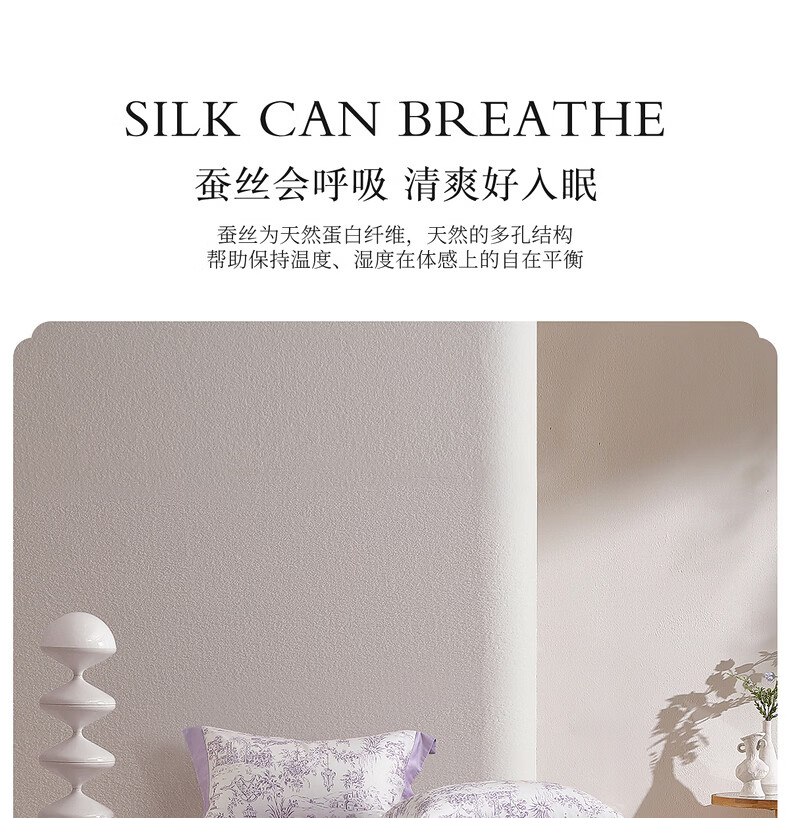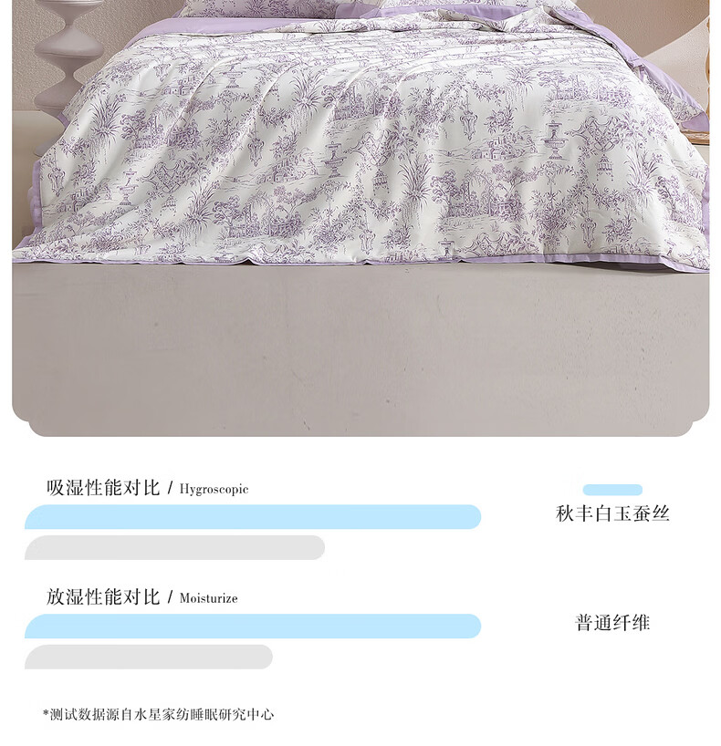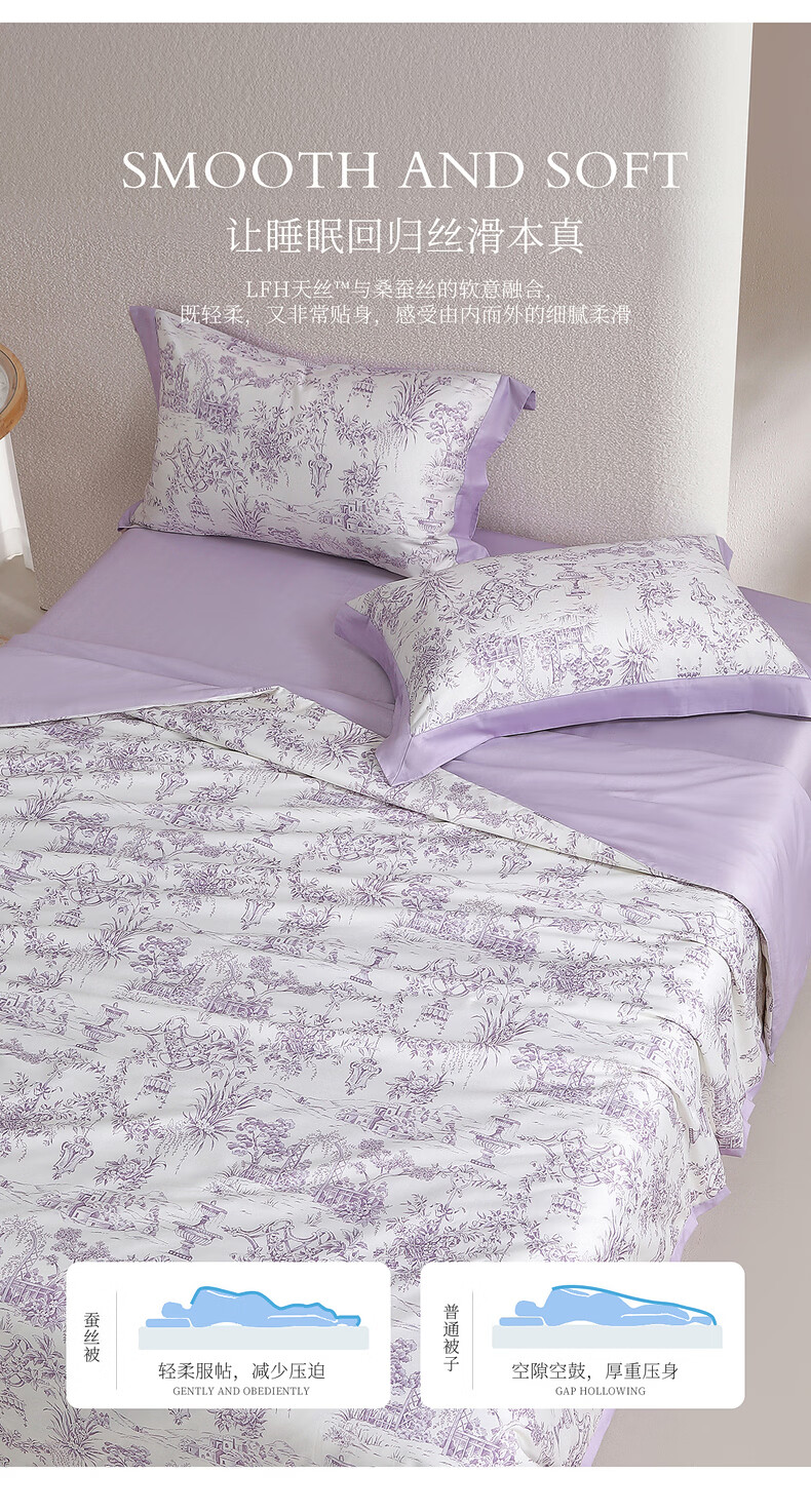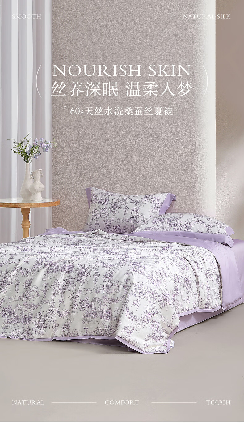 水星家纺100%桑蚕丝夏被空调被夏凉被子A类抑菌可机洗 南法·雾岸叙语水洗桑蚕丝夏被(浅紫色) 150cm*200cm