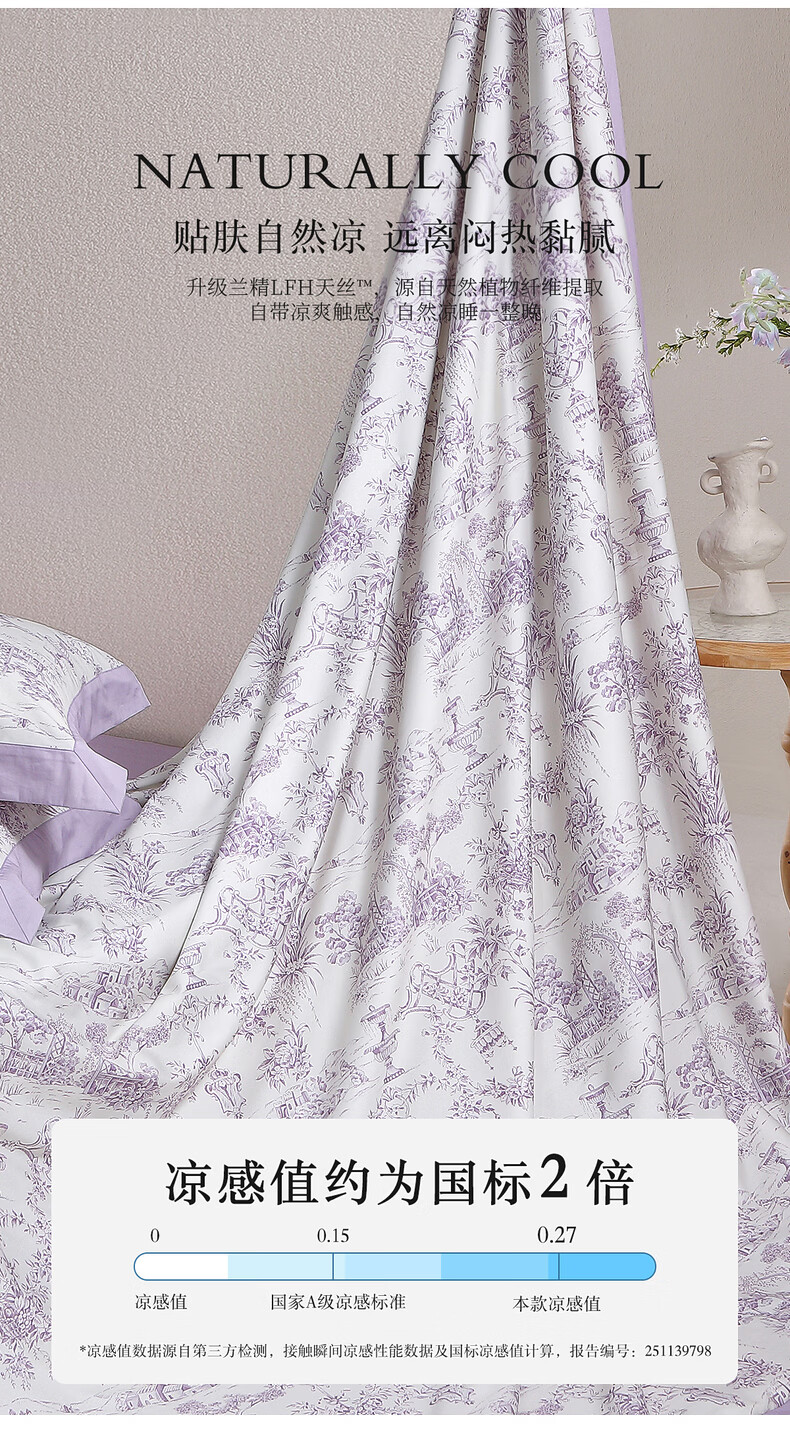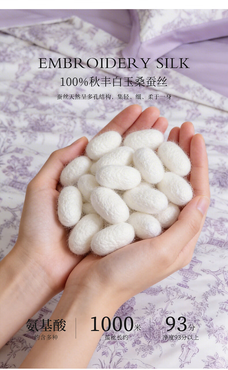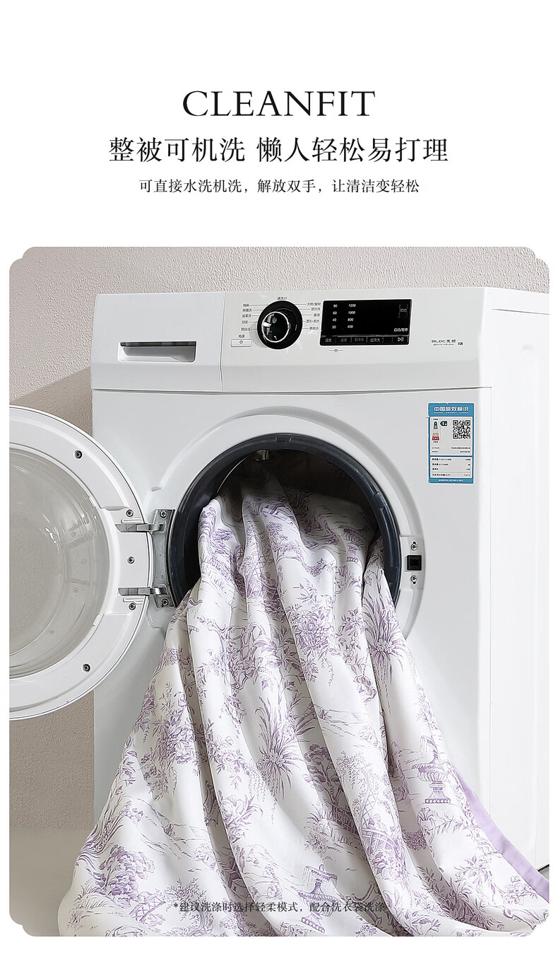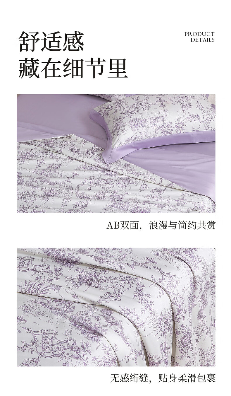 水星家纺100%桑蚕丝夏被空调被夏凉被子A类抑菌可机洗 南法·雾岸叙语水洗桑蚕丝夏被(浅紫色) 150cm*200cm