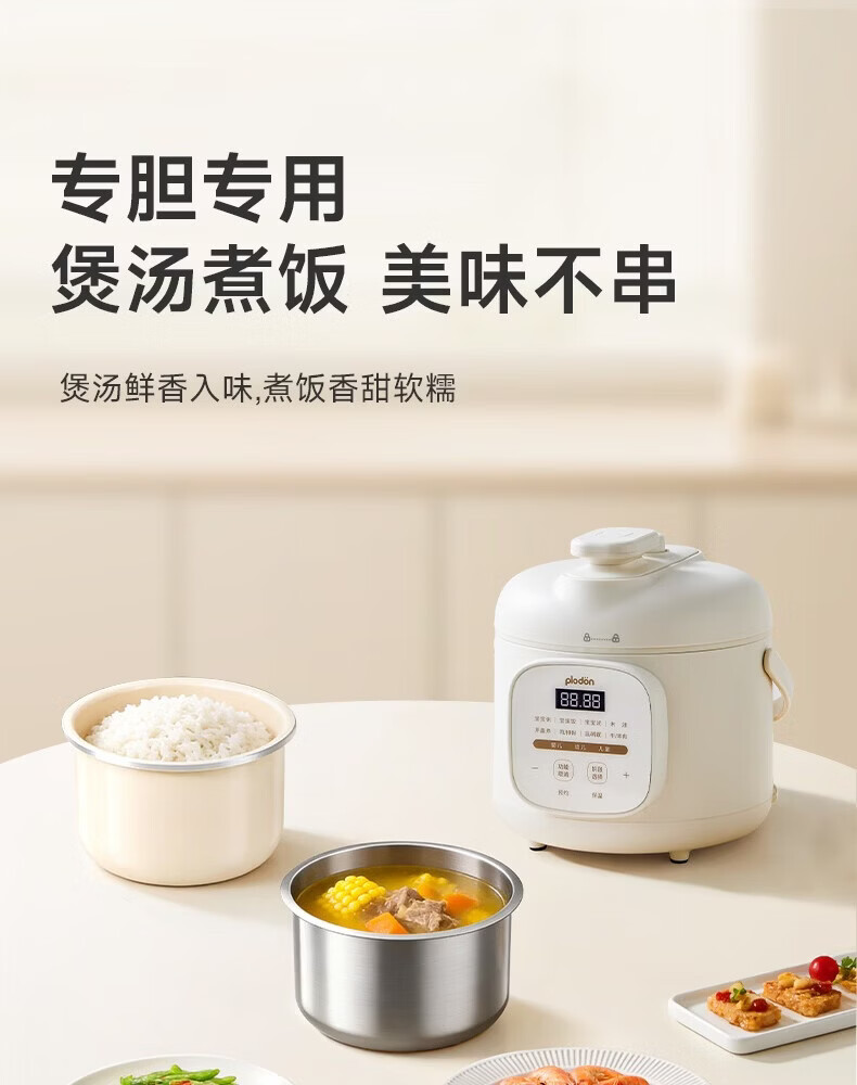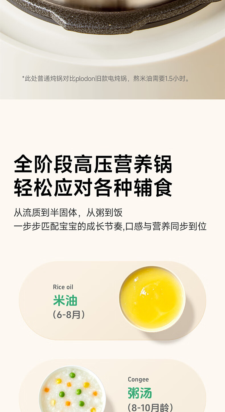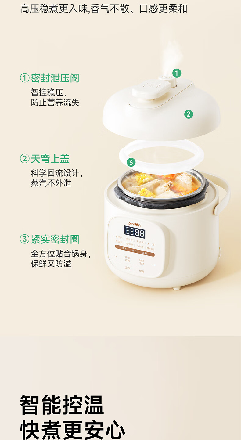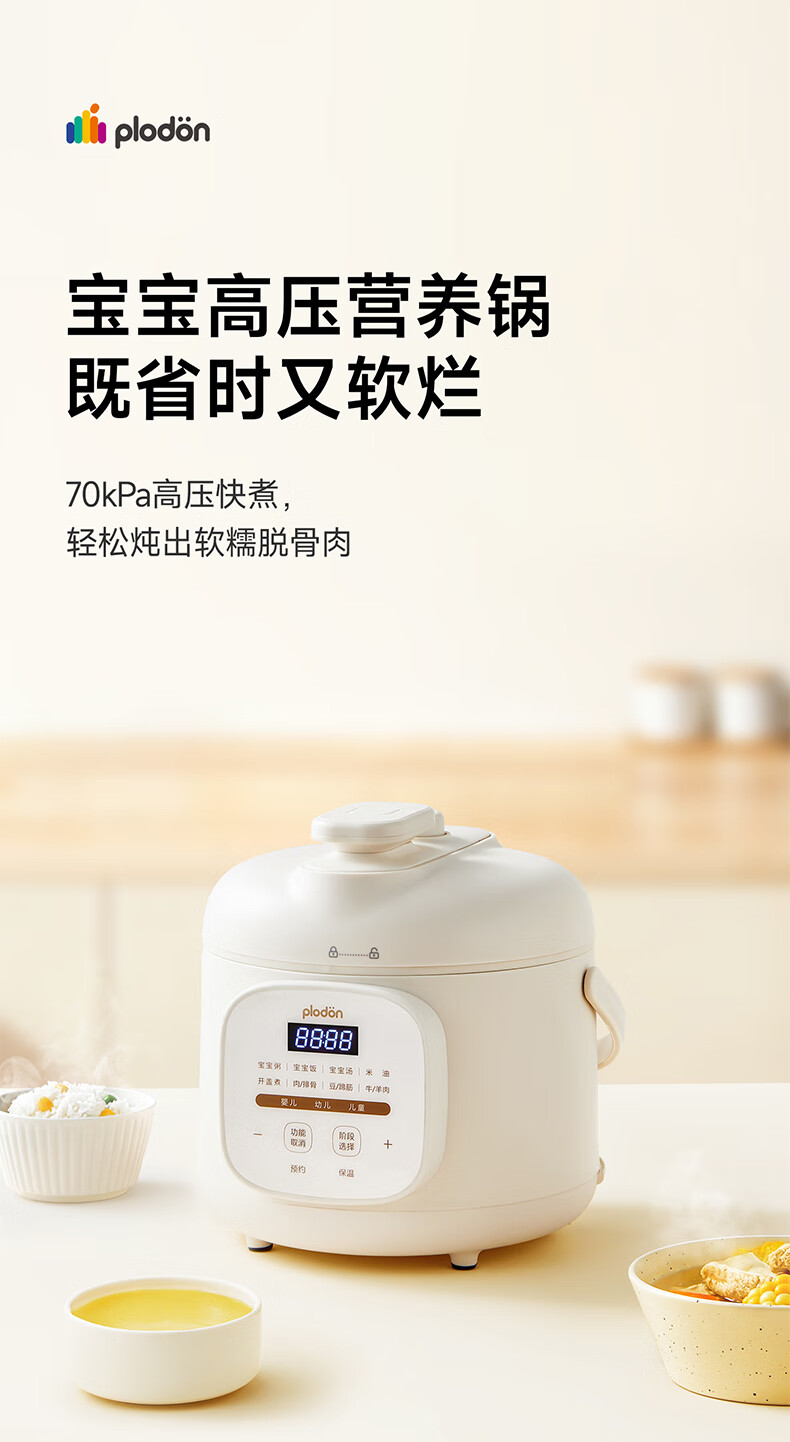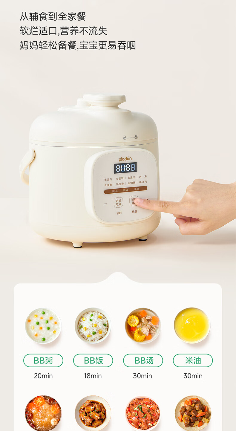 浦利顿(PLODON)升级高压炖煮辅食料理锅 分月龄BB煲粥饭宝宝双内胆压力辅食锅