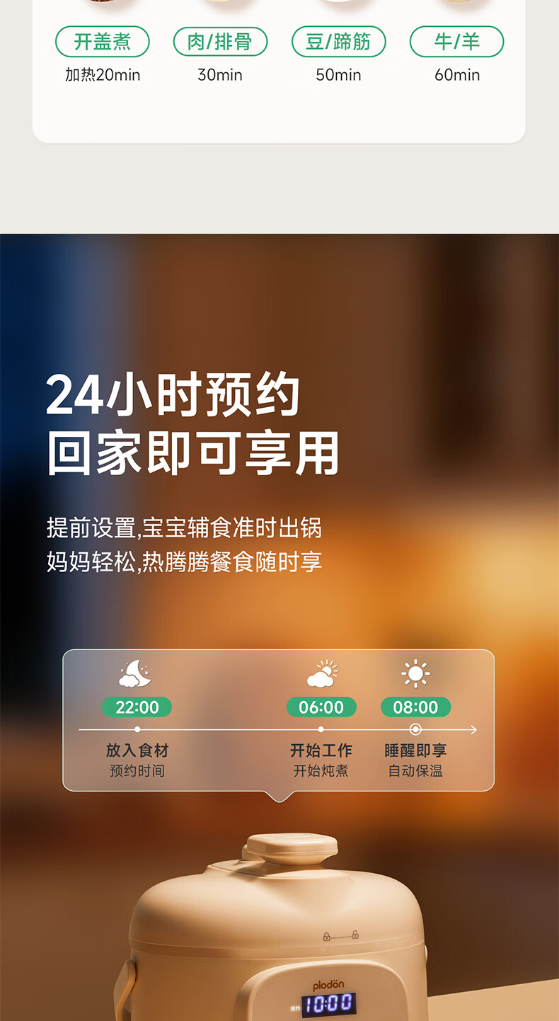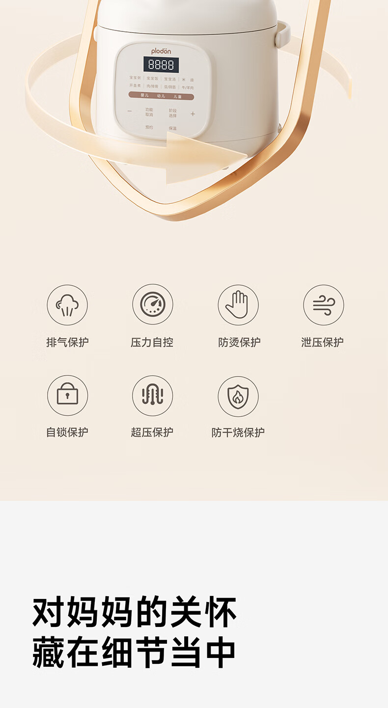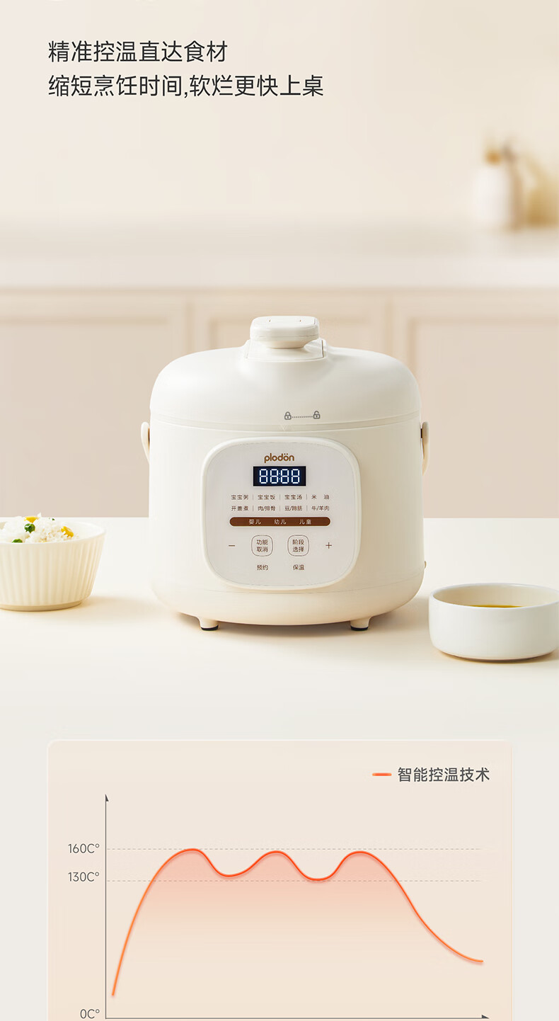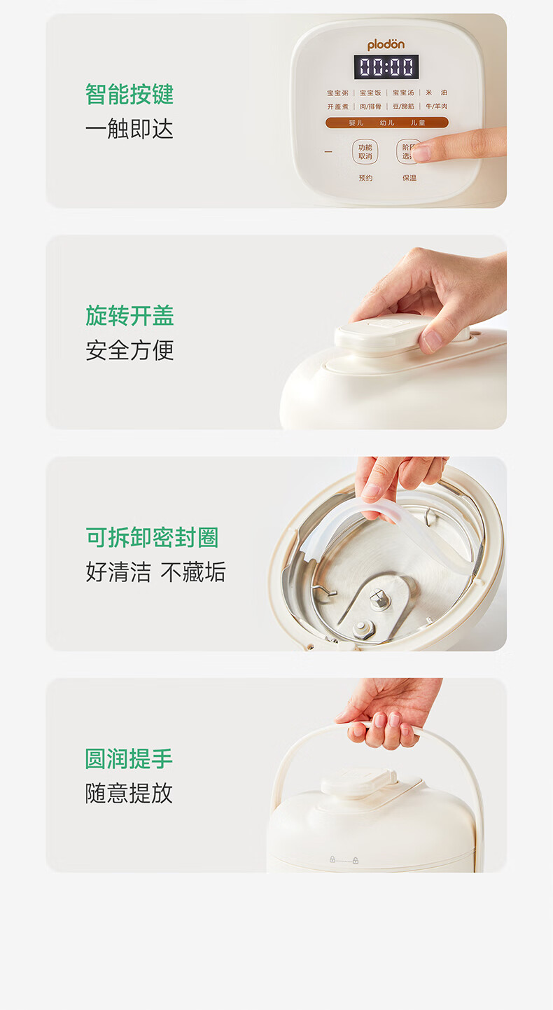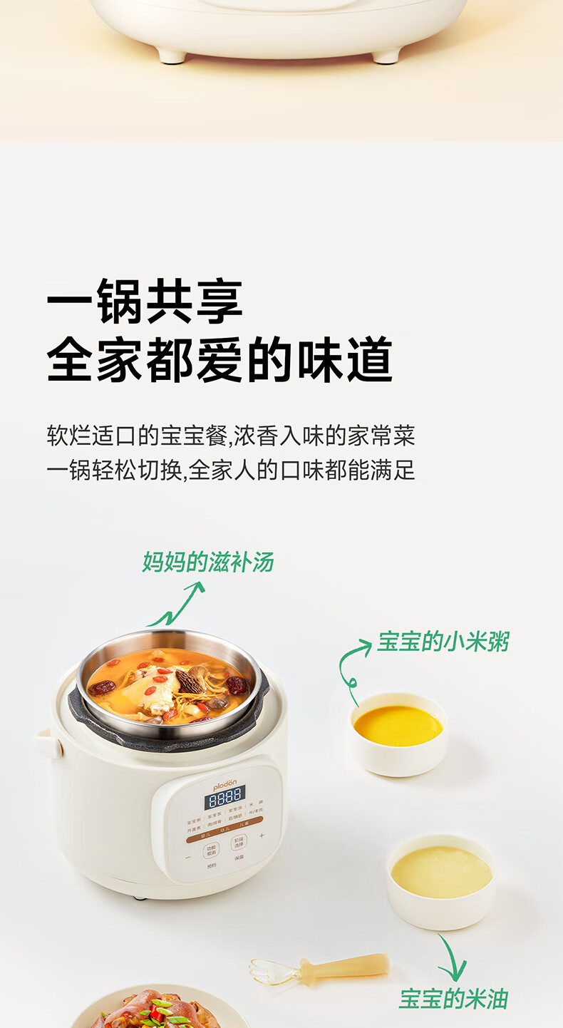 浦利顿(PLODON)升级高压炖煮辅食料理锅 分月龄BB煲粥饭宝宝双内胆压力辅食锅