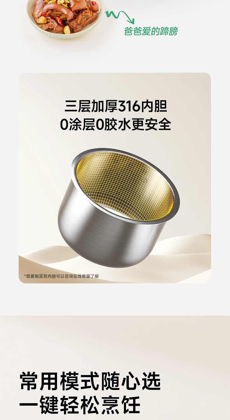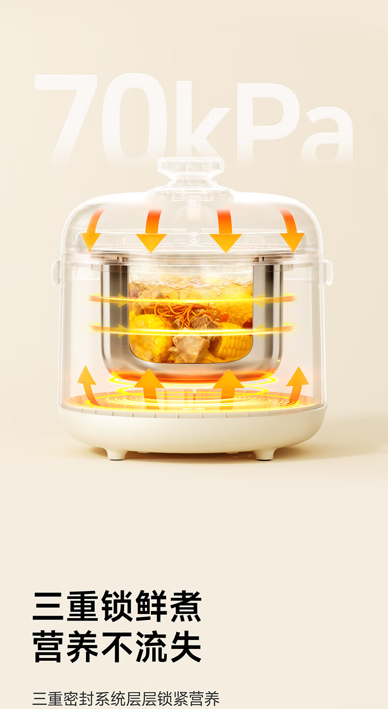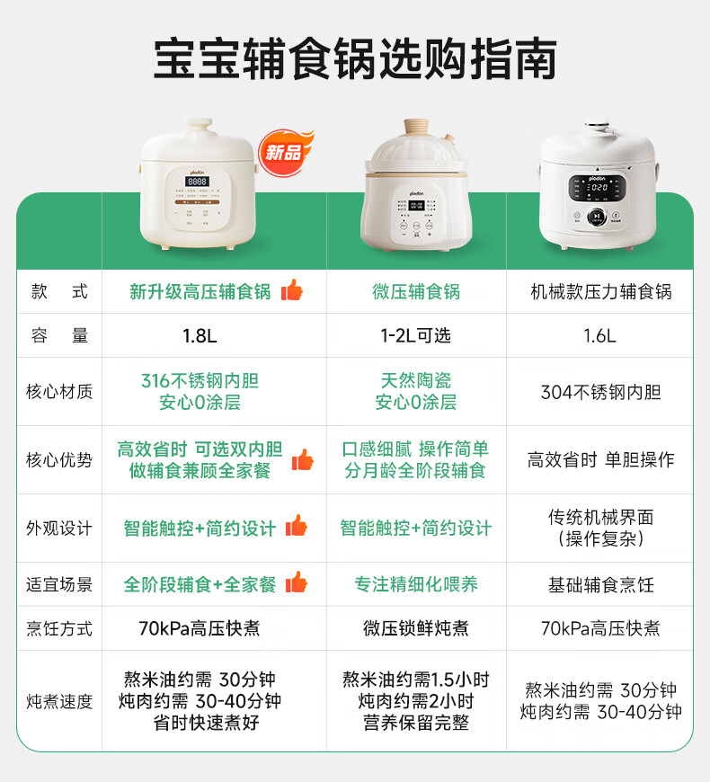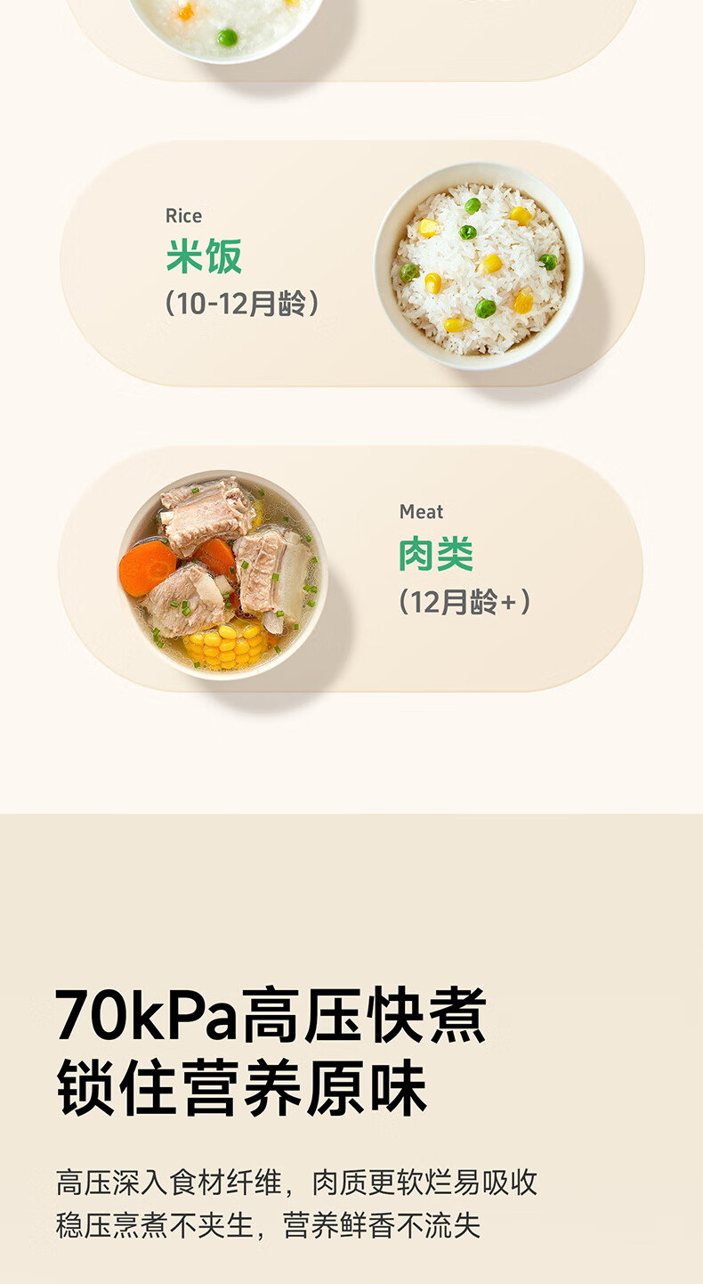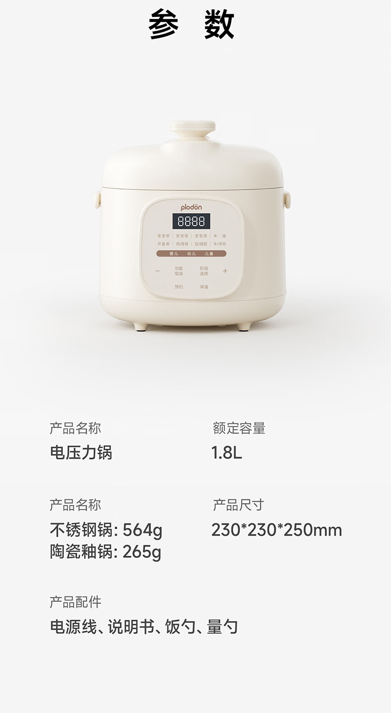 浦利顿(PLODON)升级高压炖煮辅食料理锅 分月龄BB煲粥饭宝宝双内胆压力辅食锅