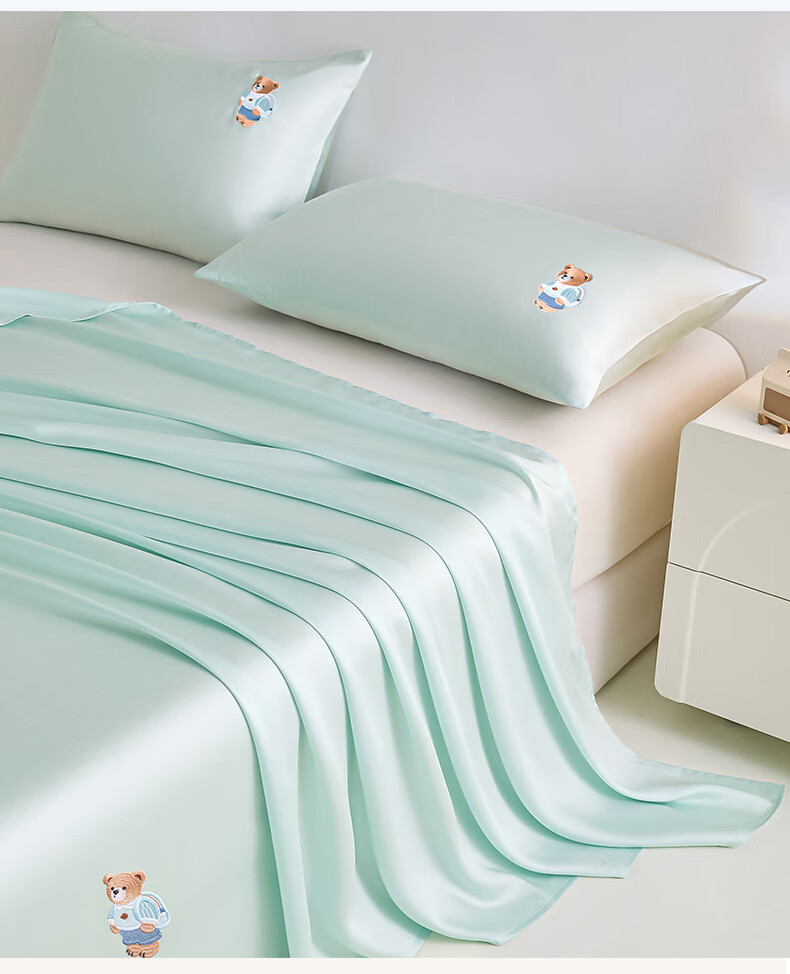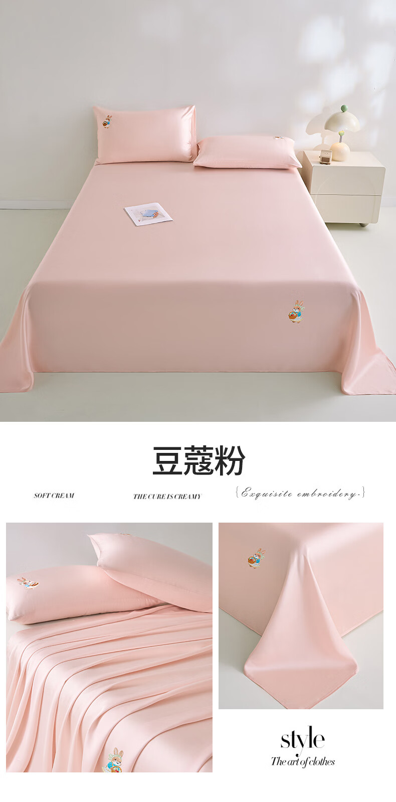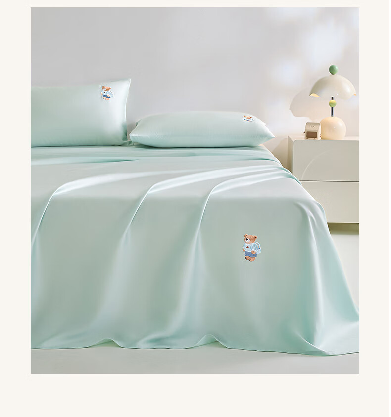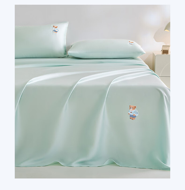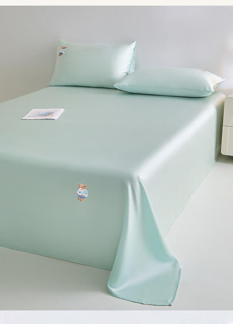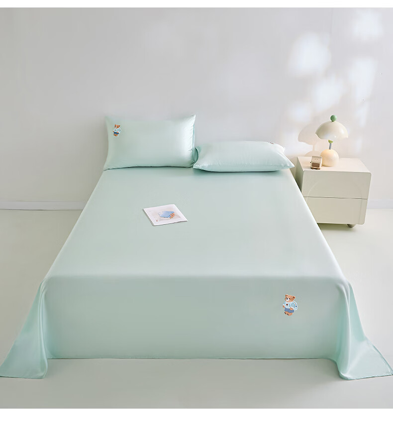 无印良品卡通刺绣天丝床单200x230cm亲肤裸睡双人家用宿舍三件套床上用品 豆蔻粉【吸湿透气 细腻丝滑】 160cm*230cm 单床单
