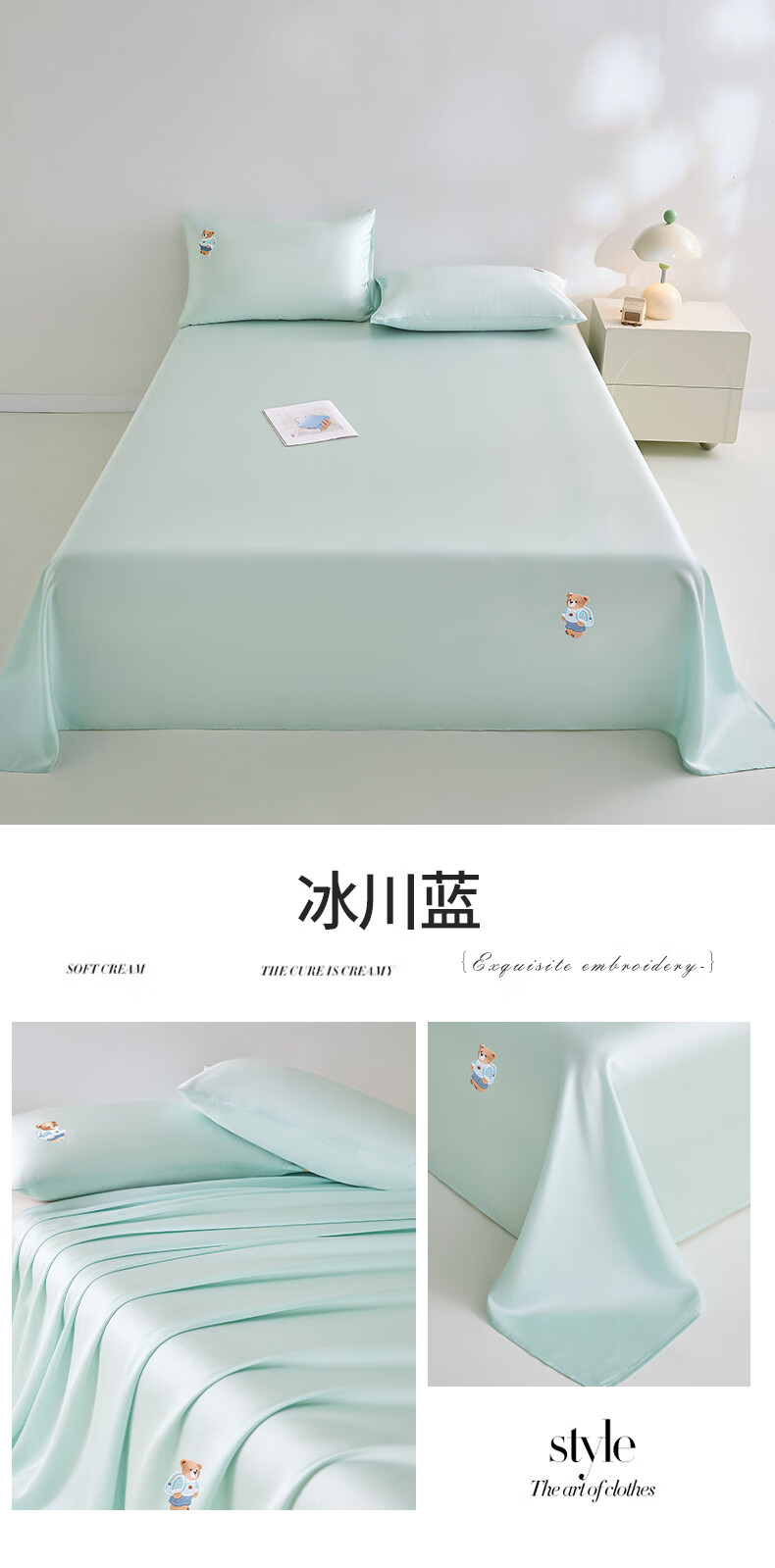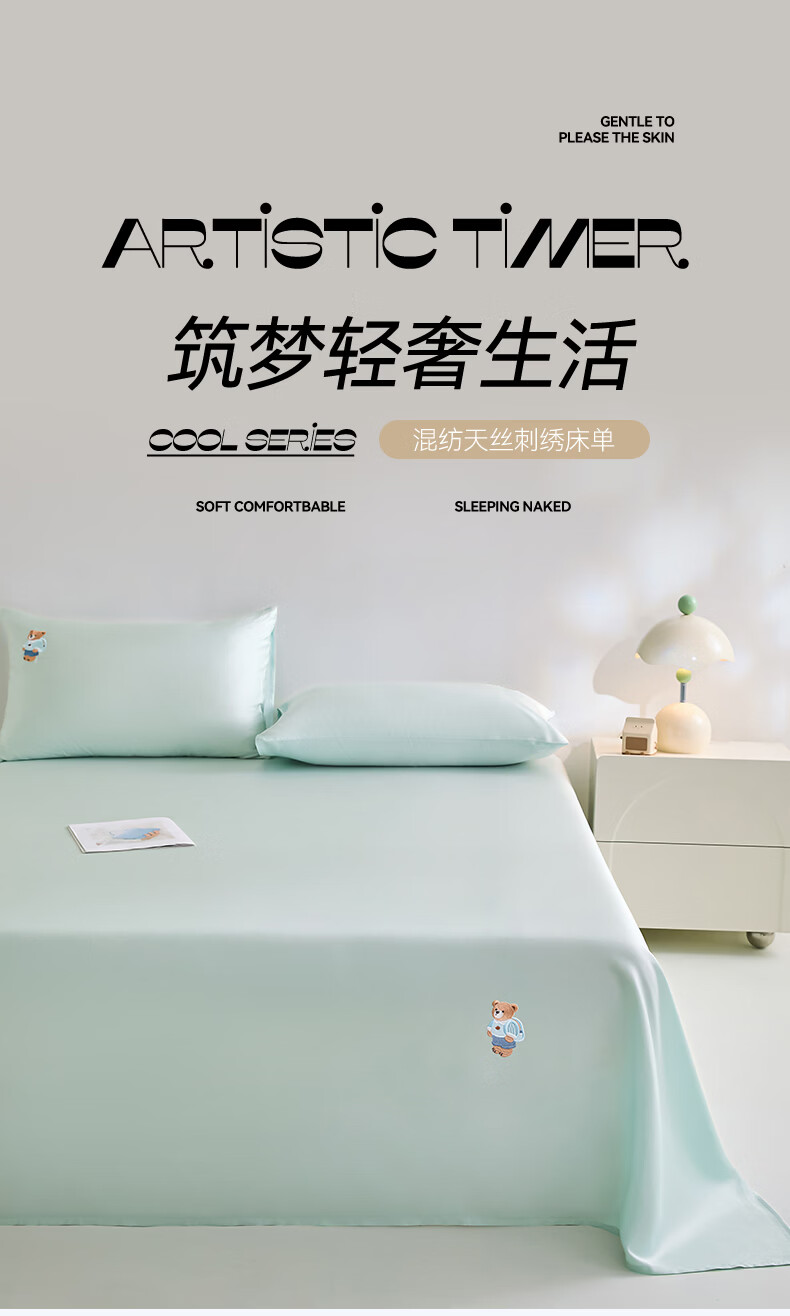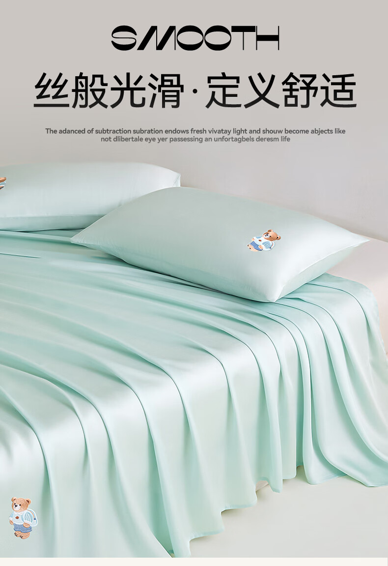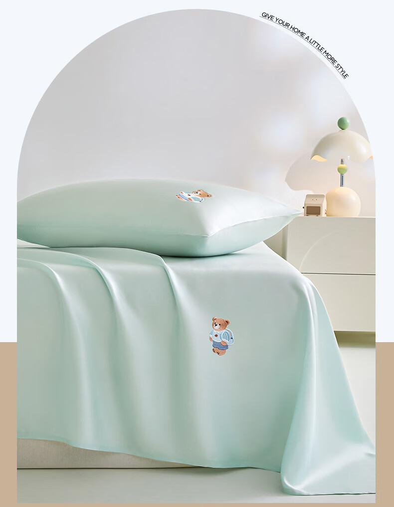 无印良品卡通刺绣天丝床单200x230cm亲肤裸睡双人家用宿舍三件套床上用品 豆蔻粉【吸湿透气 细腻丝滑】 160cm*230cm 单床单