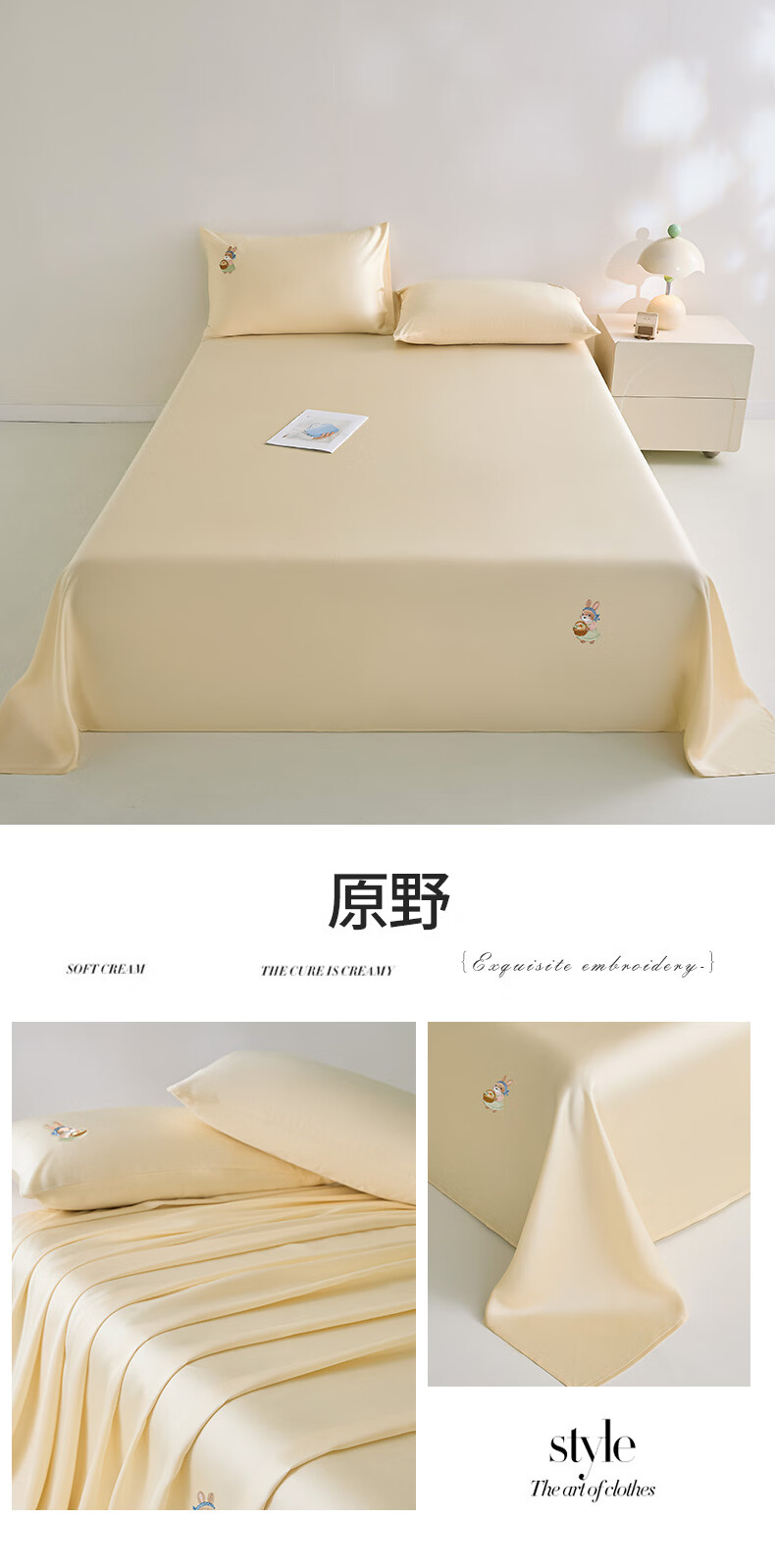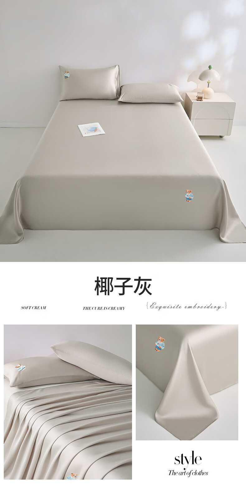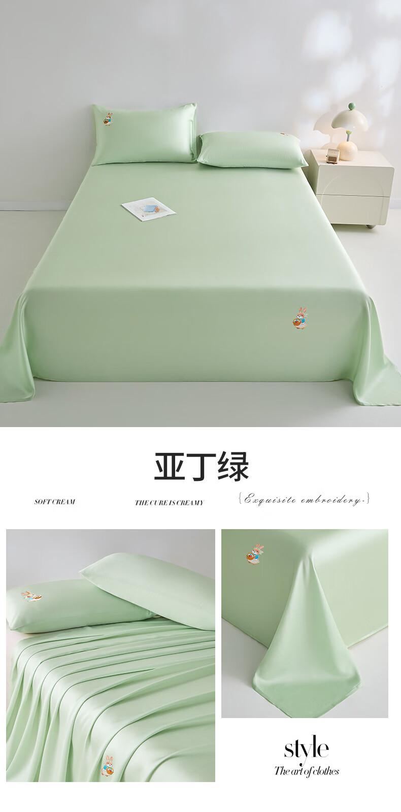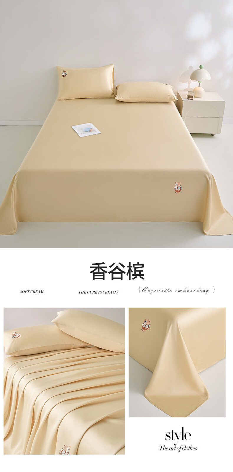 无印良品卡通刺绣天丝床单200x230cm亲肤裸睡双人家用宿舍三件套床上用品 豆蔻粉【吸湿透气 细腻丝滑】 160cm*230cm 单床单