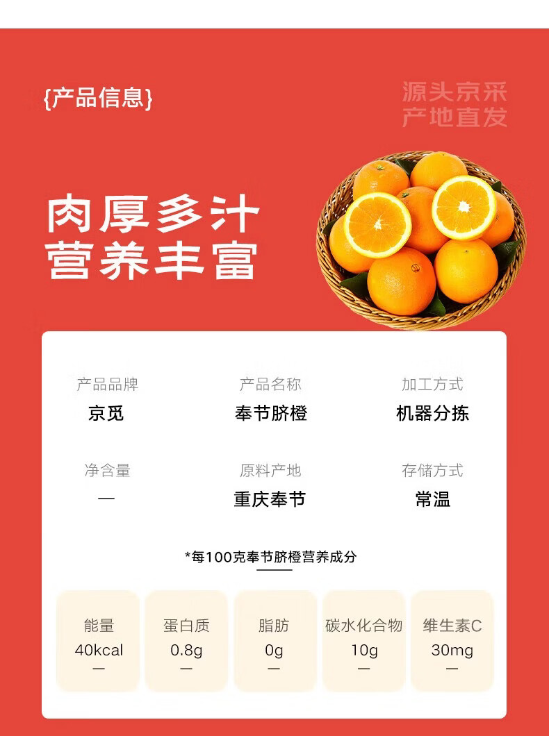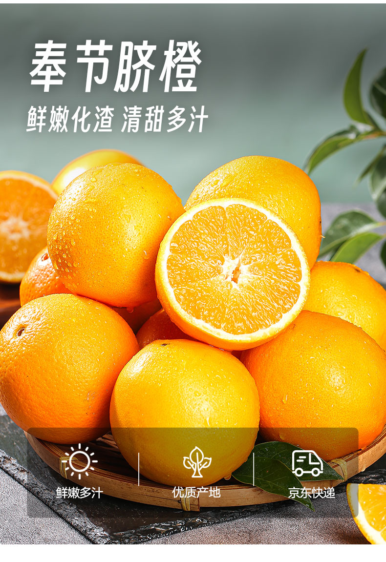 京鲜生重庆奉节伦晚脐橙 净重4.5斤 单果135克+应季水果送礼源头直发