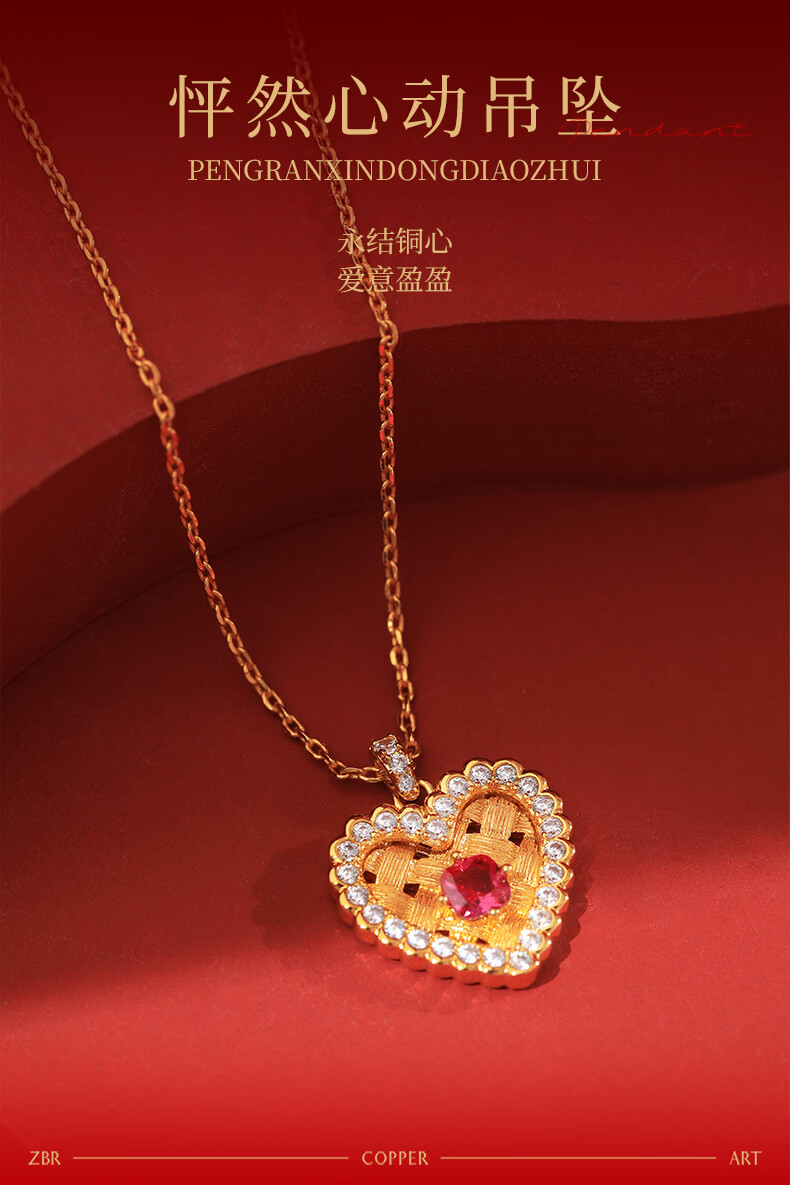 朱炳仁铜 怦然心动吊坠 精美铜吊坠 礼物送女友母亲铜首饰挂件 怦然心动吊坠