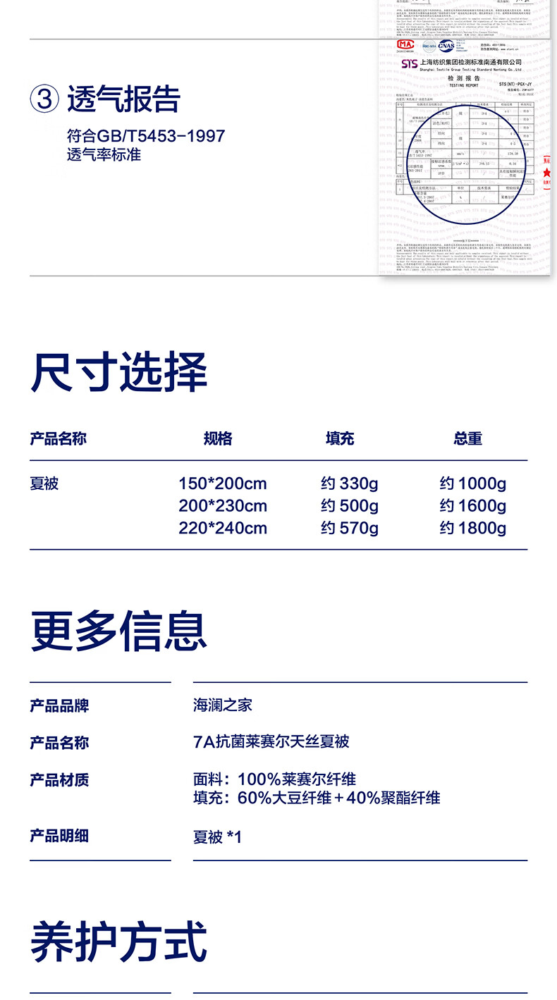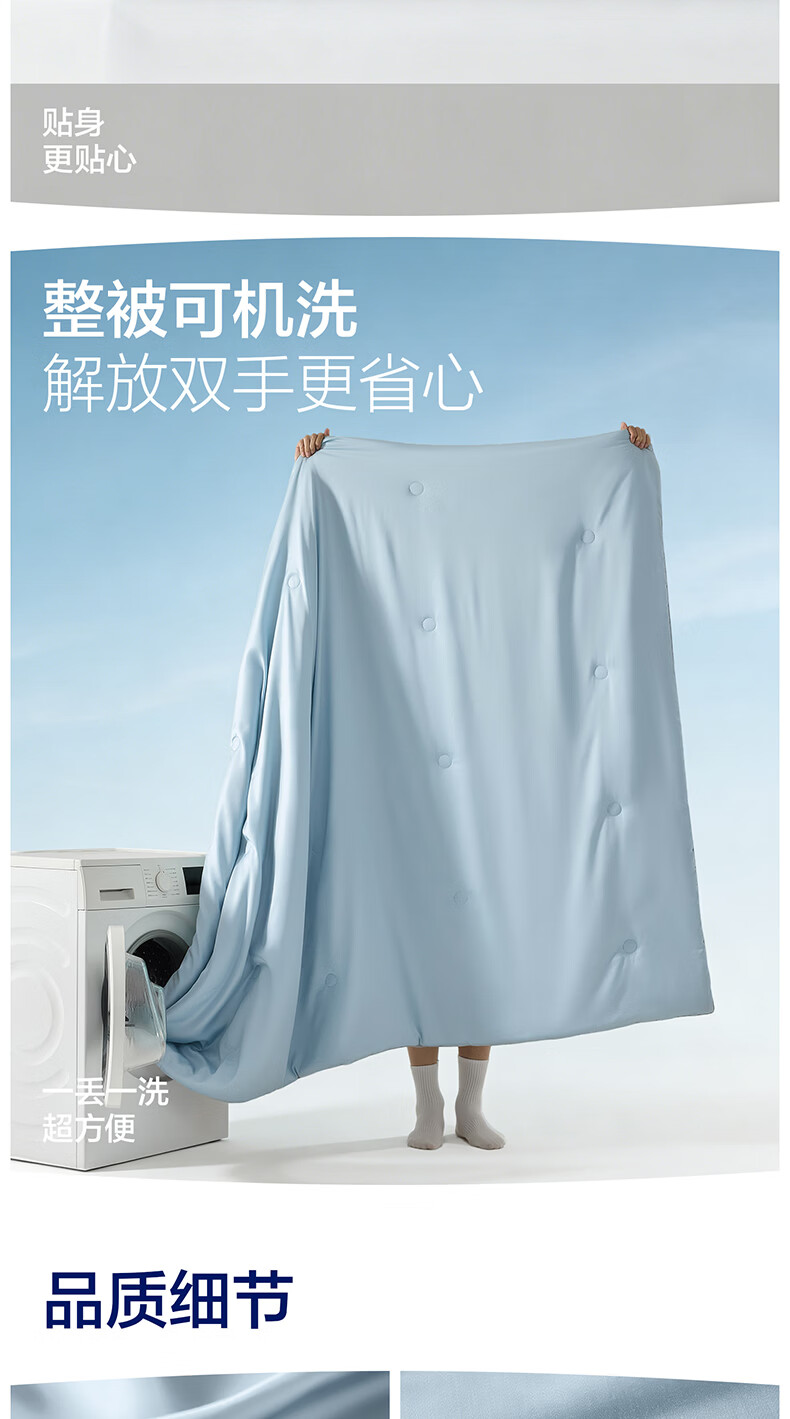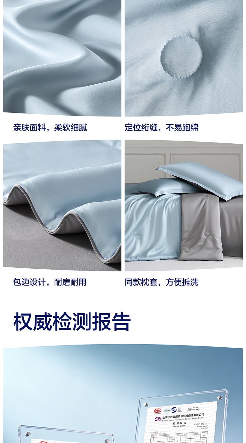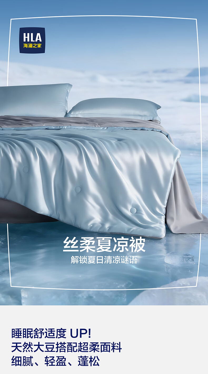 海澜之家(HLA)莱赛尔天丝夏凉被7A抗菌被子空调被高端轻奢凉感被可机洗裸睡被芯 雪灰蓝 【凉感面料 亲肤透气】 150*200cm 【清透凉感 快速降温不闷热】
