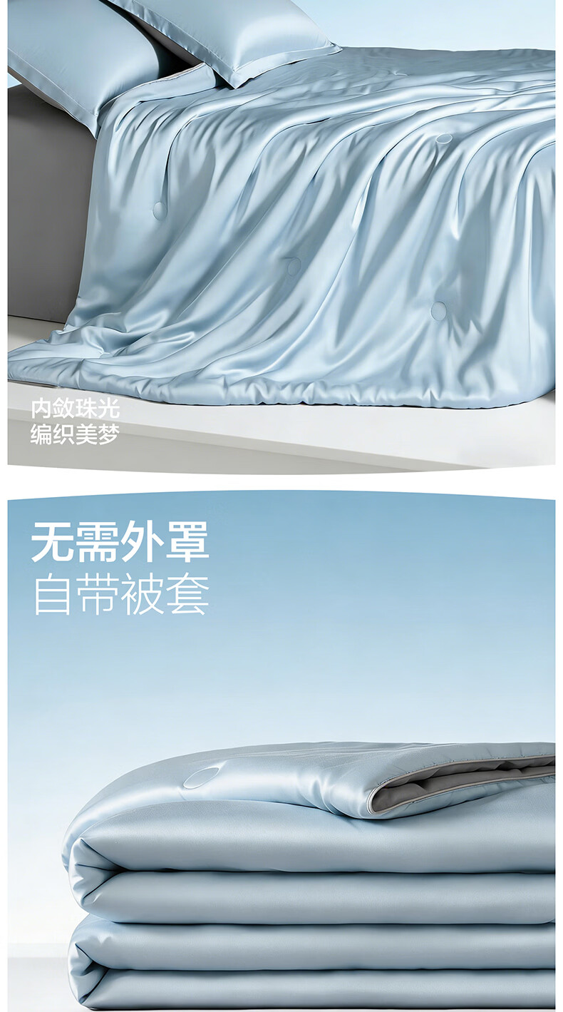 苏萱2026新款热卖水洗冰丝夏被四件套夏季夏凉被空调被可机水洗单双人 亚丁绿+冰川灰 单人夏被-150*200cm