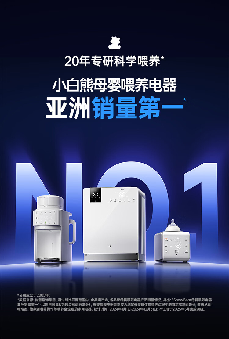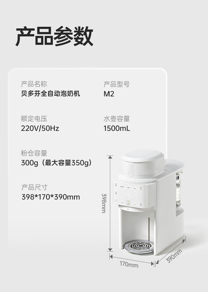 小白熊全自动泡奶机 全玻璃壶精准出粉定量定温智能一体机调奶器M2
