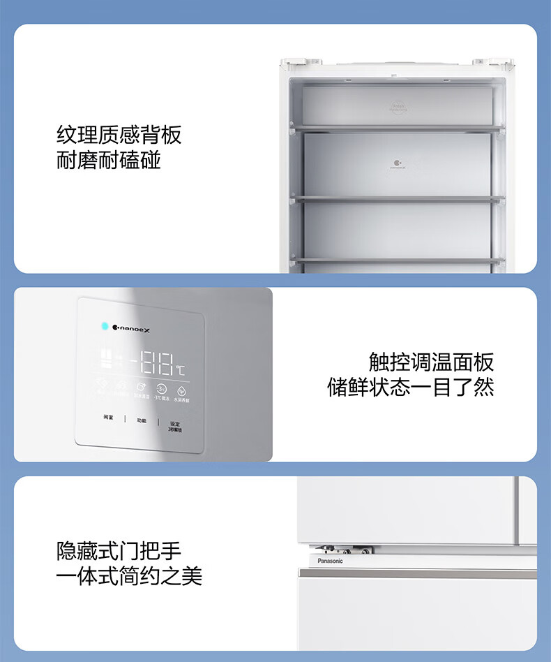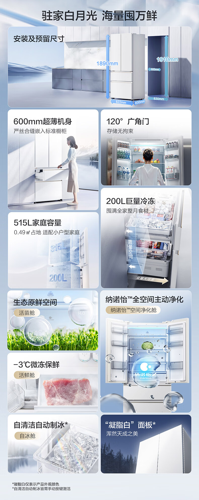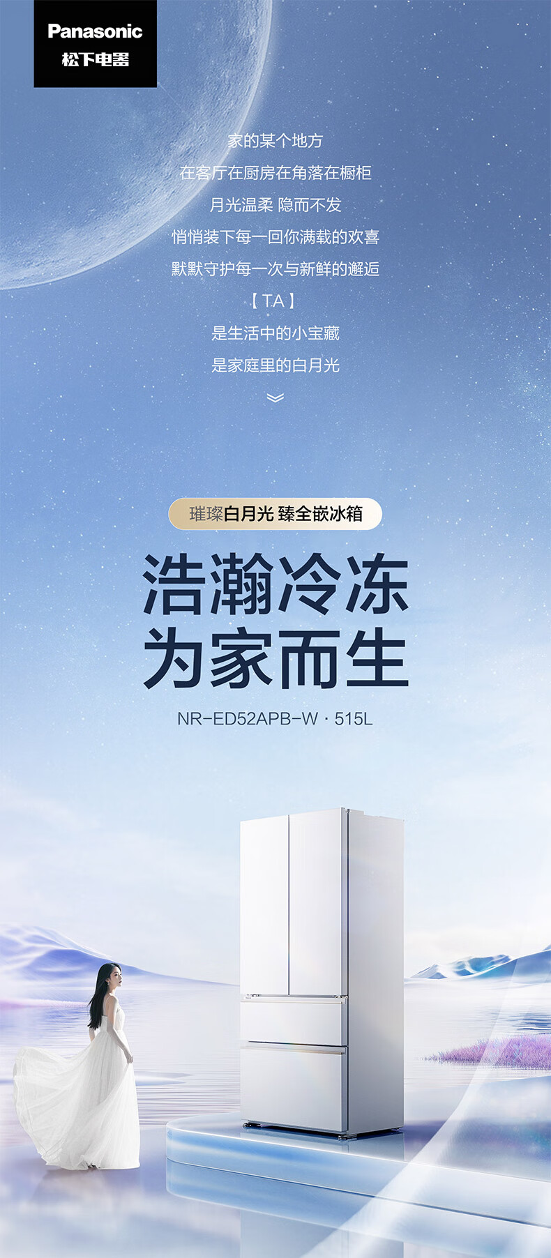 松下(Panasonic)白月光2.0 515L法式多门冰箱家用超薄零嵌入式自动制冰一级能效NR-ED52APB-W【国家补贴】