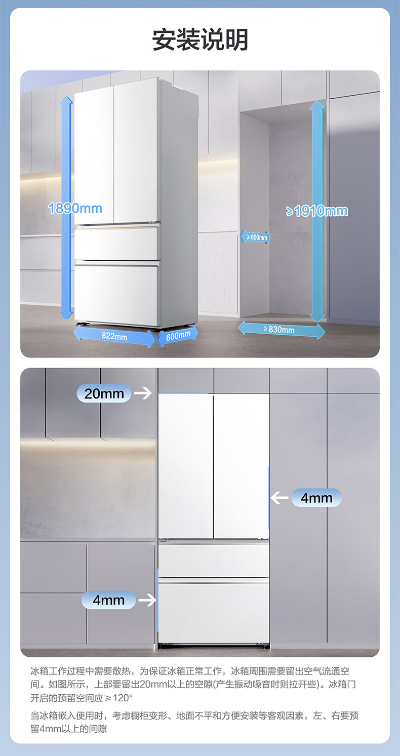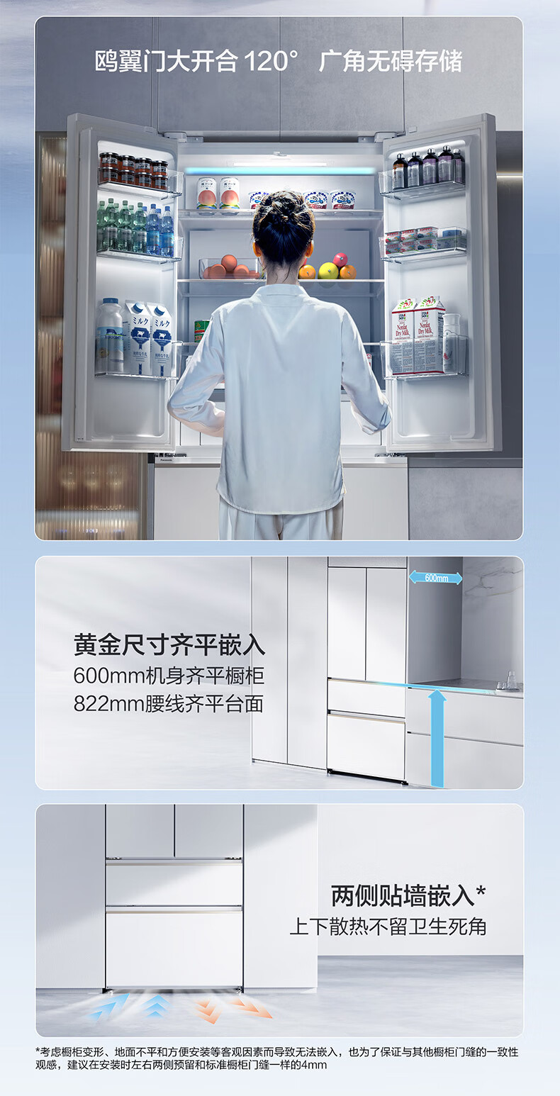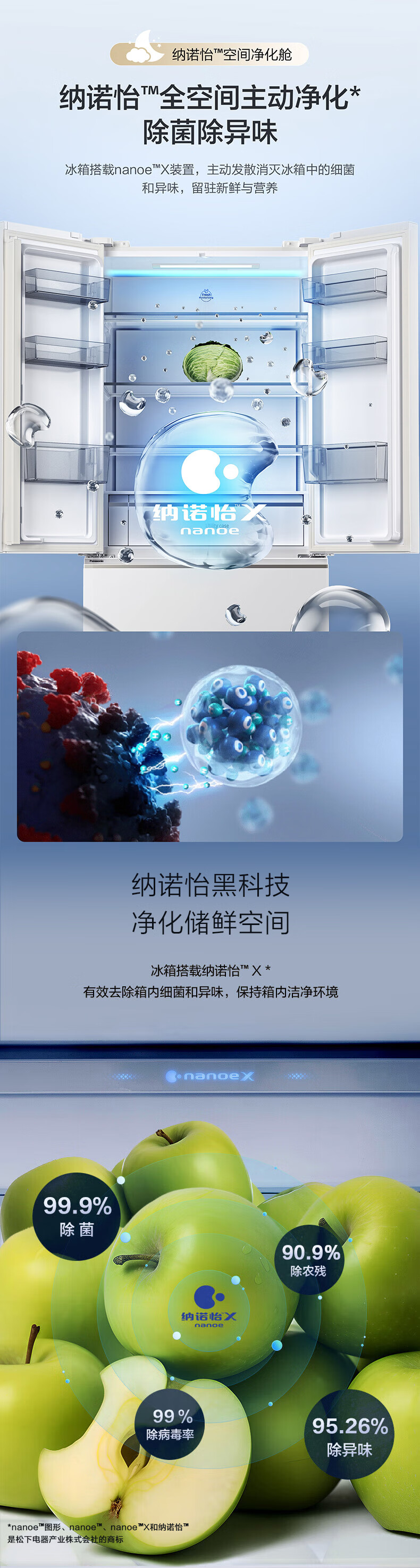 松下(Panasonic)白月光2.0 515L法式多门冰箱家用超薄零嵌入式自动制冰一级能效NR-ED52APB-W【国家补贴】