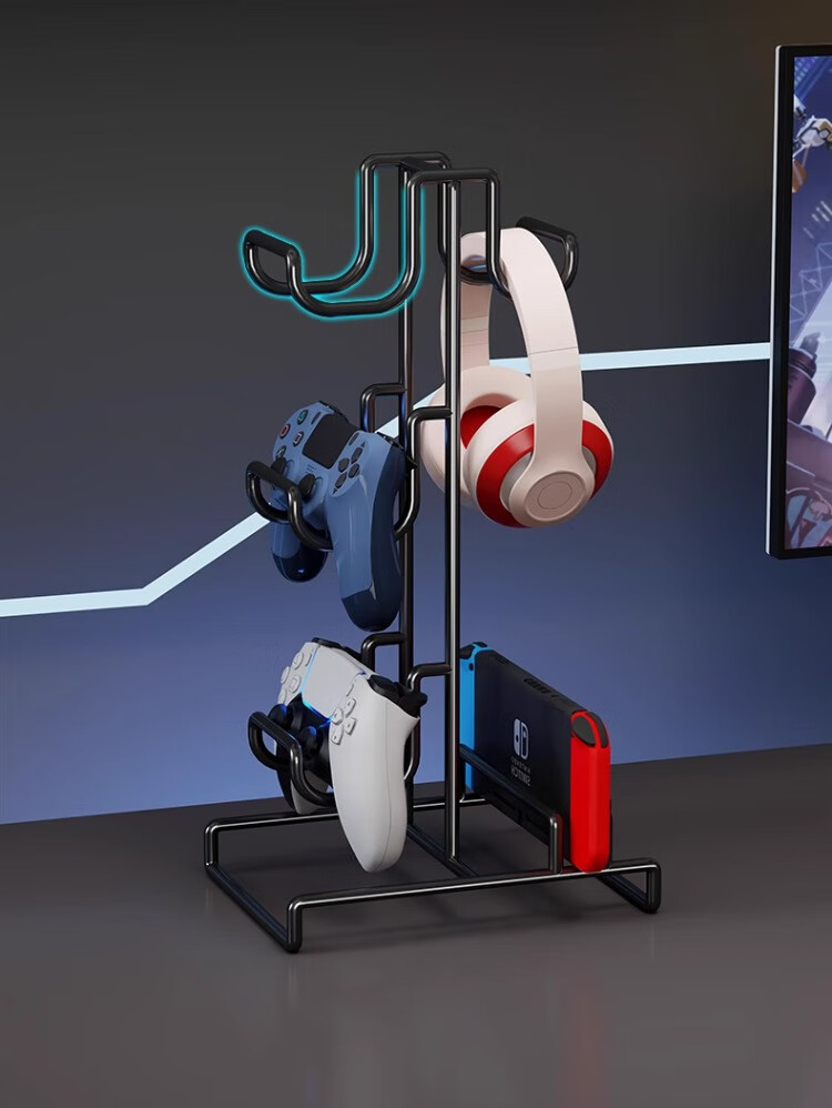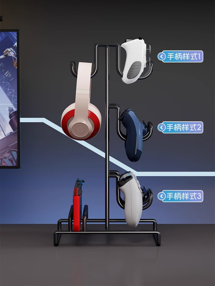 尔思家游戏手柄支架游戏挂架桌面上收纳宿舍好物置物架耳麦耳塞整理架 黑色手柄支架-三层