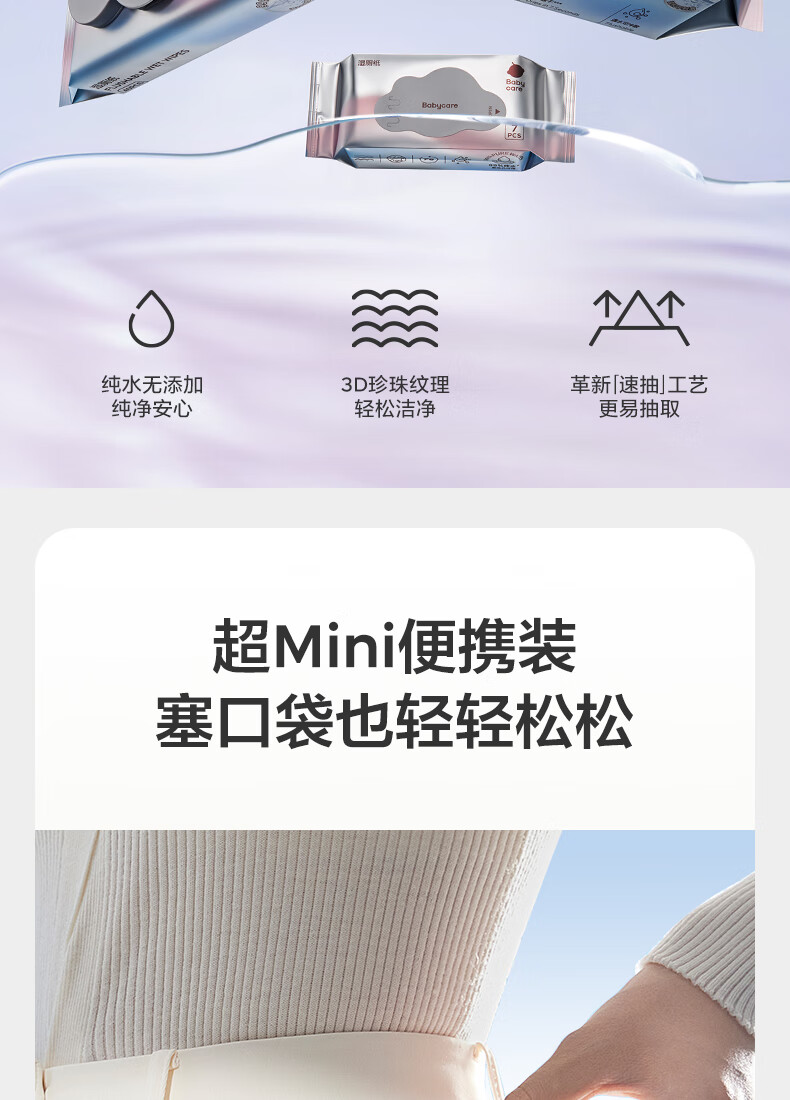 babycare婴童纯水湿厕纸洁厕湿巾湿纸巾便携装7抽-6包可搭配卷纸卫生纸