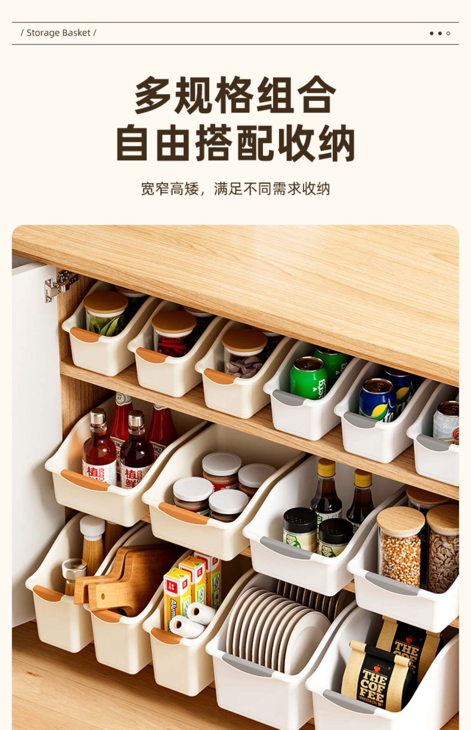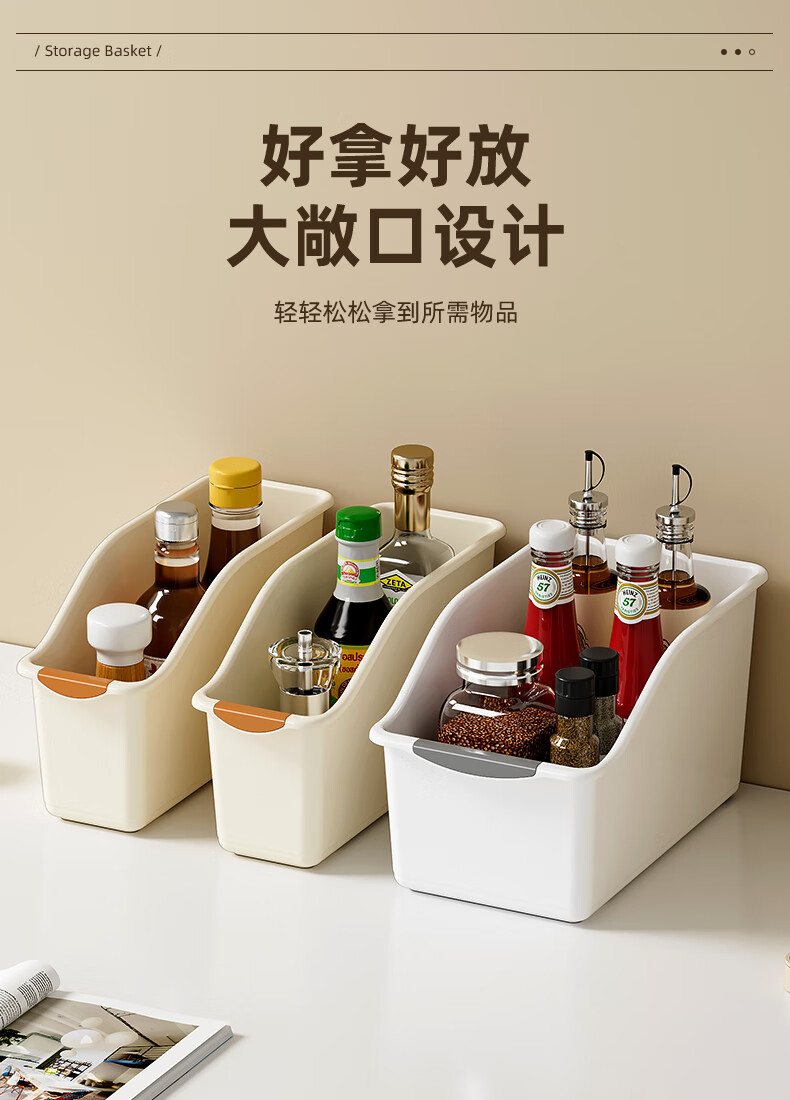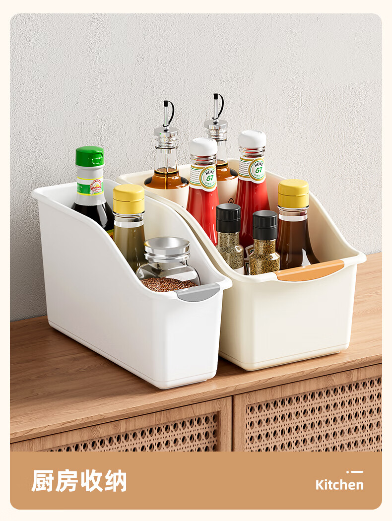 厨房收纳盒橱柜内锅铲锅盖架调味料置物架下水槽整理盒桌面储物盒 矮款大号【1个装】 无规格