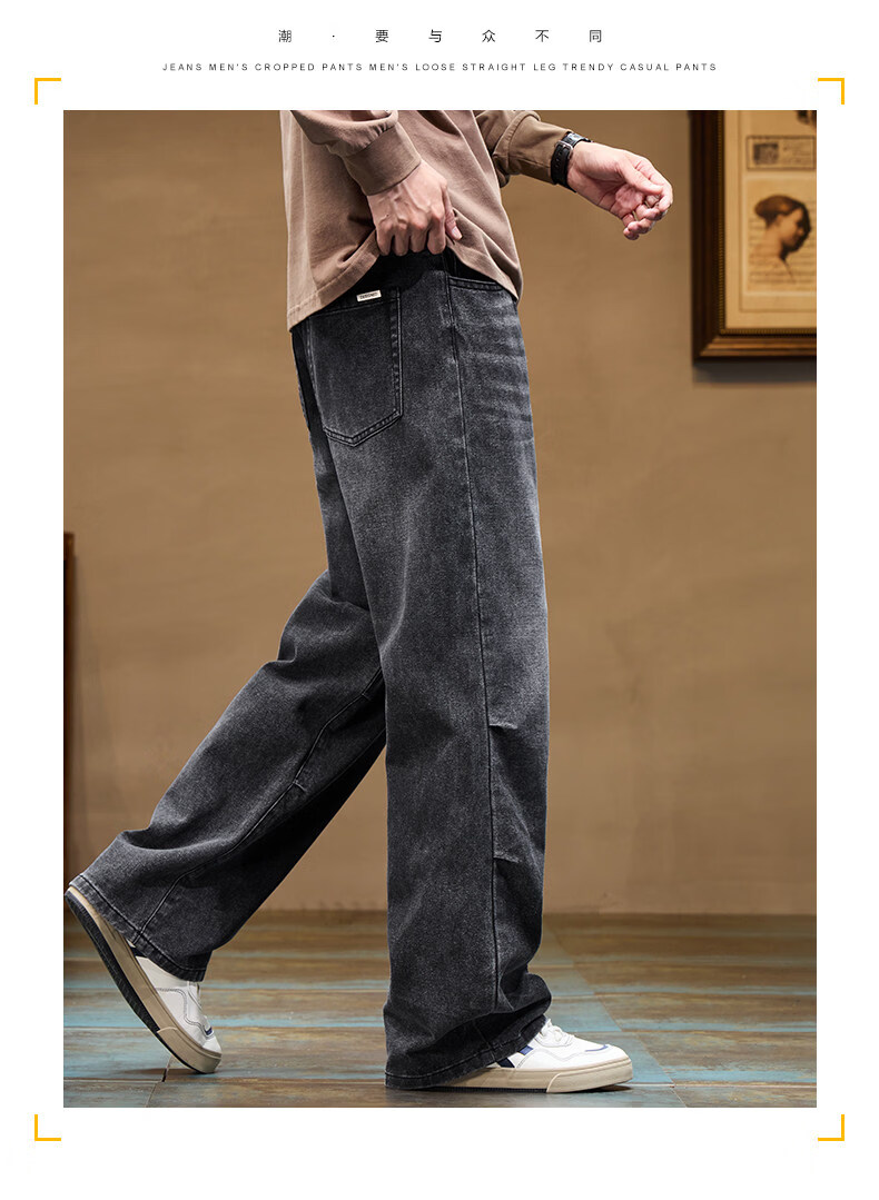 真维斯(Jeanswest)牛仔裤男潮牌新款男高街休闲裤男士2026春秋季百搭垂感直筒长裤男 黑色 纯色 31 (2尺4)