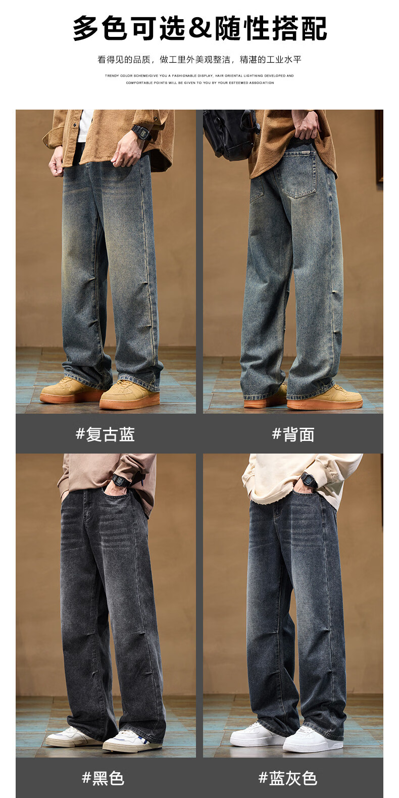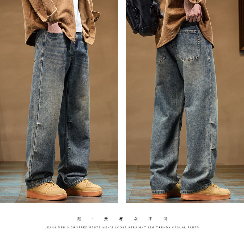 真维斯(Jeanswest)2026春夏季新款牛仔裤男士直筒阔腿裤宽松潮流休闲男装休闲长裤子 复古蓝 【春季新品】 28