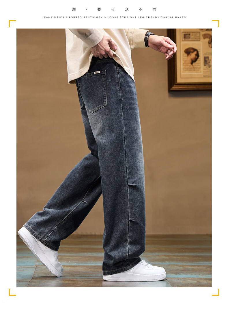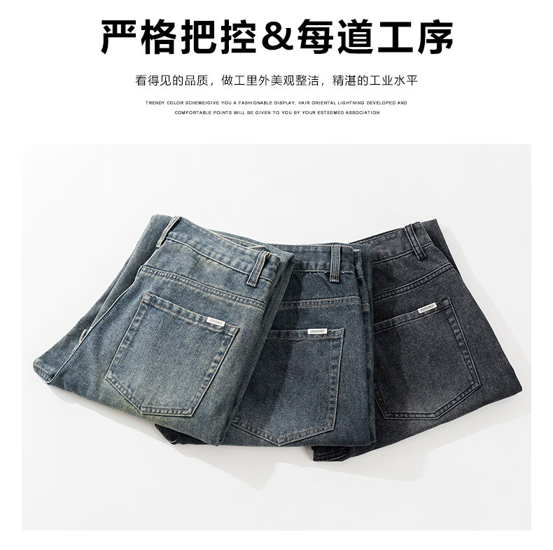 真维斯(Jeanswest)牛仔裤男潮牌新款男高街休闲裤男士2026春秋季百搭垂感直筒长裤男 深牛仔蓝 纯色 31 (2尺4)