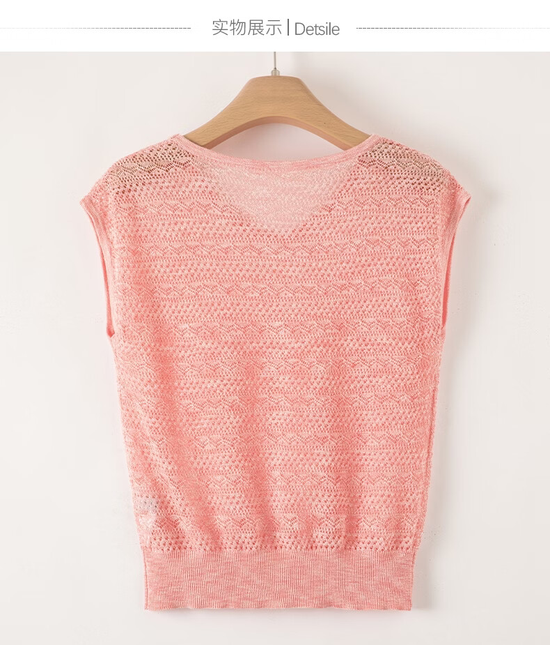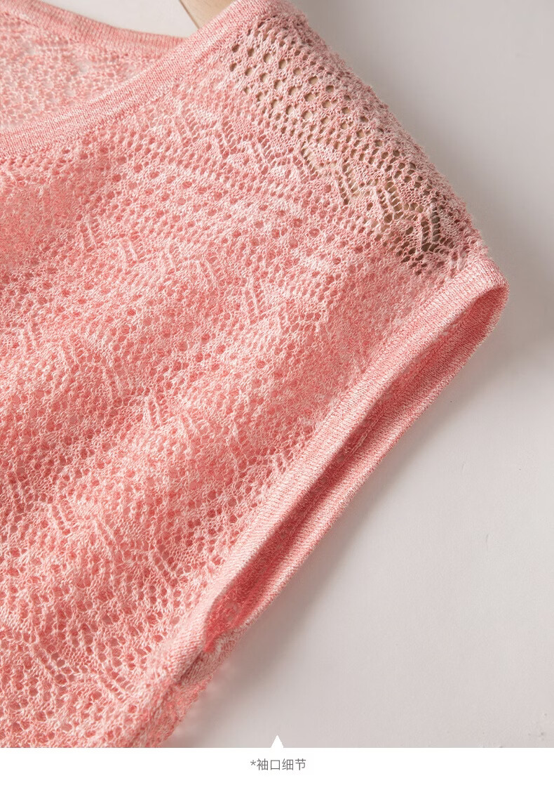 晚白【新品】2026年春款U领清爽上衣时尚镂空花纹无袖针织衫女 桃红色 S