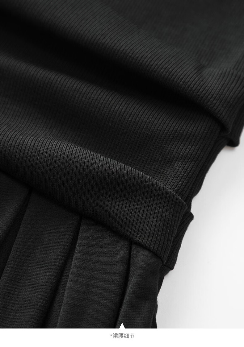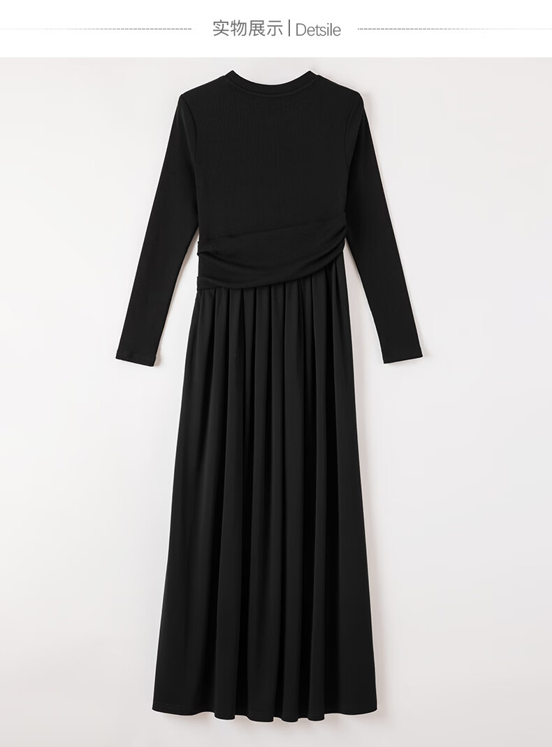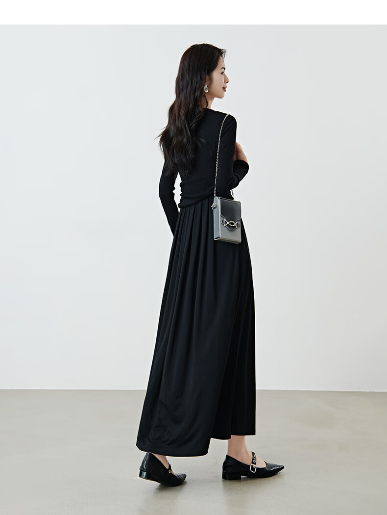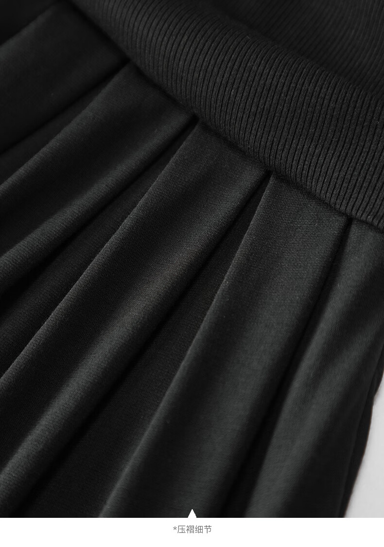 晚白【加长版】2026春气质假两件赫本风小黑裙高温压褶收腰显瘦连衣裙 黑色 L 建议158cm以上拍