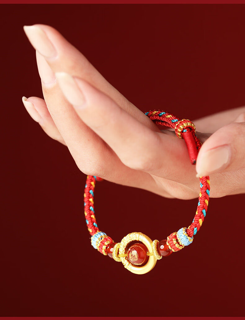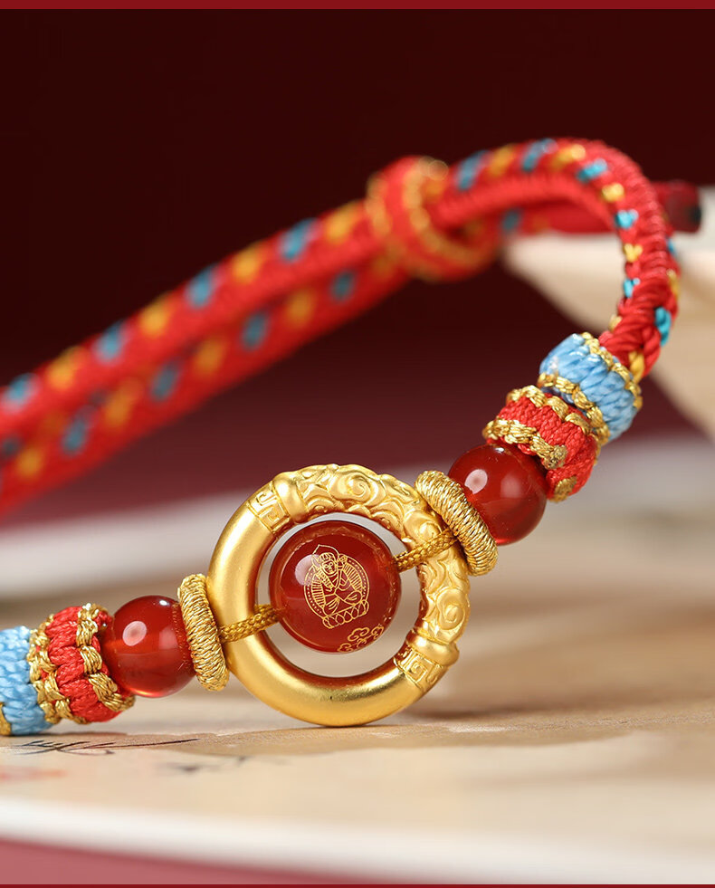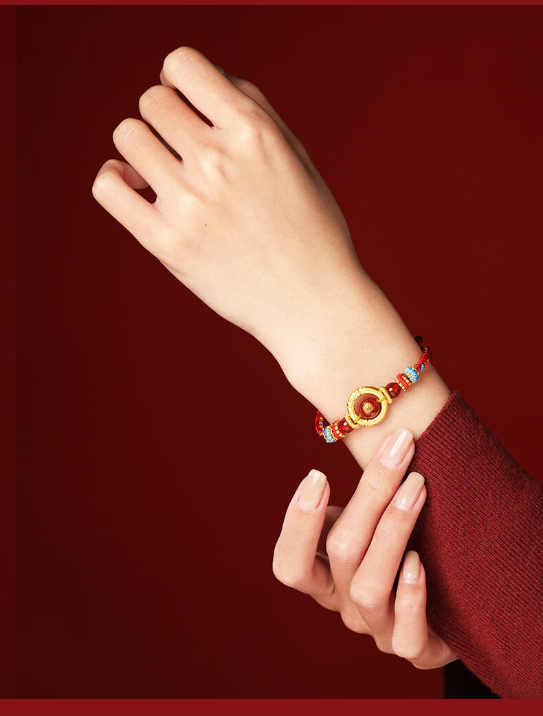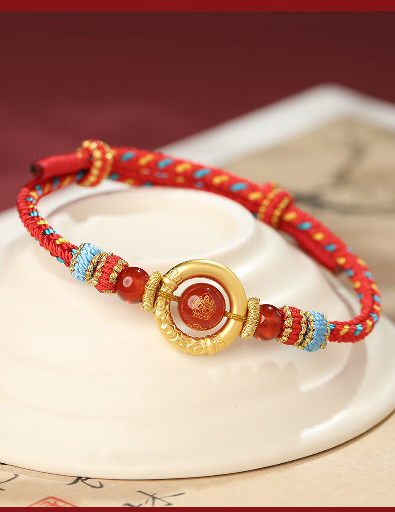 慈元阁lucky福禄鎏金福禄手绳本命年男女情侣款手工编织红绳手链送女友 鎏金福禄手绳-lucky福禄