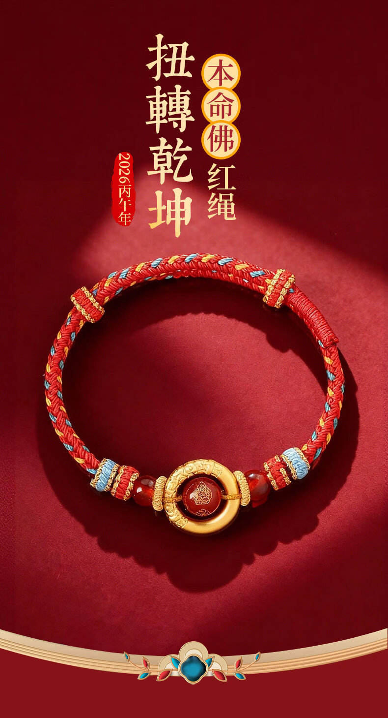 慈元阁2026本命佛乾坤圈红绳手链男女士可调节编织情侣玛瑙手绳生日礼物 属鼠