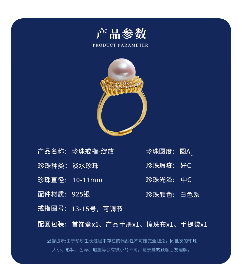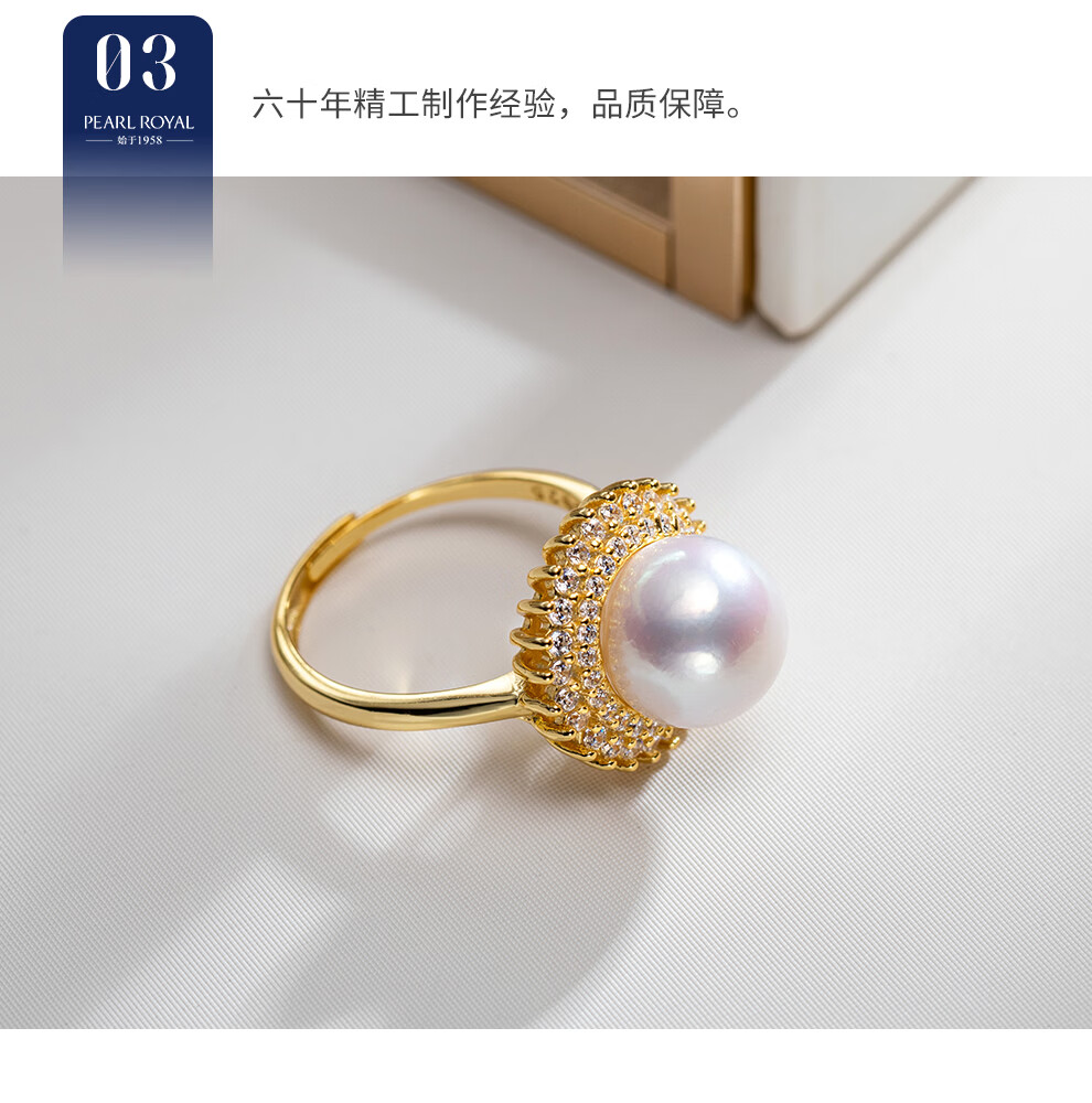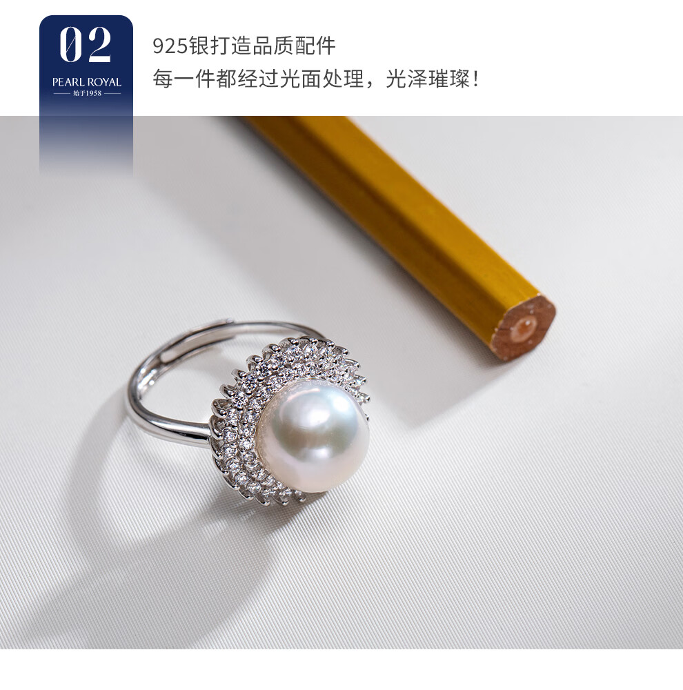南珠宫绽放925银淡水珍珠戒指强光圆形高级感生日礼物送女友 银色款 10.0-11.0mm戒圈13-15号