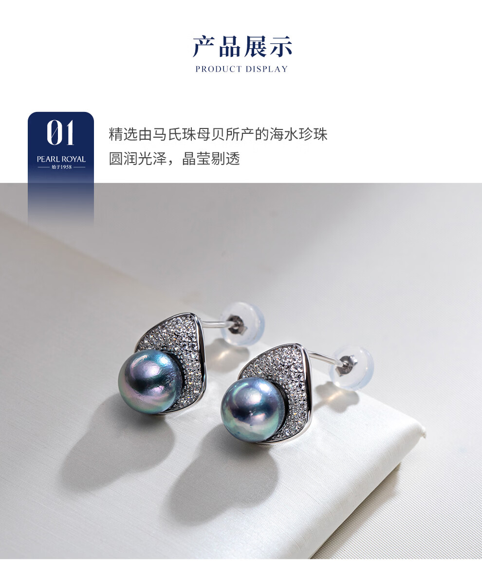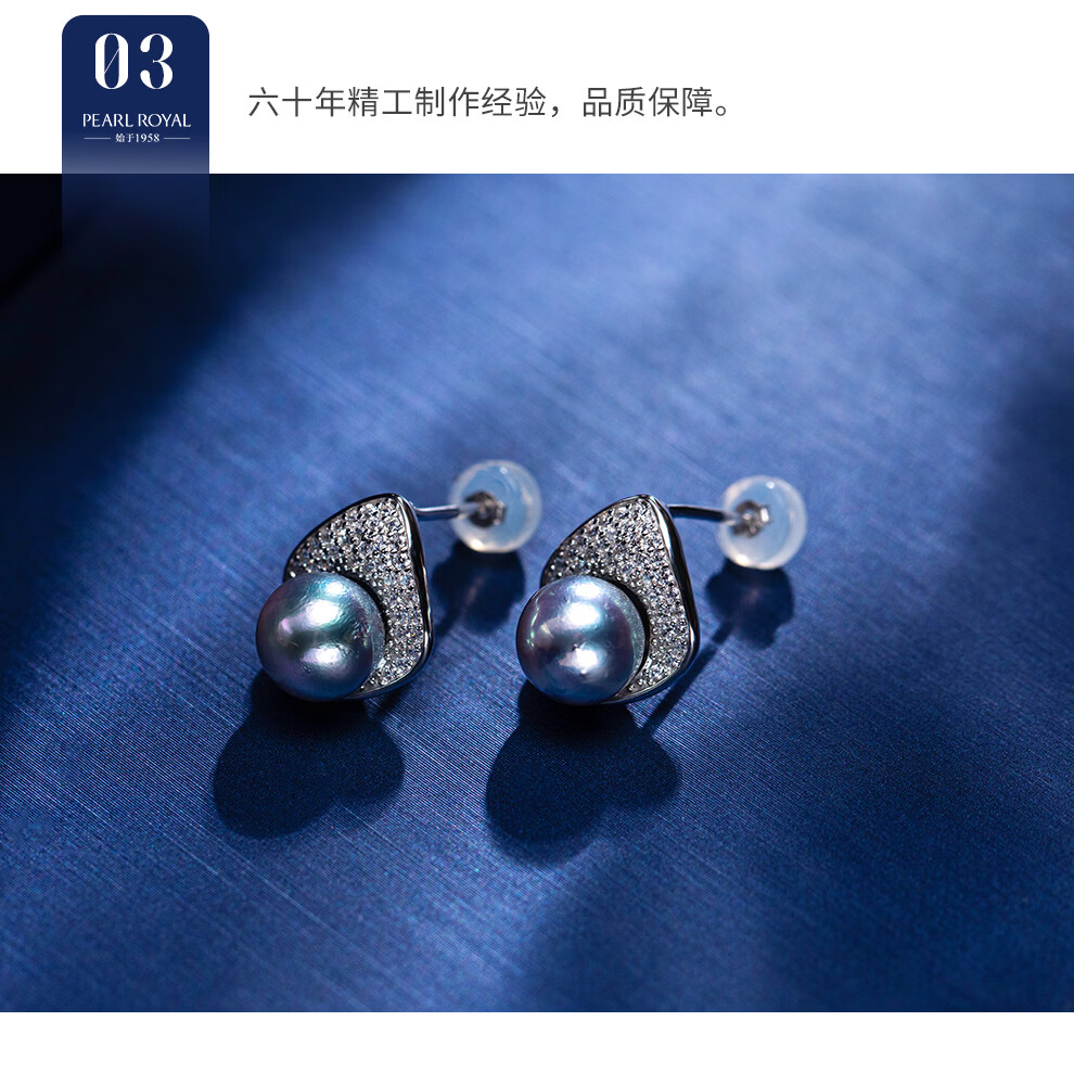 南珠宫流光18K金大溪地海水珍珠耳环强光圆形精致百搭生日礼物送老婆 银色款 8.0-9.0mm