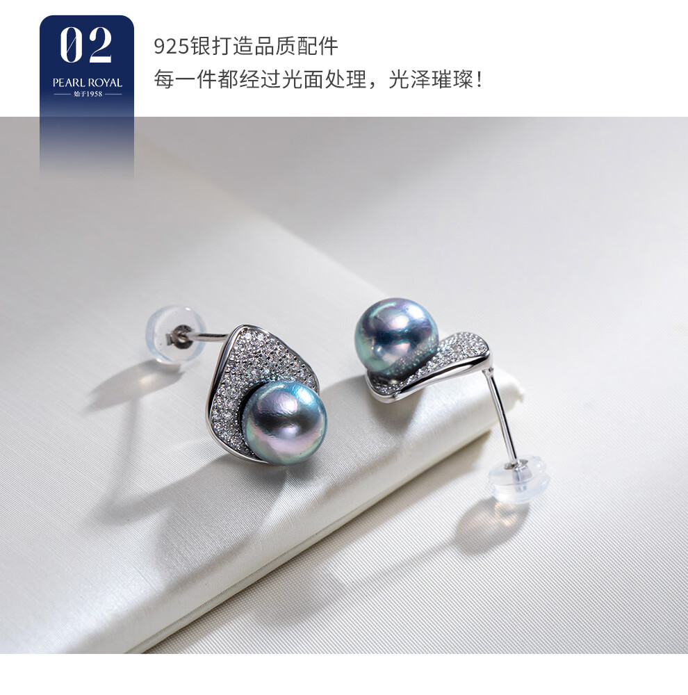 南珠宫恋光925银海水珍珠耳环南洋金珠耳钉强光近圆轻奢生日礼物送女友 10.0-11.0mm 925银海水珍珠耳环