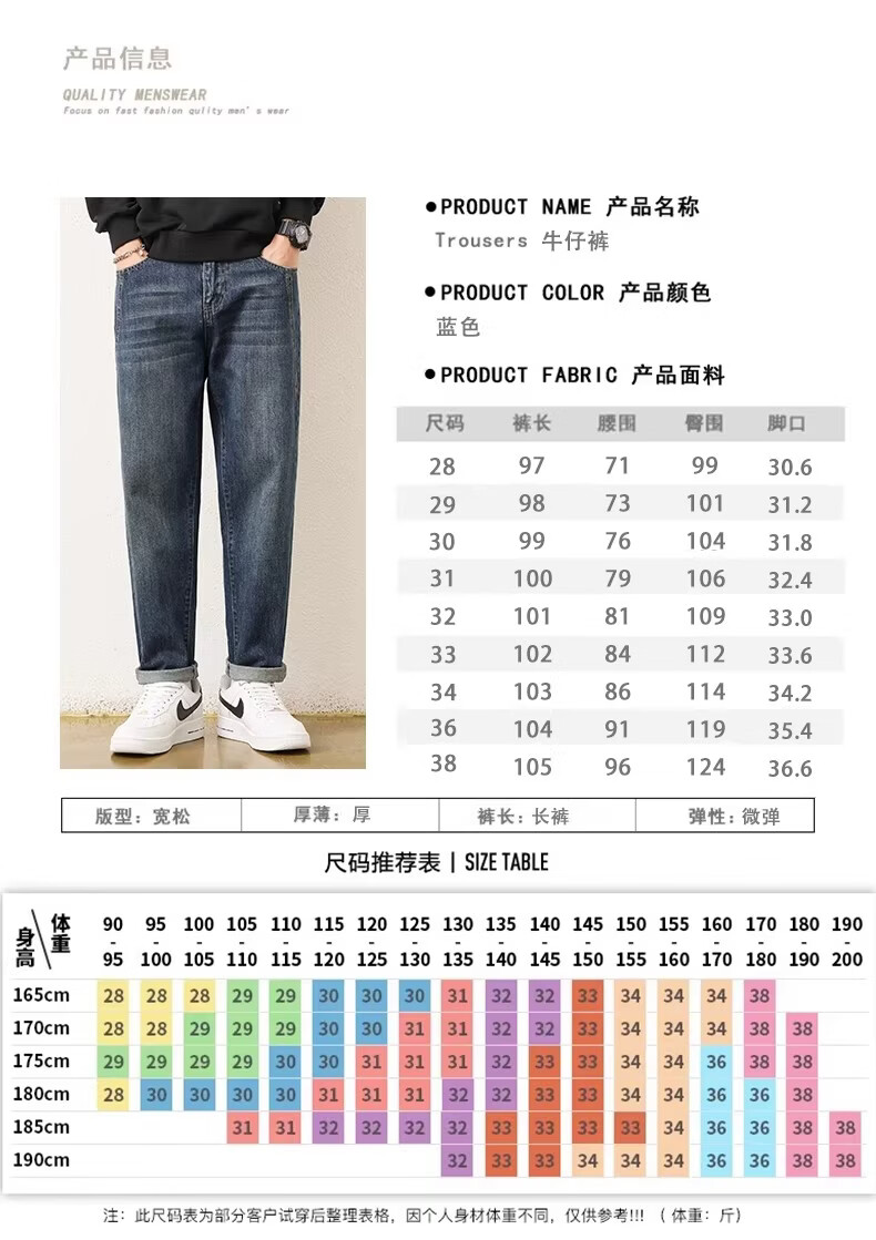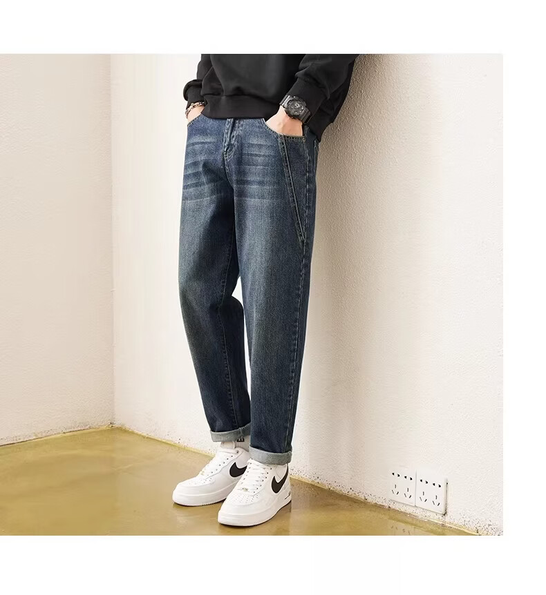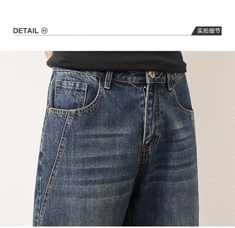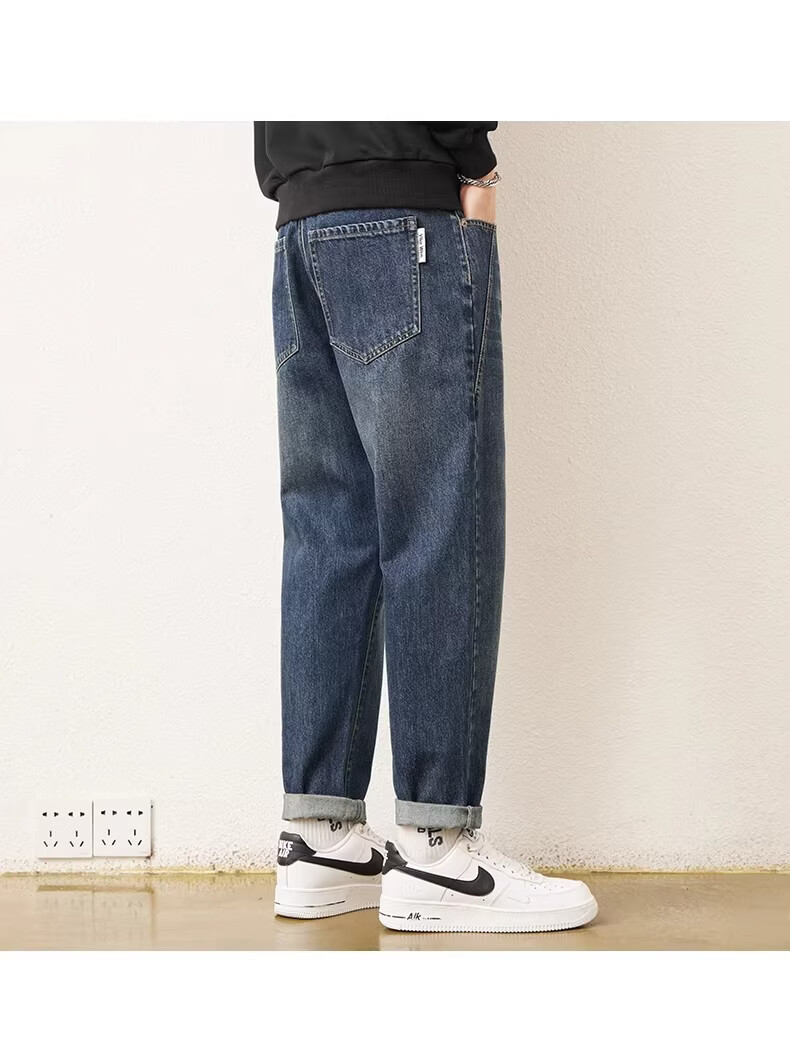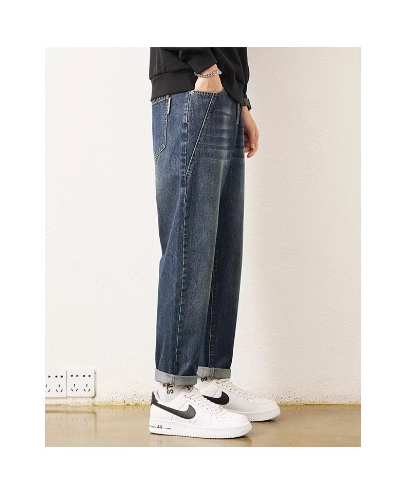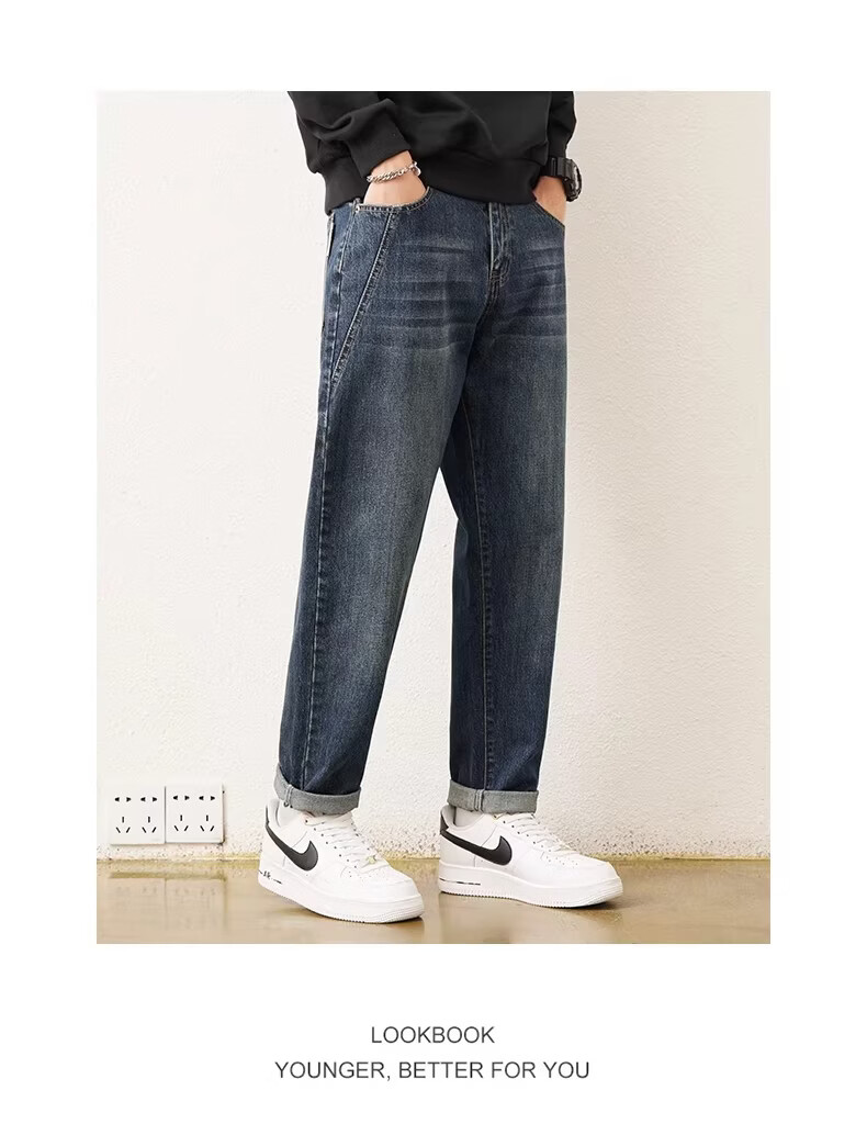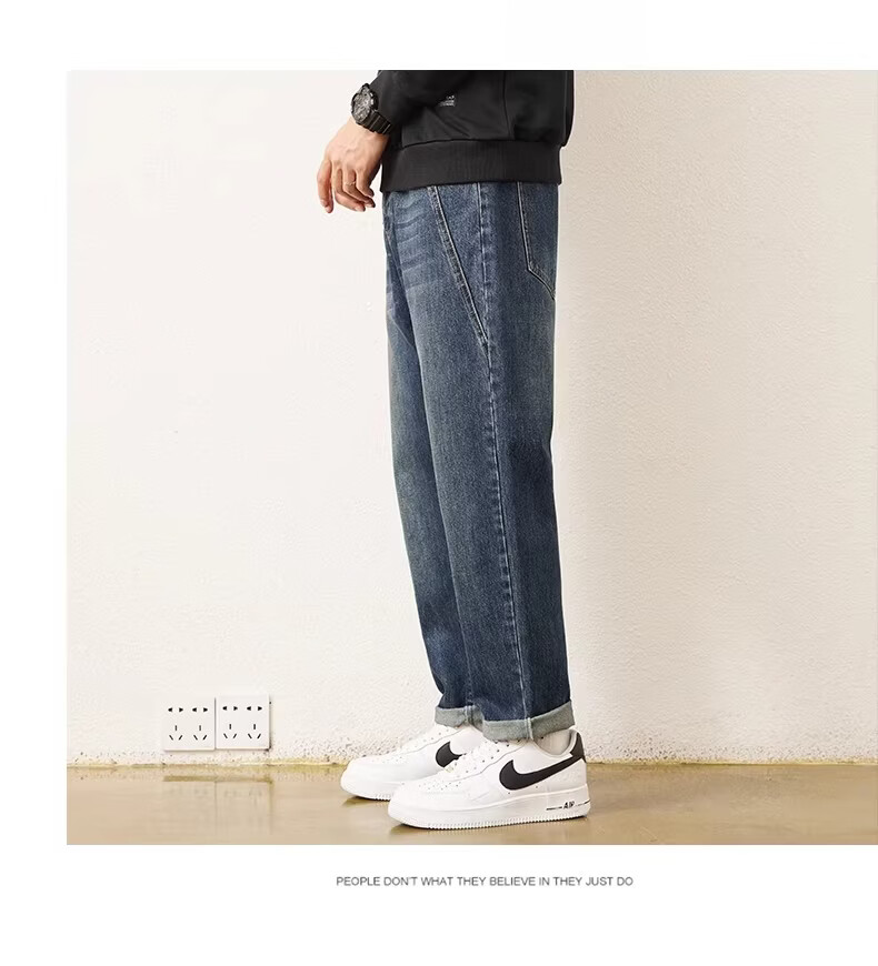 真维斯2026春秋季新款美式男士潮牌牛仔裤复古水洗直筒潮流青少年长裤子 蓝色 28