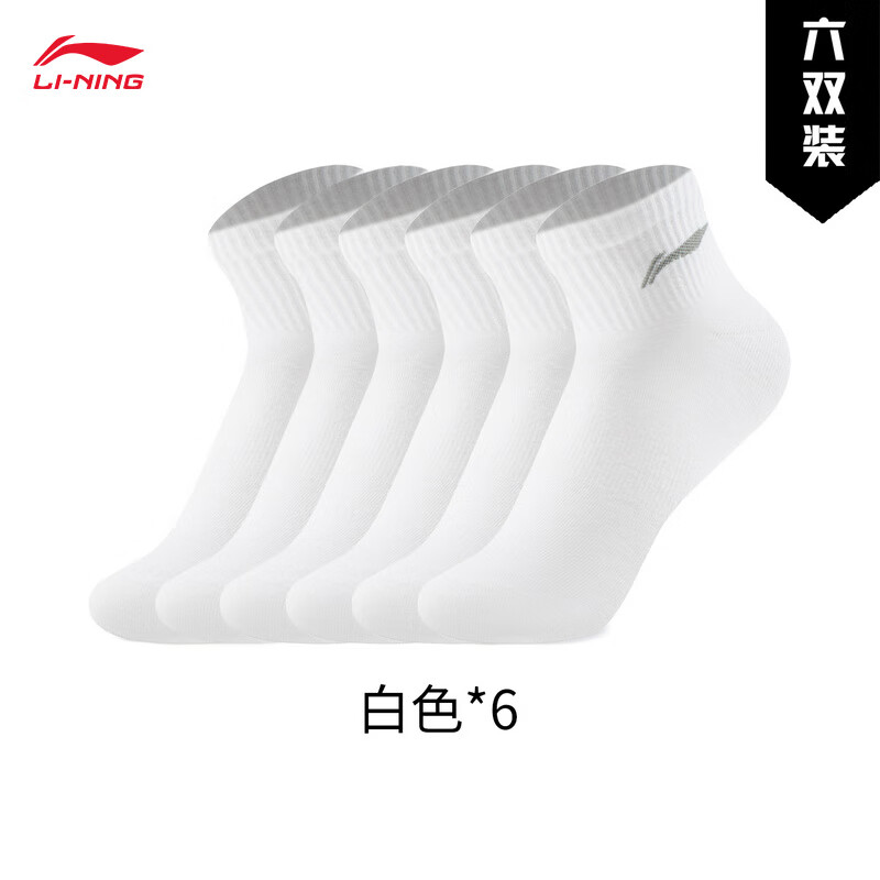 李宁运动袜男女同款六双装短袜(特殊产品不予退换货) 白色-1 XL