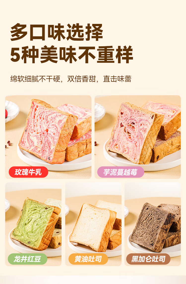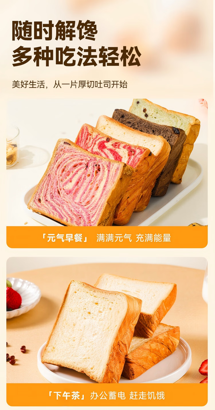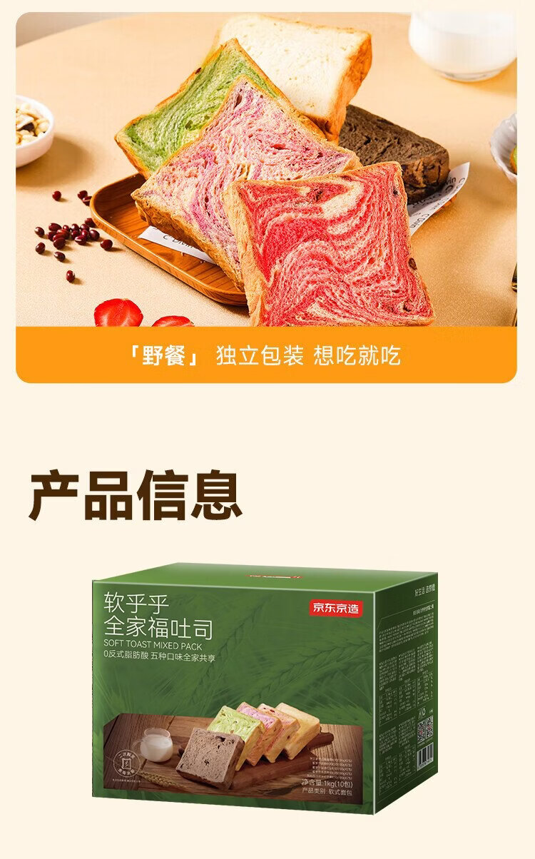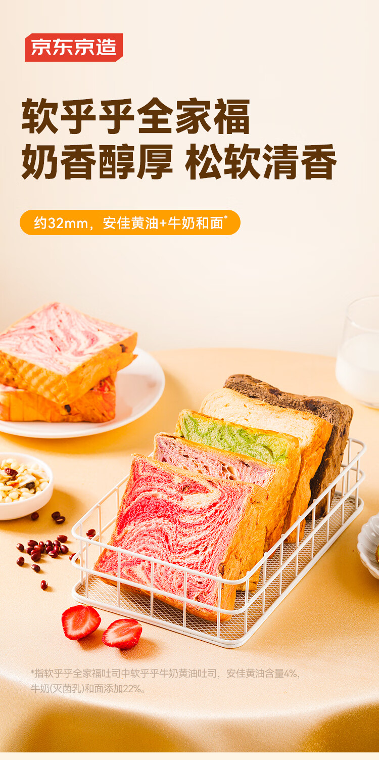 京东京造厚切吐司1kg10片黄油红豆牛乳手撕面包整箱学生早餐代餐零食营养