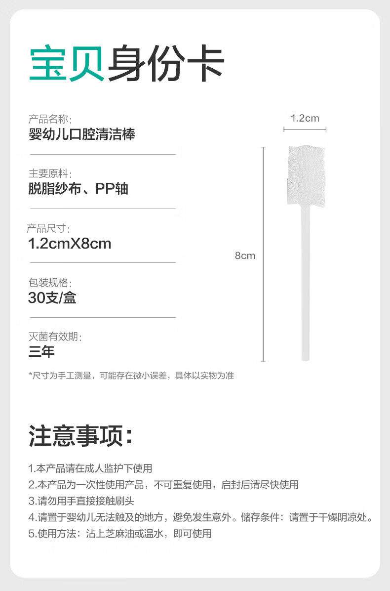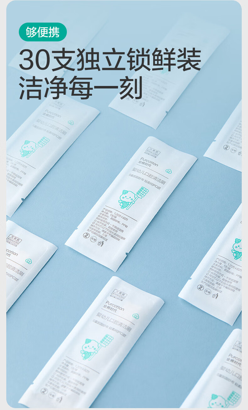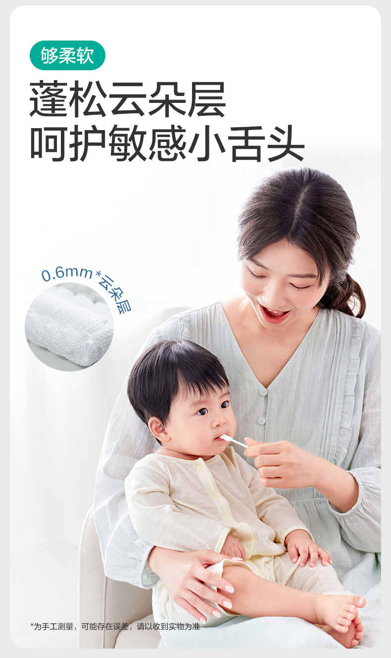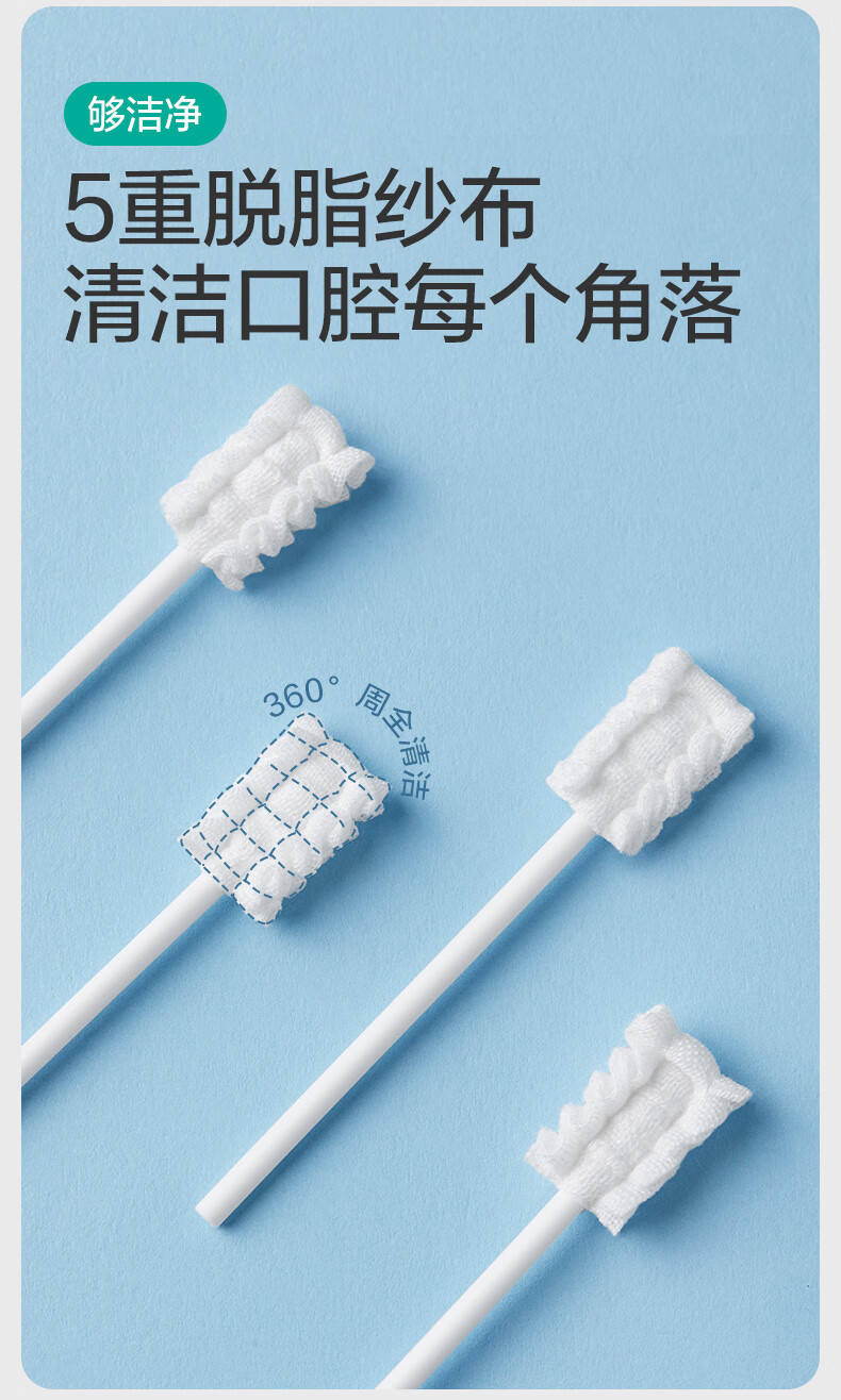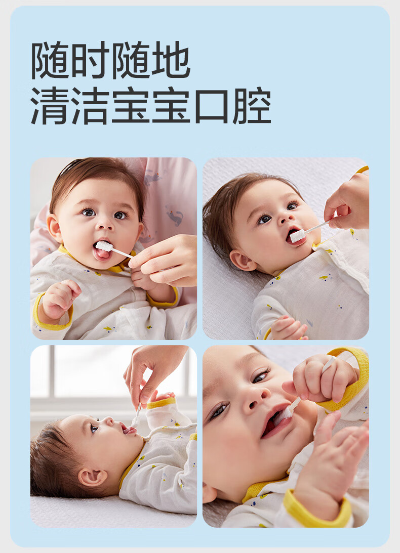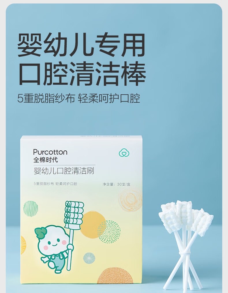 全棉时代婴儿牙刷口腔清洁棒纱布新生宝宝棉棒洗舌苔无胶贴合工艺30支1盒