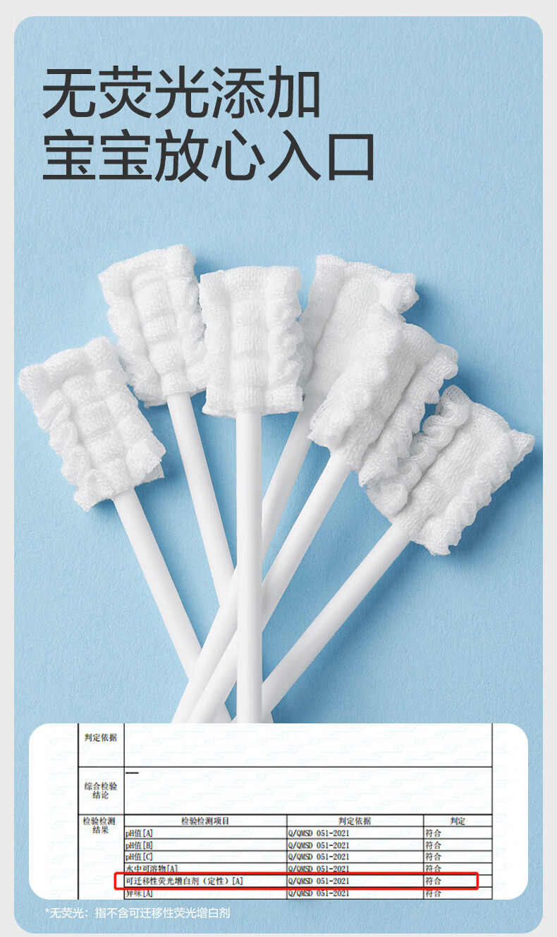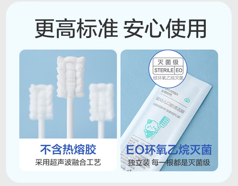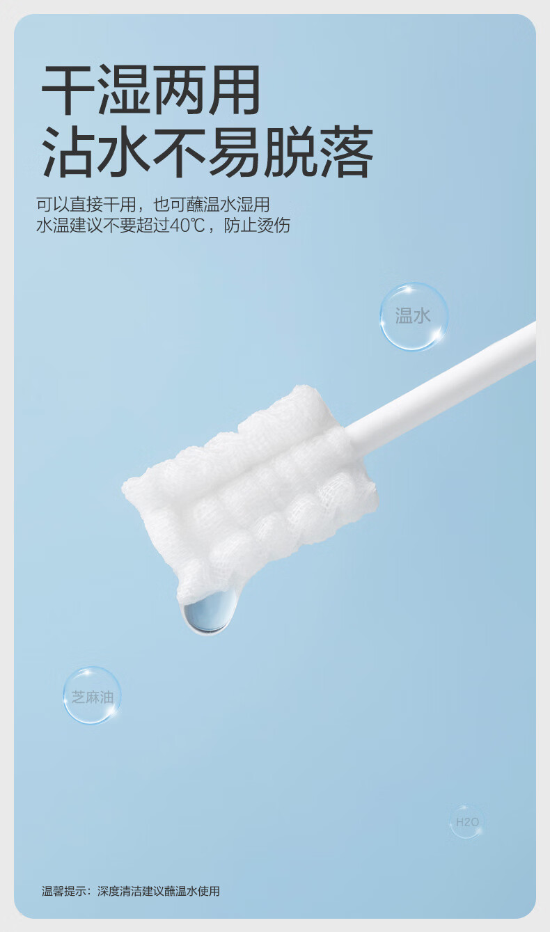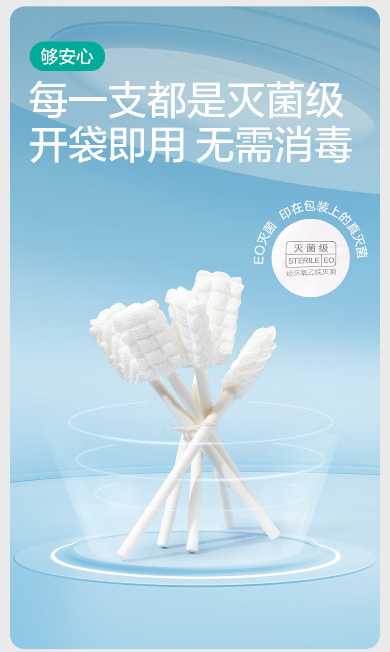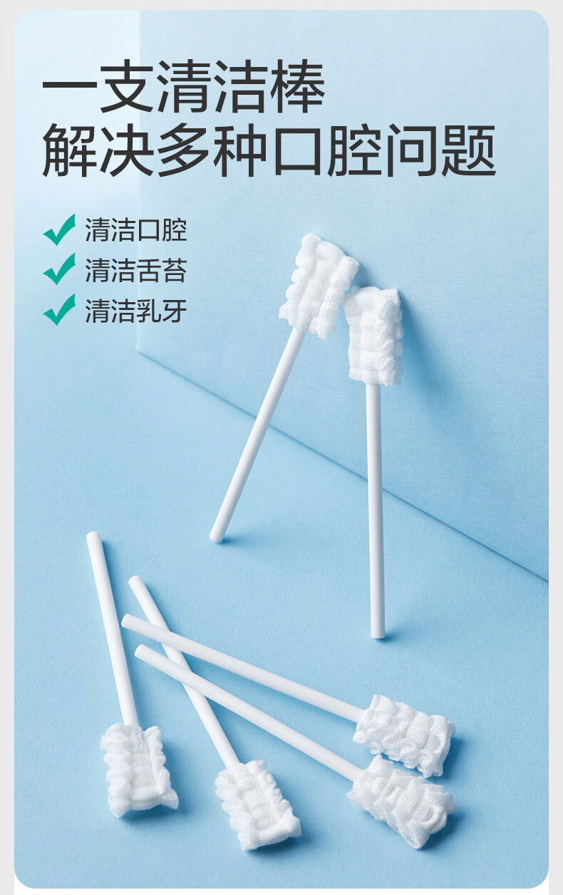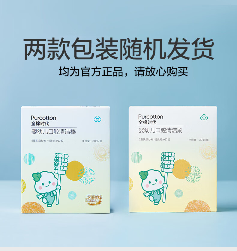 全棉时代婴儿牙刷口腔清洁棒纱布新生宝宝棉棒洗舌苔无胶贴合工艺30支1盒