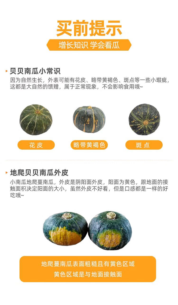 京鲜生贝贝南瓜净3斤(粉糯瓜)中果300+蔬菜辅食板栗味源头直发
