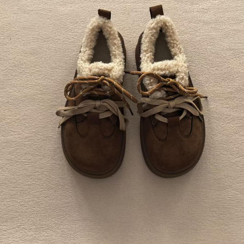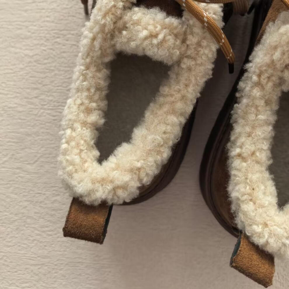 稻草人(MEXICAN)厚底加绒复古美拉德勃肯鞋女2026年冬季新款百搭雪地保暖乐福棉鞋 棕色 专柜版关注店铺送运费险 35