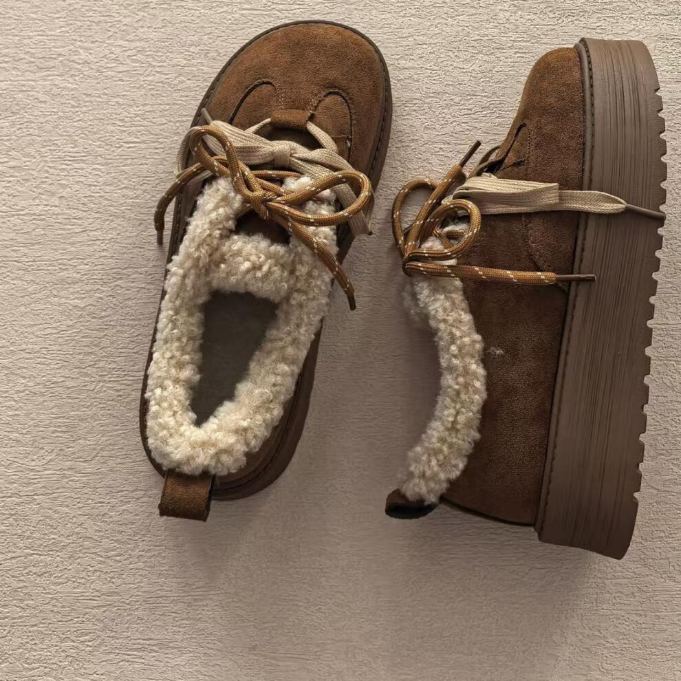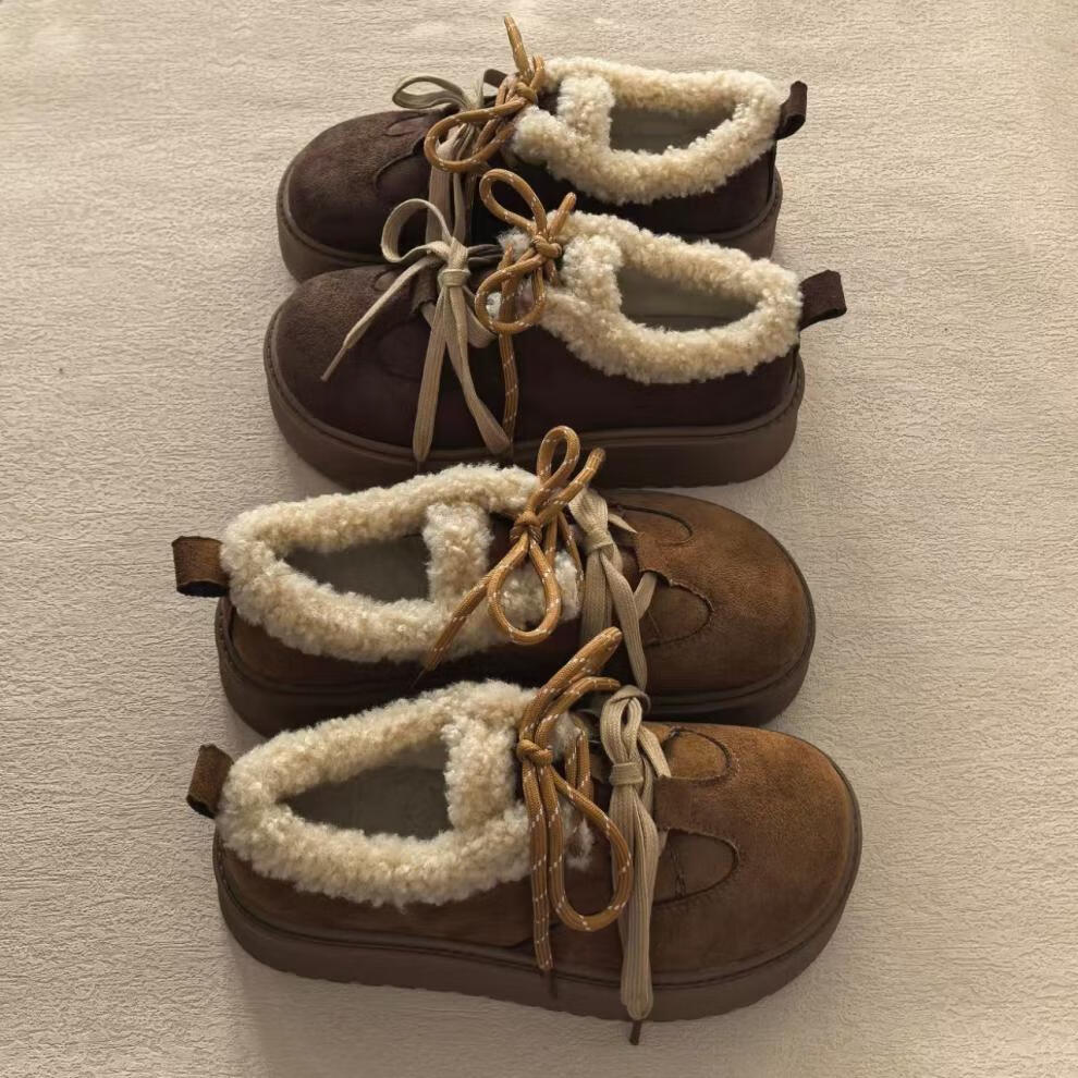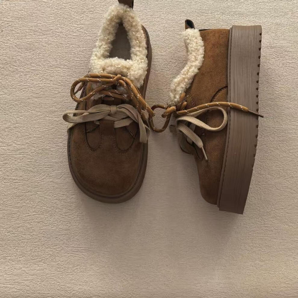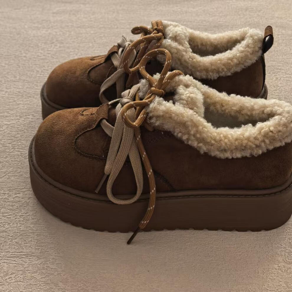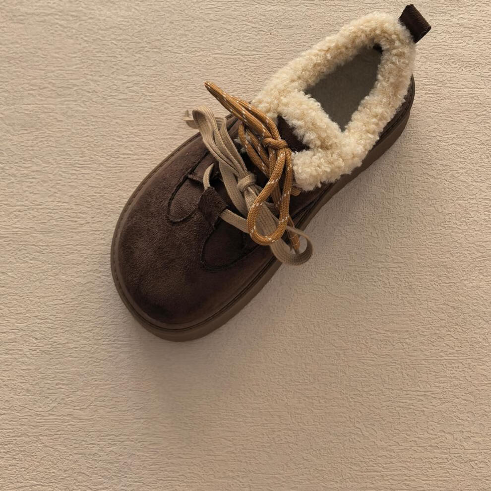 星期六毛绒雪地靴女款冬季加绒2025新款女鞋东北短筒棉鞋厚底保暖面包鞋 卡其色 【冬季保暖】跟高3cm 38