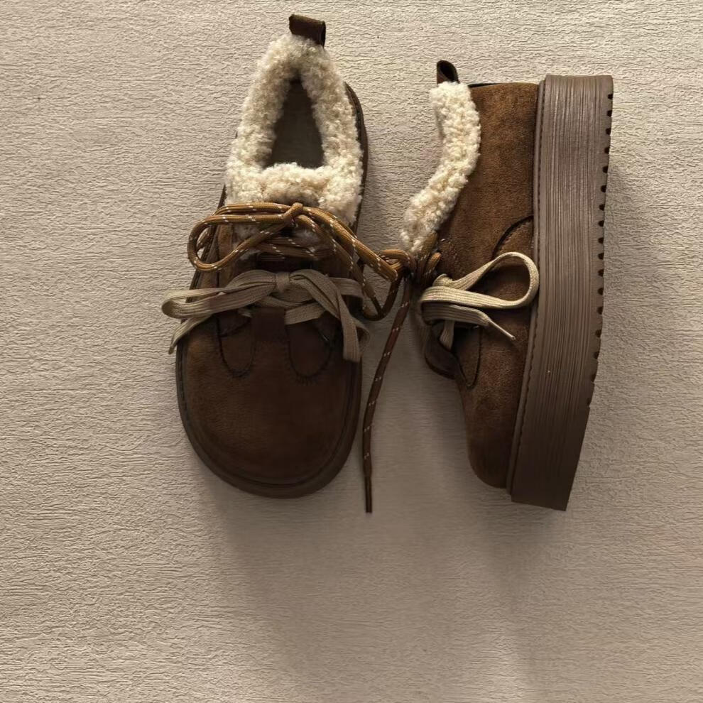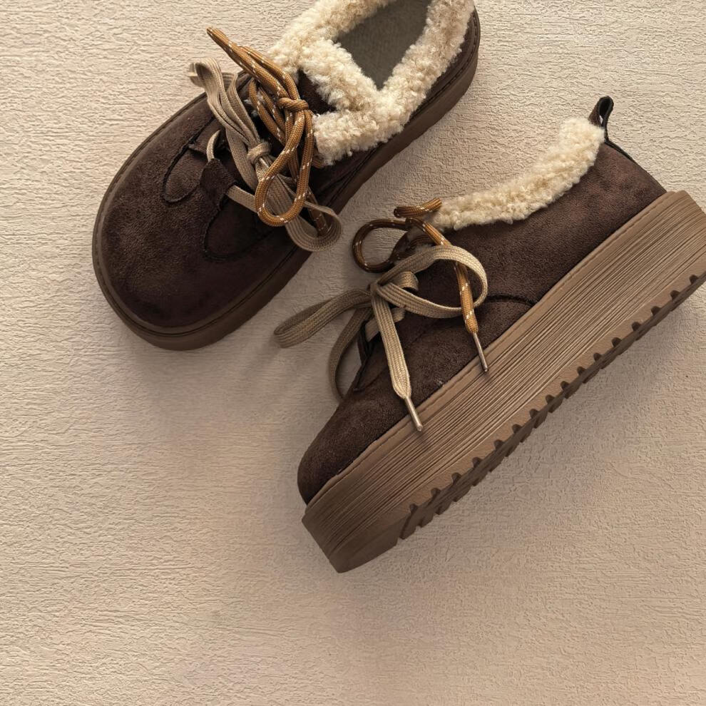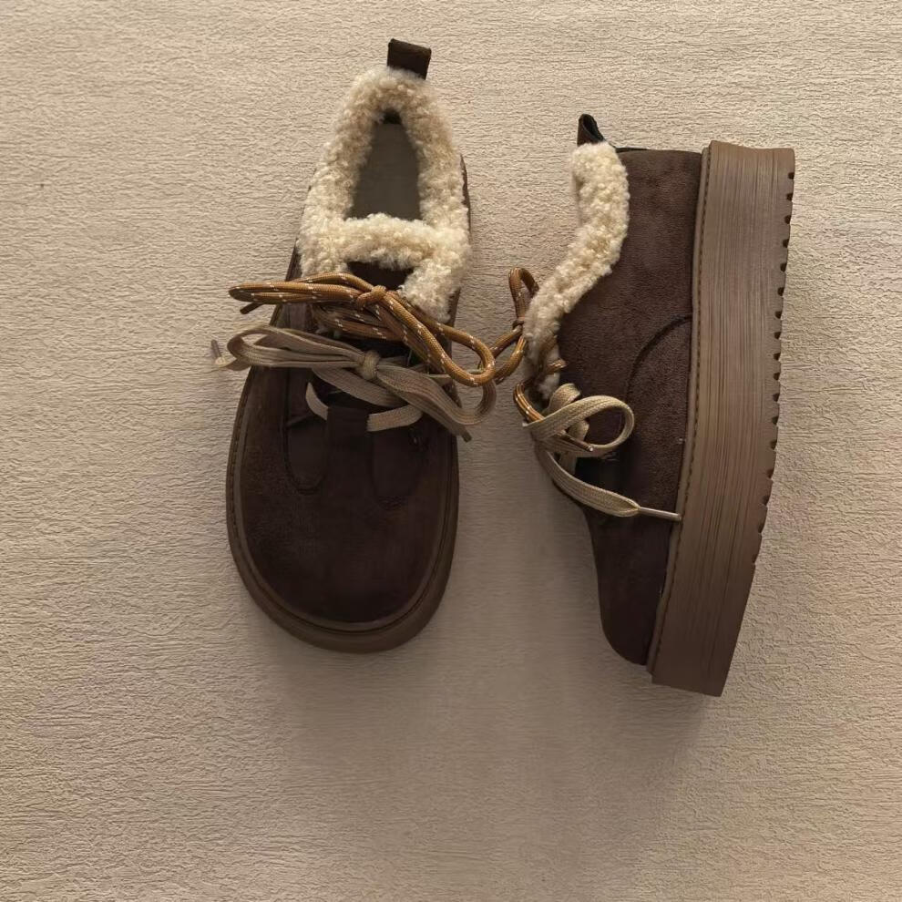 星期六厚底雪地靴女2025新款冬季加绒加厚面包鞋防滑短靴保暖棉鞋 咖啡色 【加绒保暖】 35