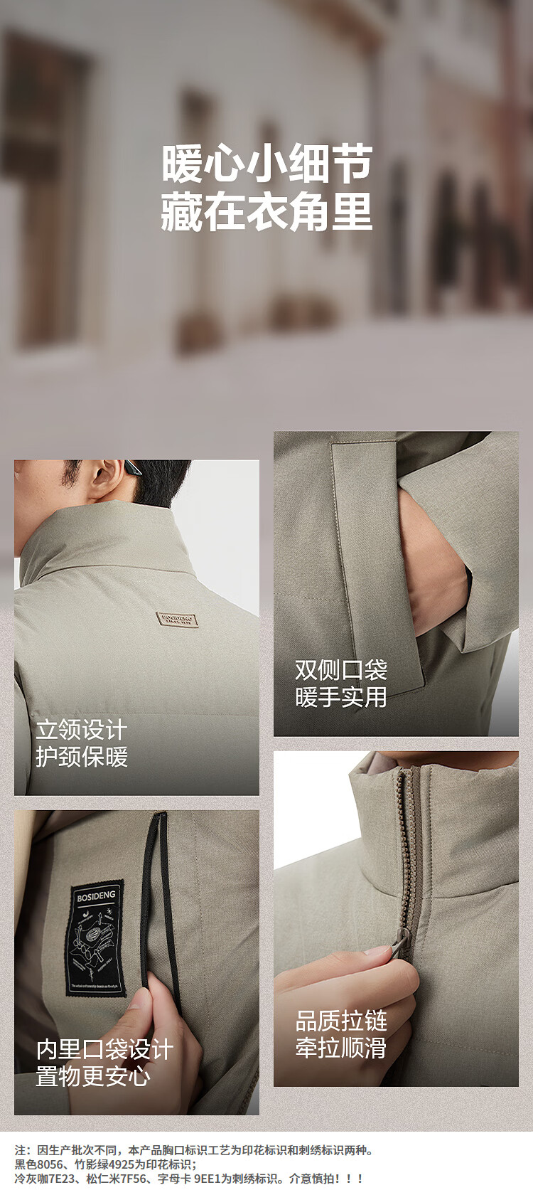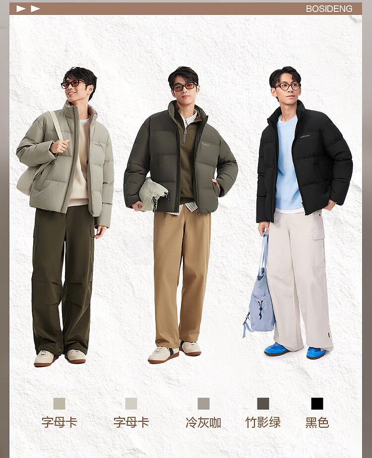 波司登(BOSIDENG)25新款羽绒服男短款加厚90绒复古百搭立领保暖外套B250245261 黑色8056 M 175/96A 体重约130-140斤