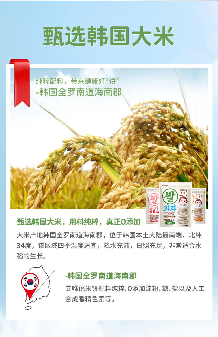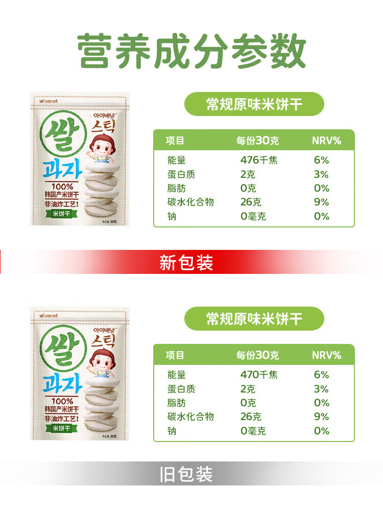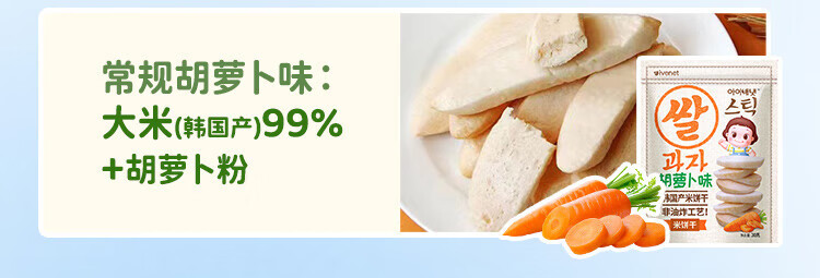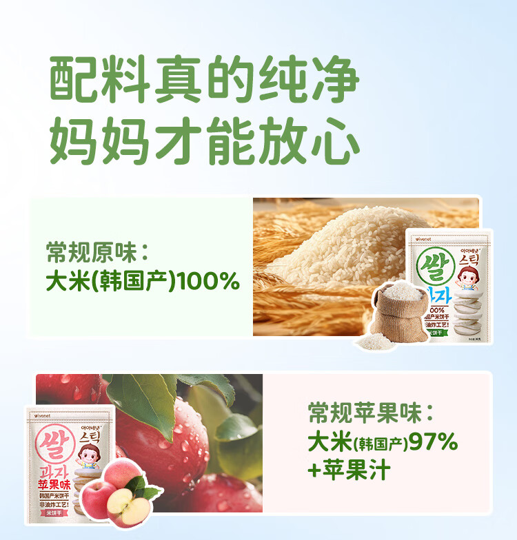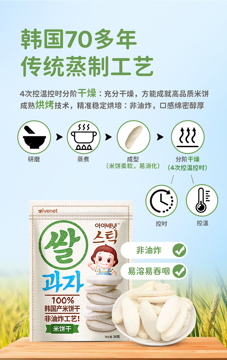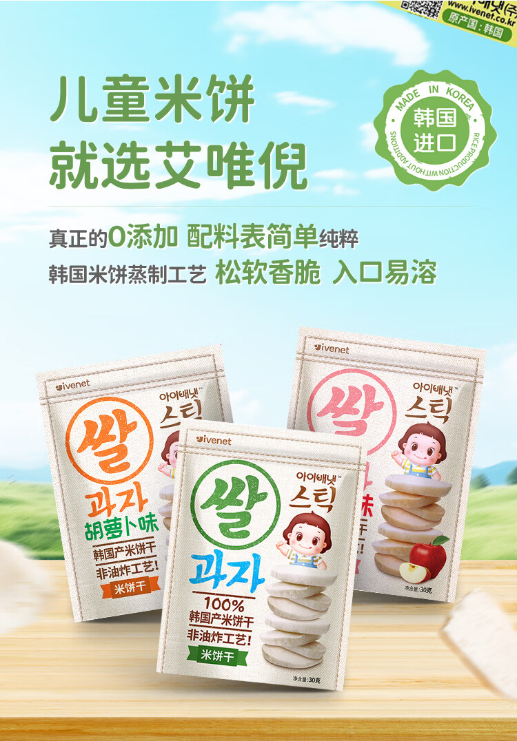 艾唯倪(ivenet) 进口米饼 宝宝儿童零食磨牙棒饼干 无额外添加糖盐 低钠 原味30g