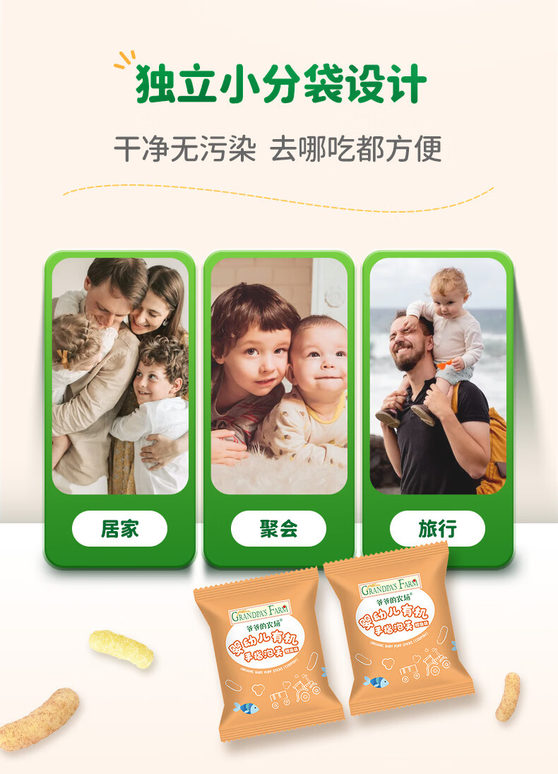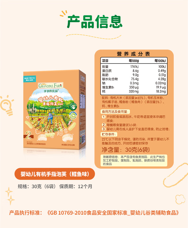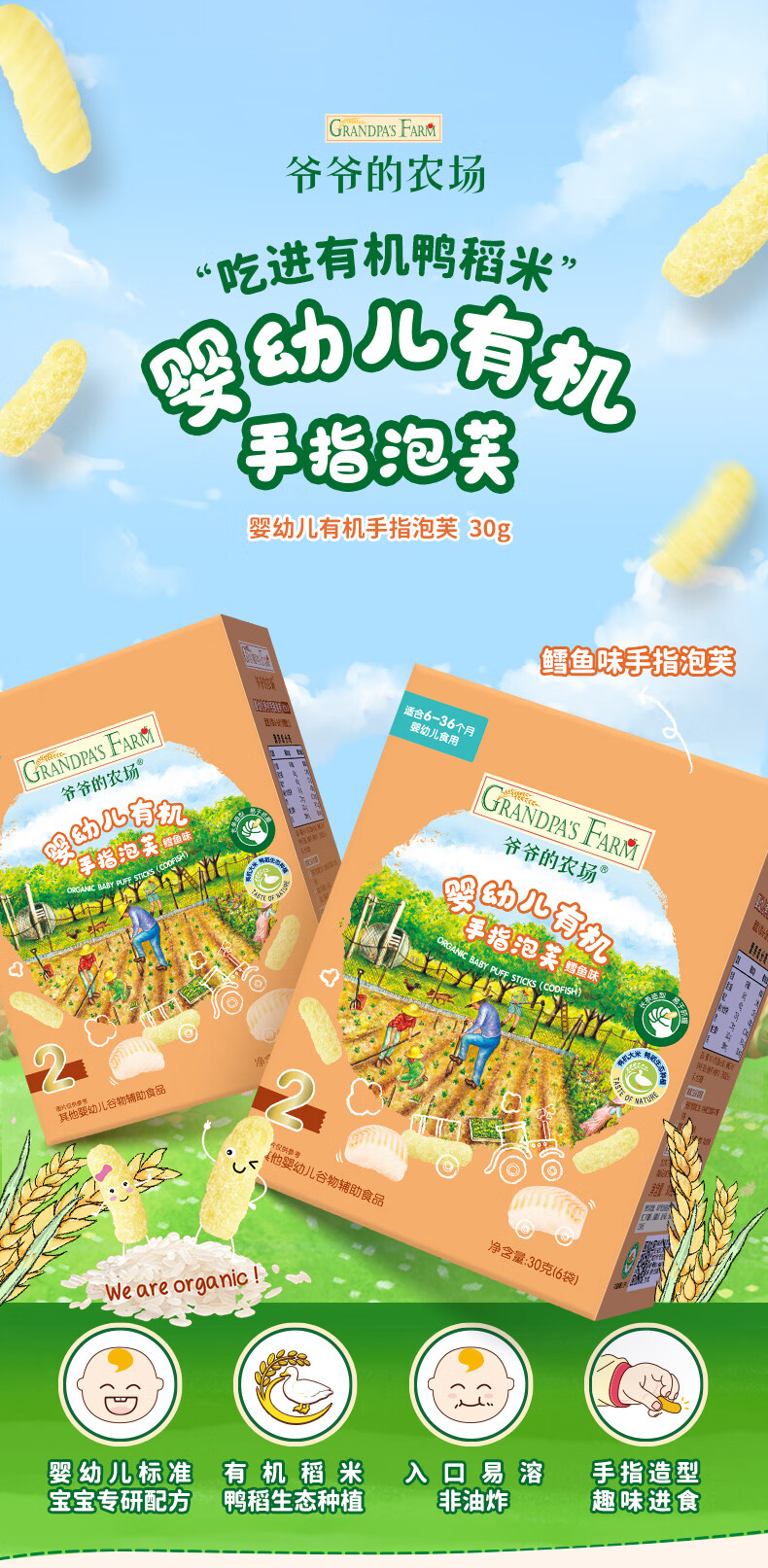 爷爷的农场有机婴幼儿手指泡芙鳕鱼味30g儿童宝宝零食 婴儿零食6-12个月