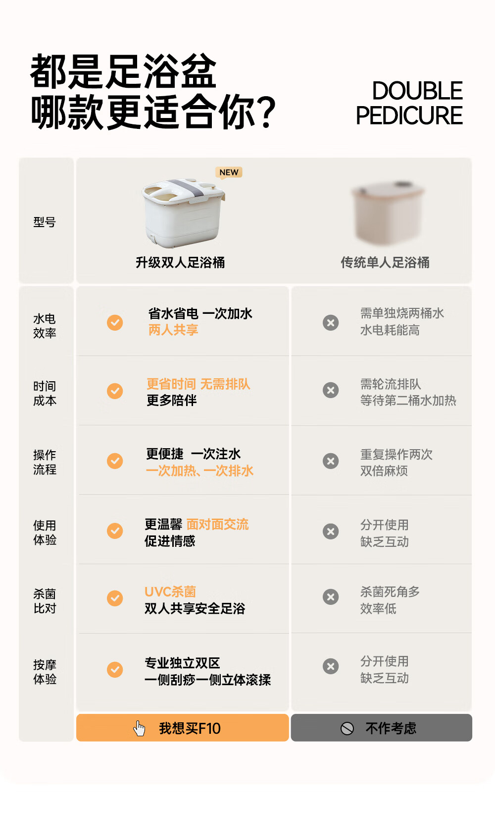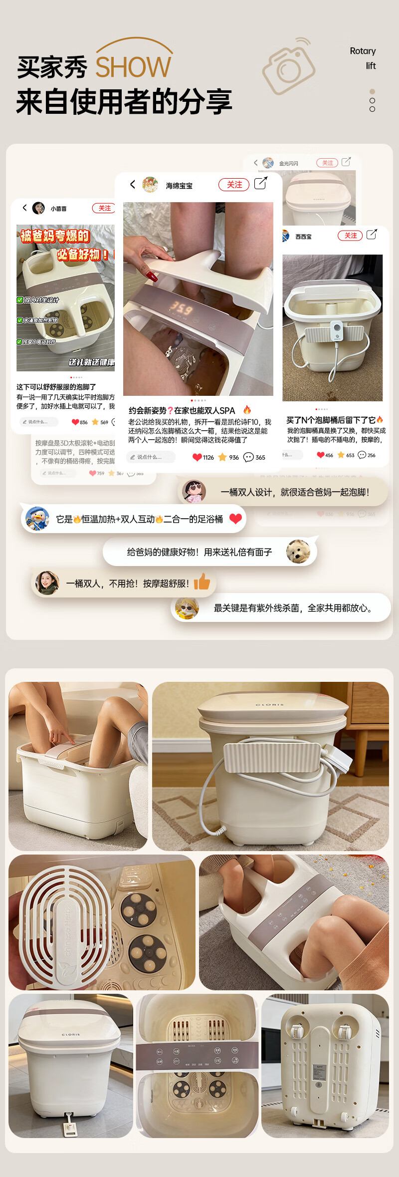 凯伦诗(CLORIS)德国足浴盆自动按摩泡脚桶高深桶 双人熏蒸泡脚桶 恒温加热电动洗脚盆 送老婆三八节女神礼物F10-A